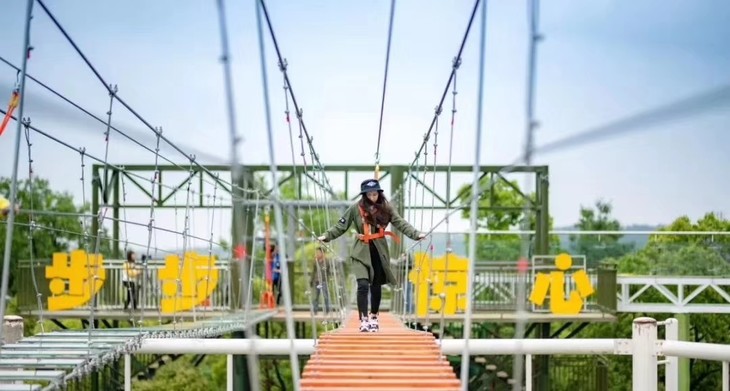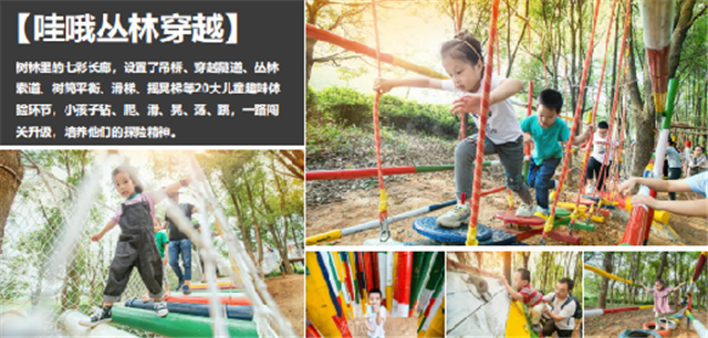 设置了吊桥、穿越隧道、丛林