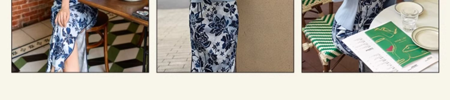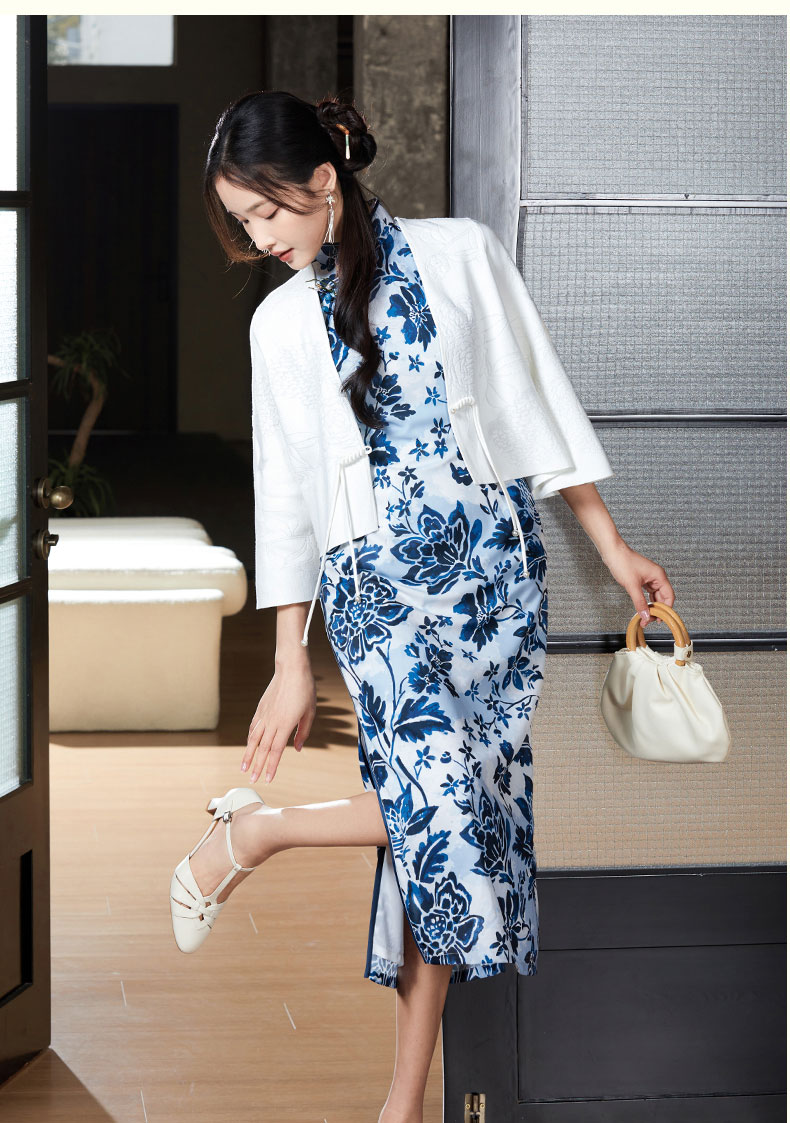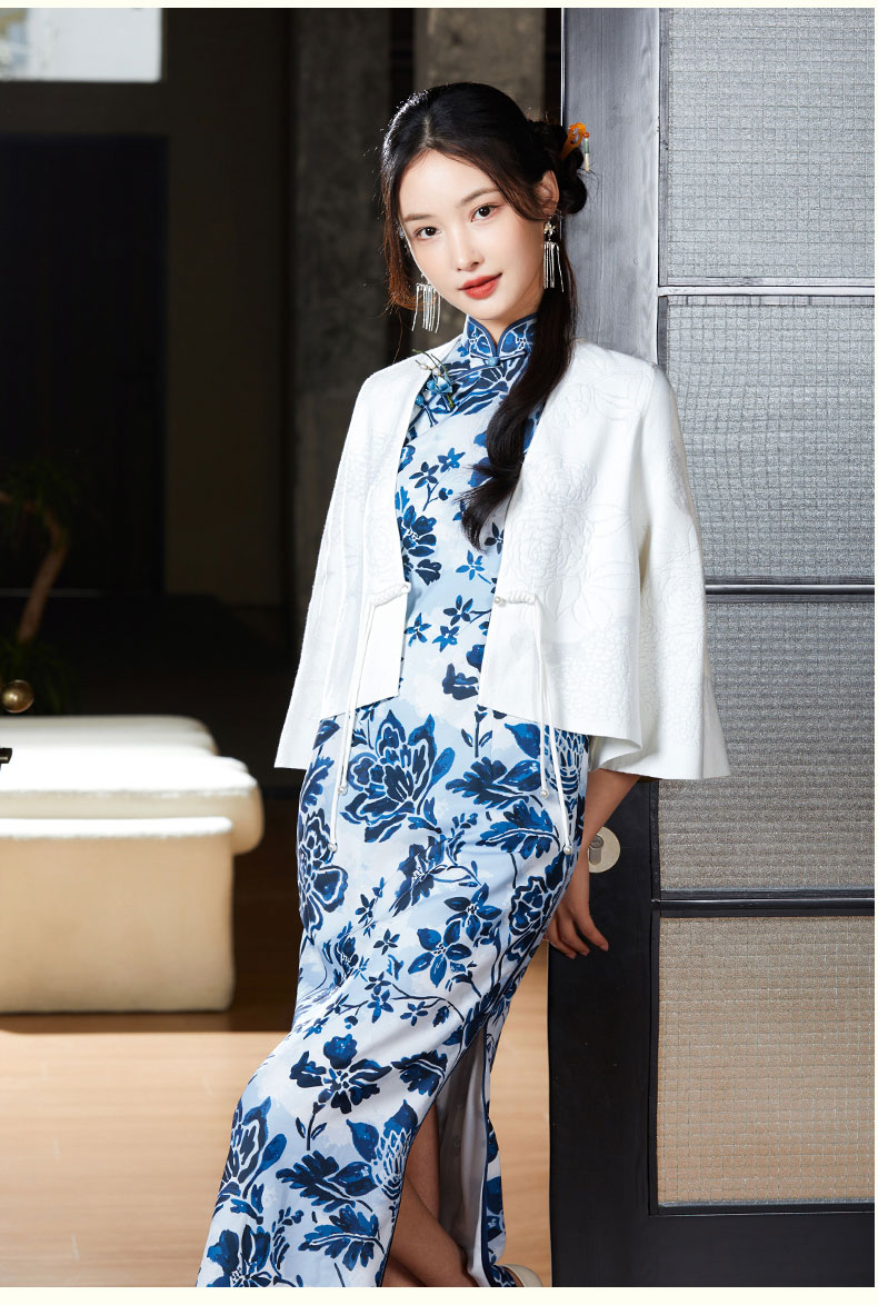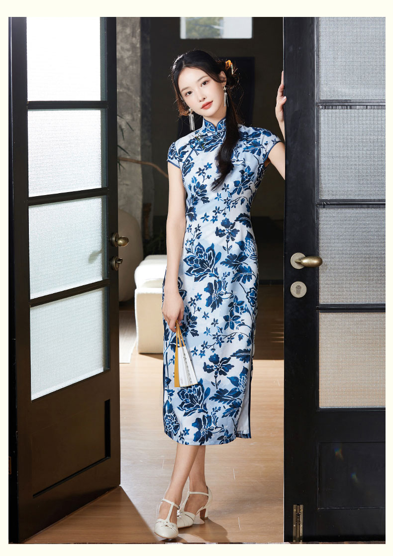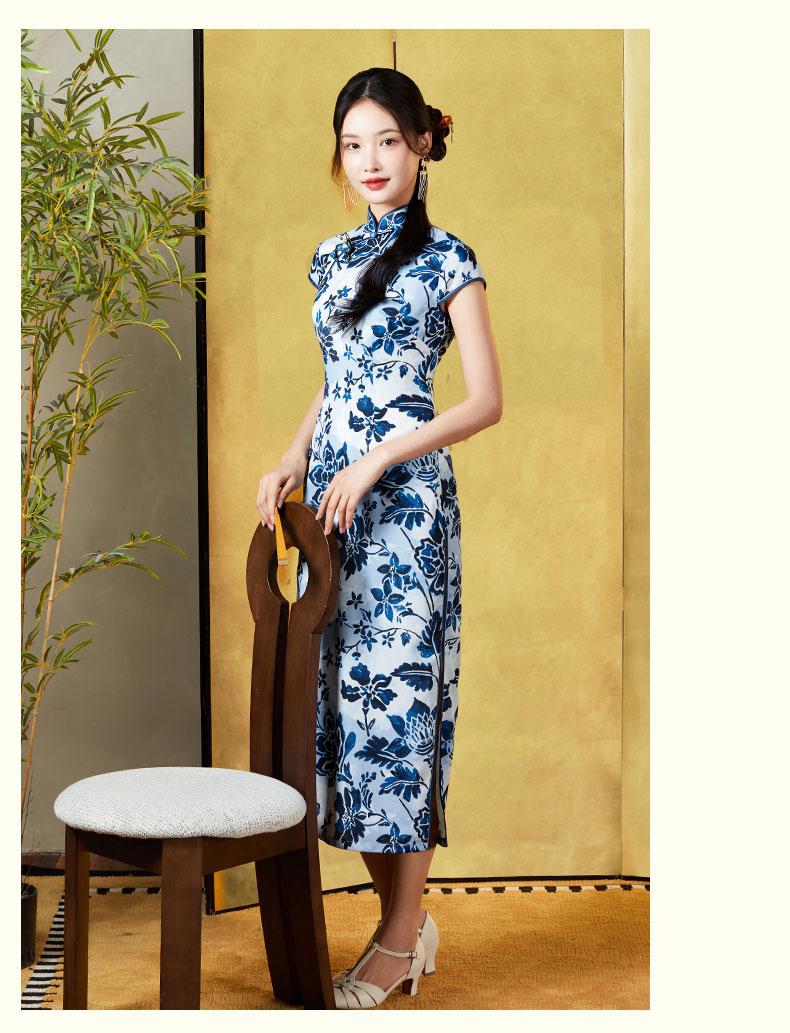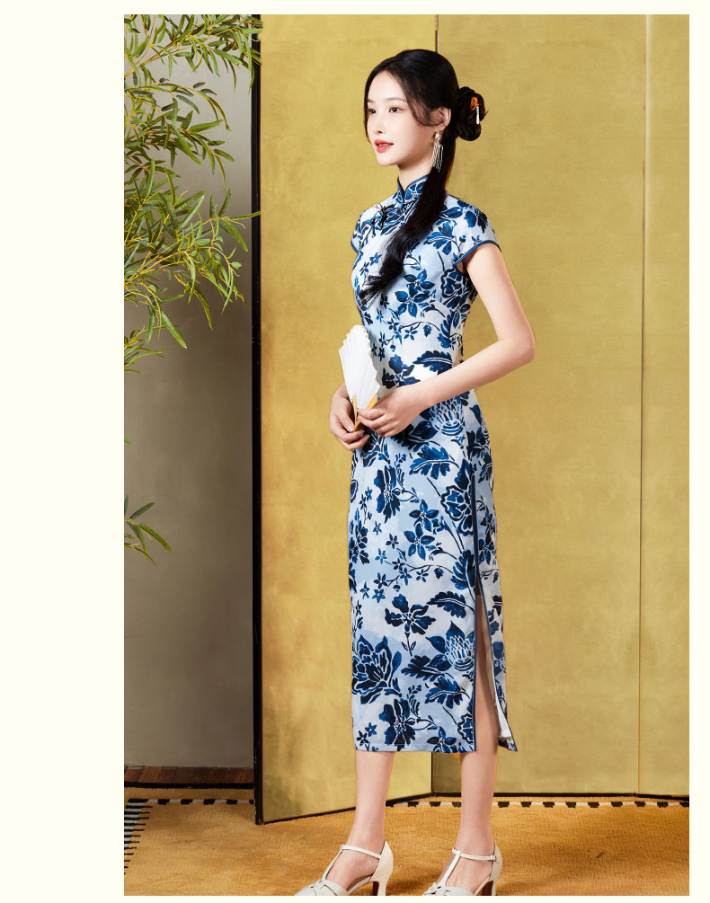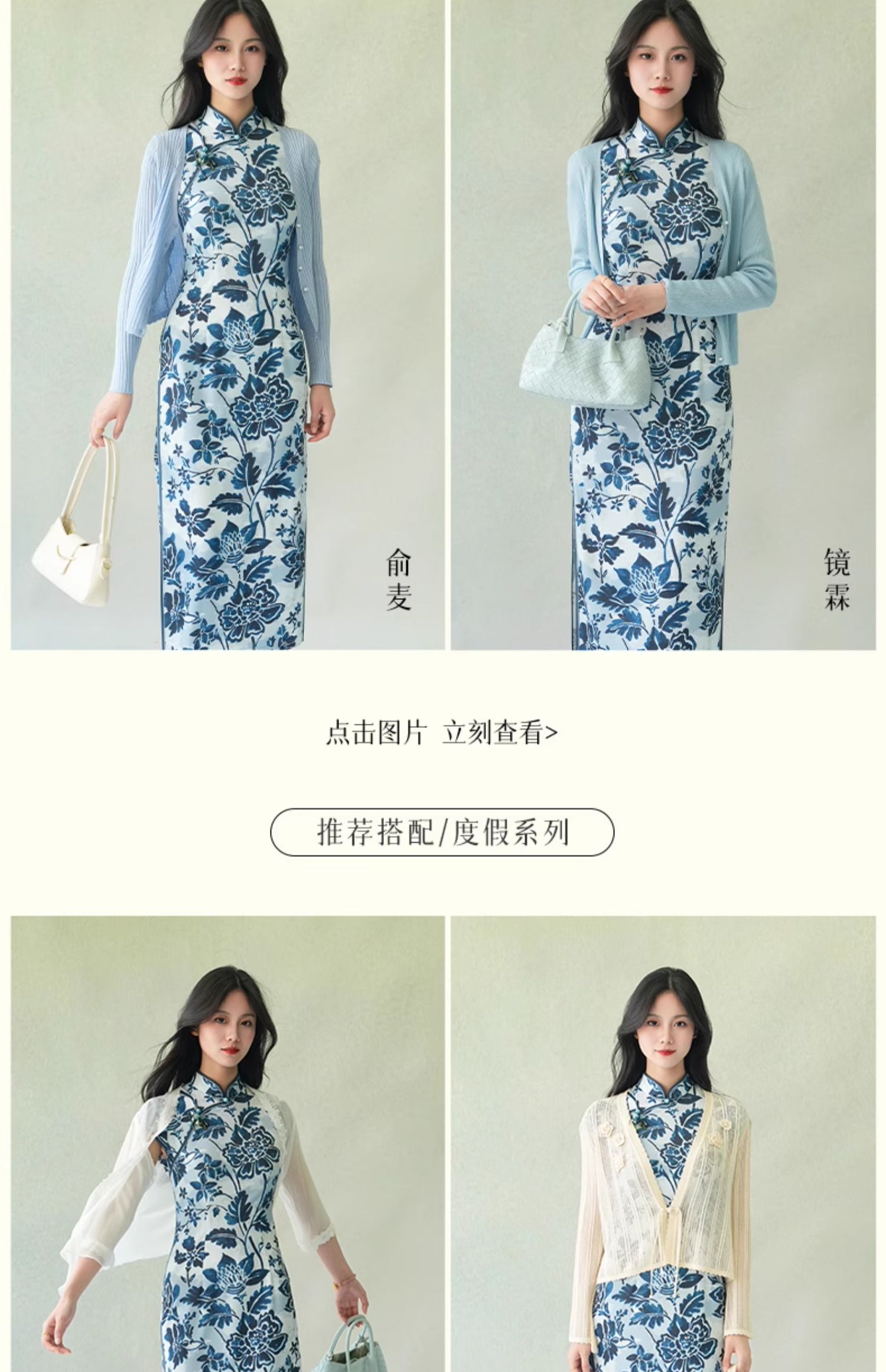 逸红颜珈蓝2025夏新品冰感针织醋酸青花瓷修身显瘦复古改良旗袍女