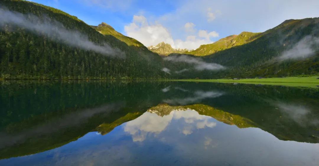 ——这里湖水清澈,倒映着逶迤峭拔的雪山;