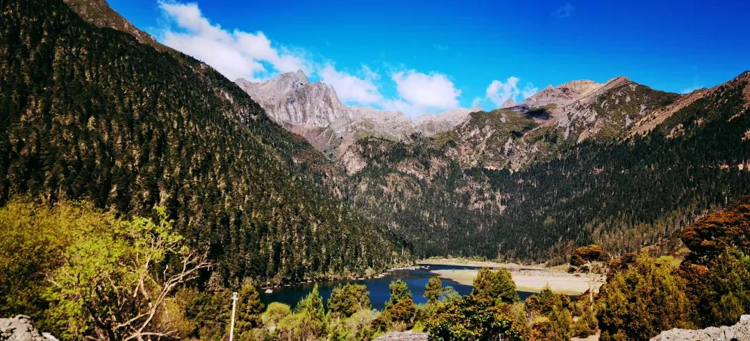 ▲措姆湖远眺亚丁三神山