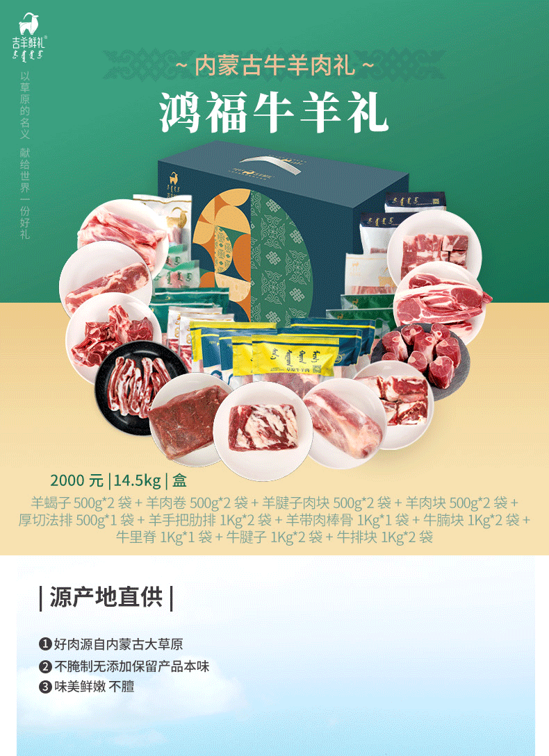 【鸿福牛羊礼】14.5kg 内蒙古草原牛羊肉大礼包 生鲜牛羊肉 内蒙古特产尊贵礼