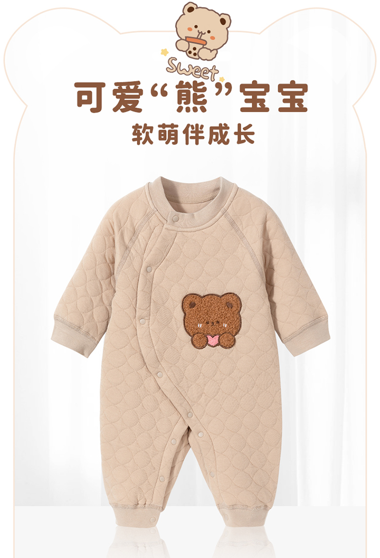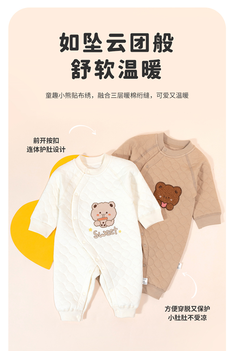 贝贝怡童装宝宝连体衣秋冬保暖爬服夹棉和尚服贴身睡衣套装ZB4CL005