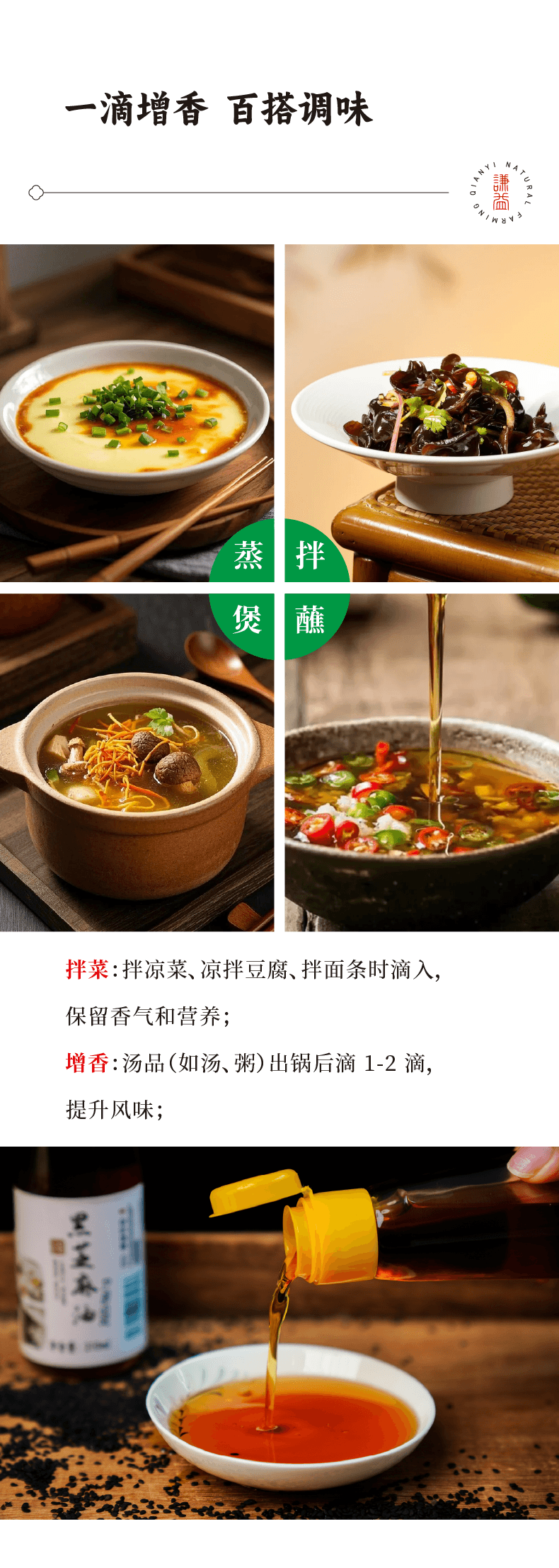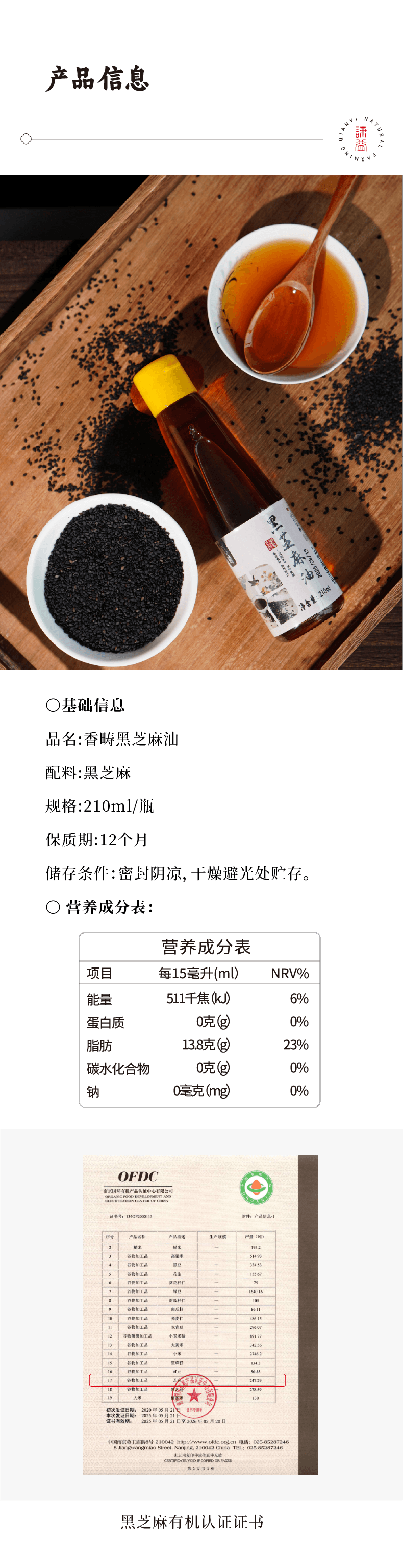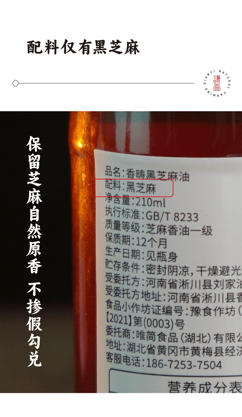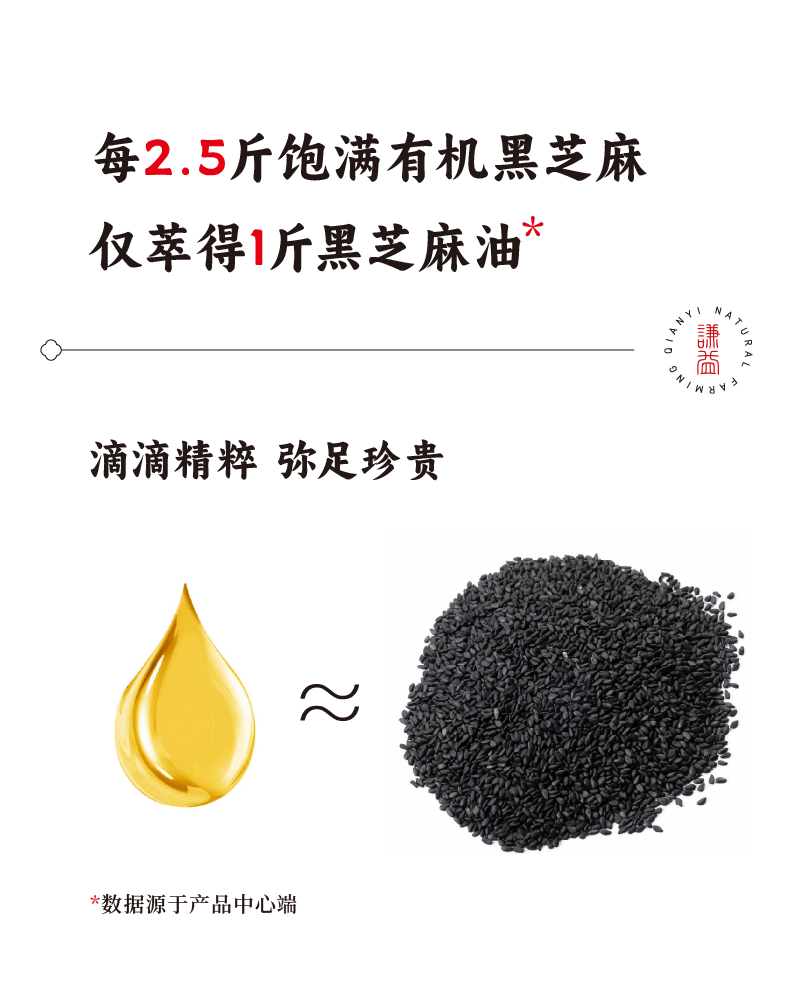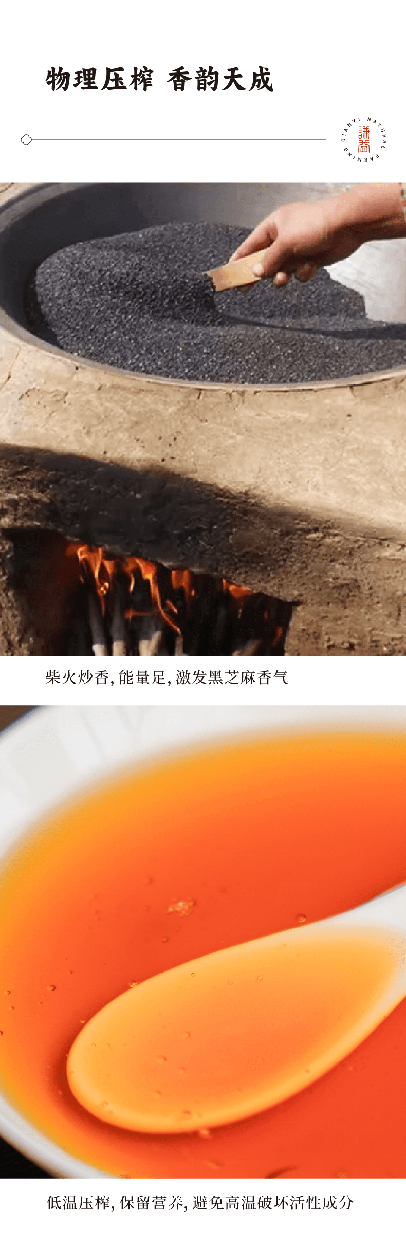 谦益芝麻油210ml 有机黑芝麻 柴火炒制 物理低温压榨 滴滴醇香 适合火锅蘸料(因是柴火炒制 会有焦香味哟)