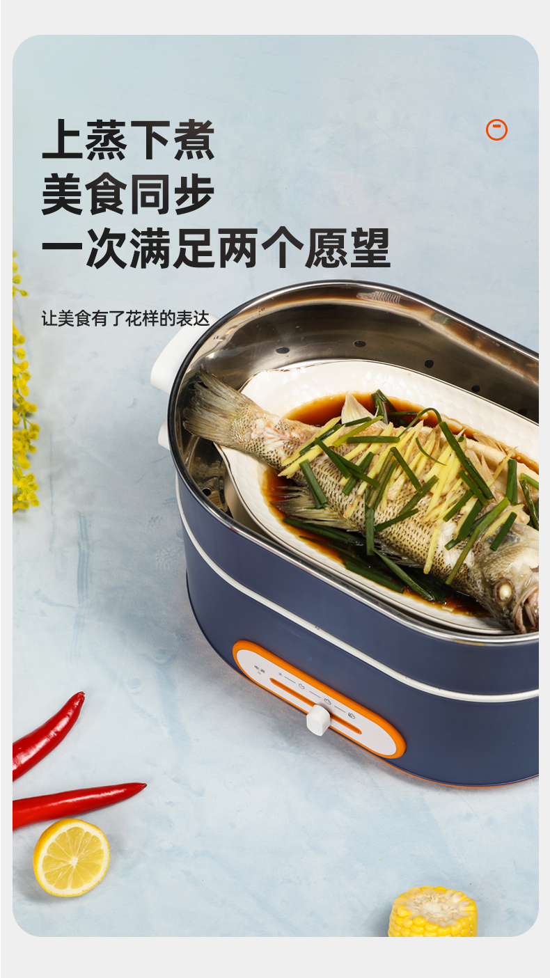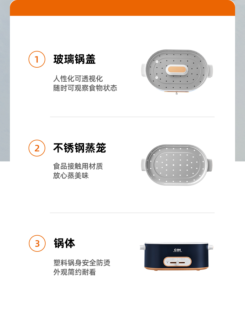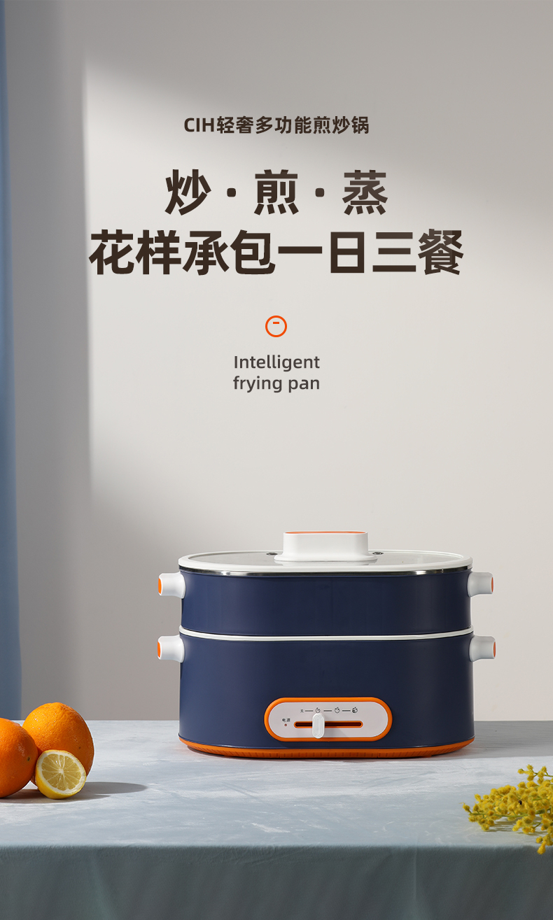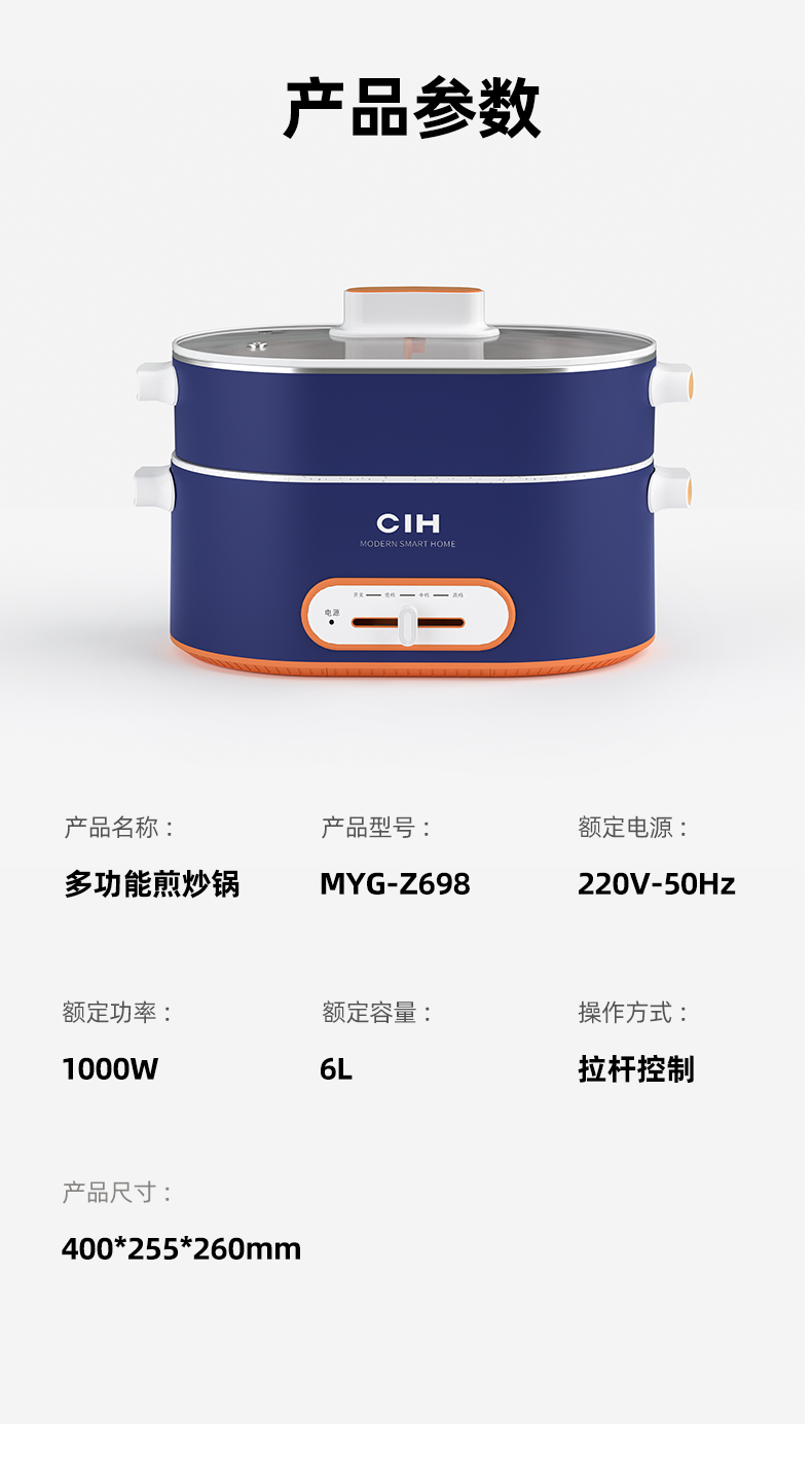【现货发】CIH 煎炒锅MYG-Z698电蒸锅多功能家用大容量自动断电双层蒸菜蒸笼锅