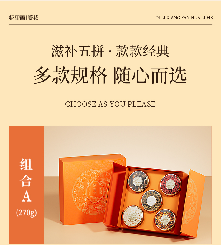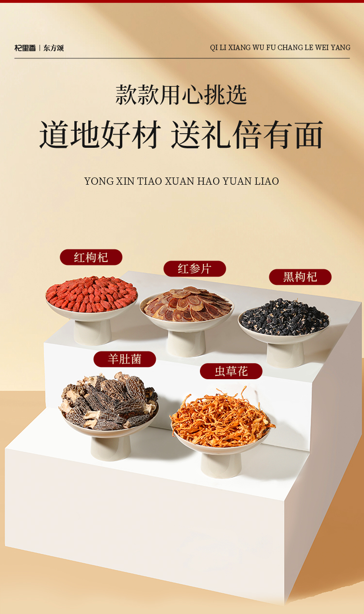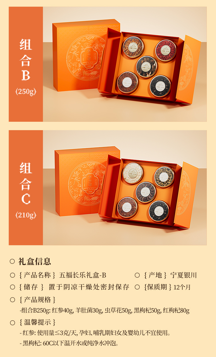 【冬季滋补】杞里香250g五福长乐礼盒-B,红参40g, 羊肚菌30g,虫草花50g,黑枸杞50g、红枸杞80g送礼礼盒年货中秋礼物礼品
