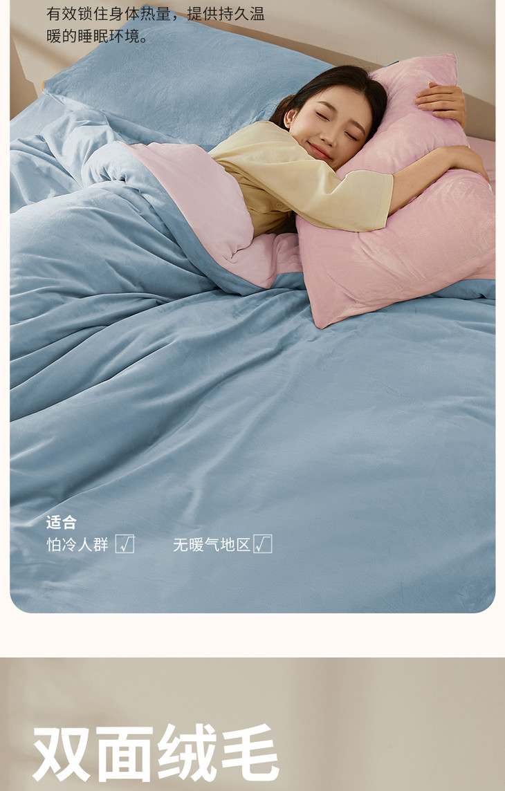[屁侠推荐]一默 宝宝绒床笠四件套 宝宝绒暖和亲肤 A类标准 冬季温暖必备;耐磨耐用防静电,可水洗可机洗