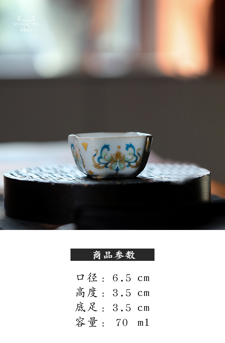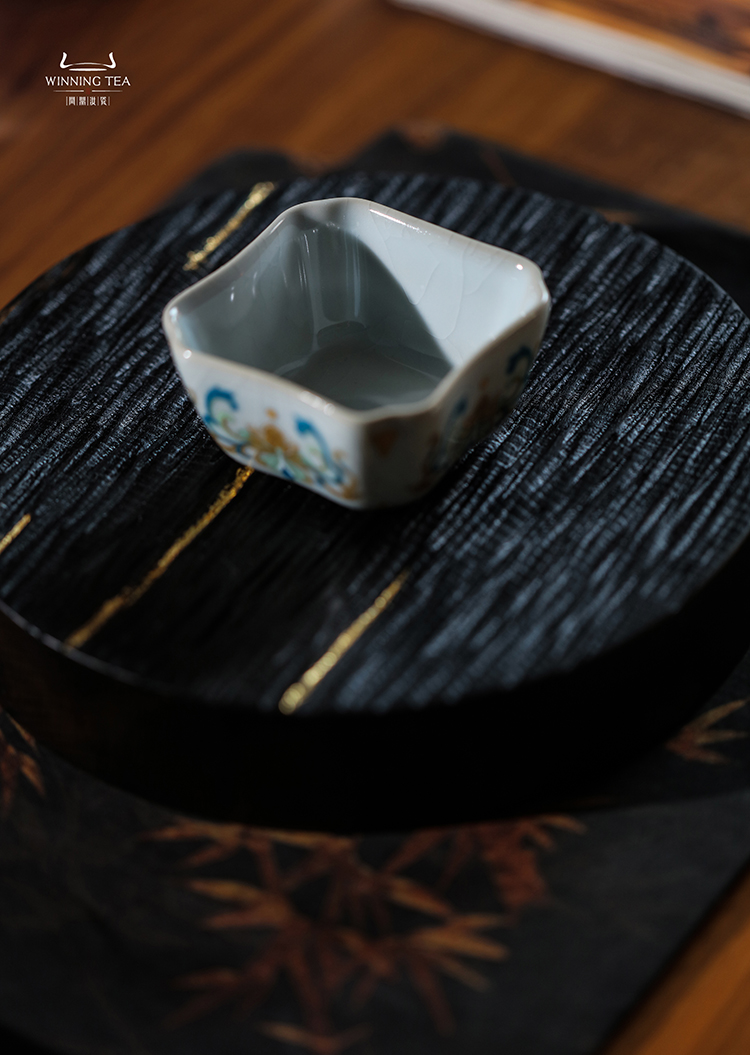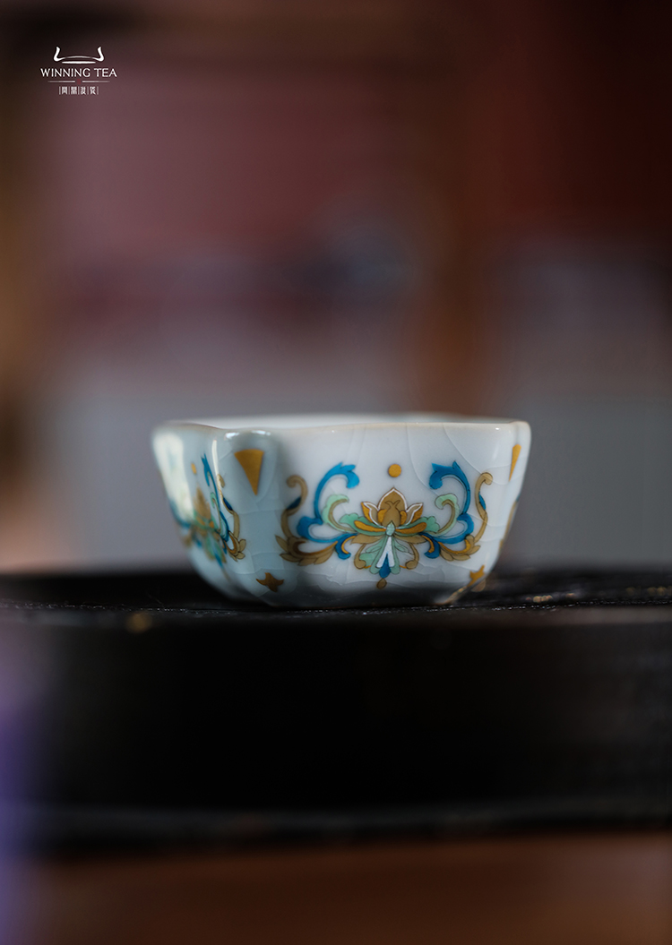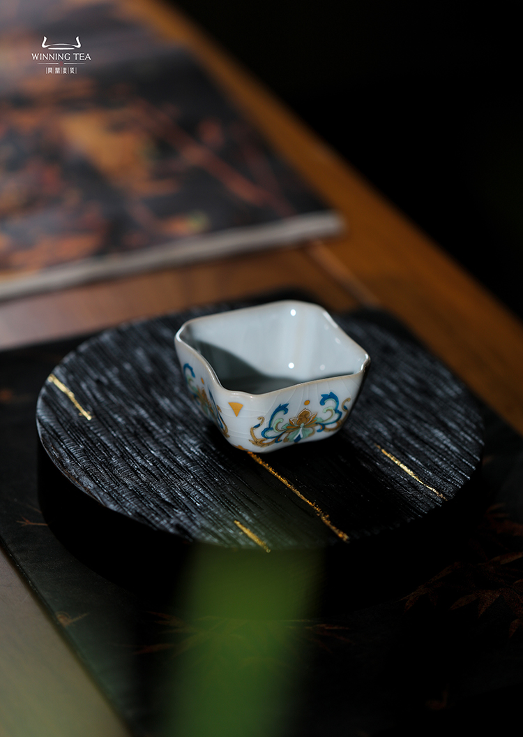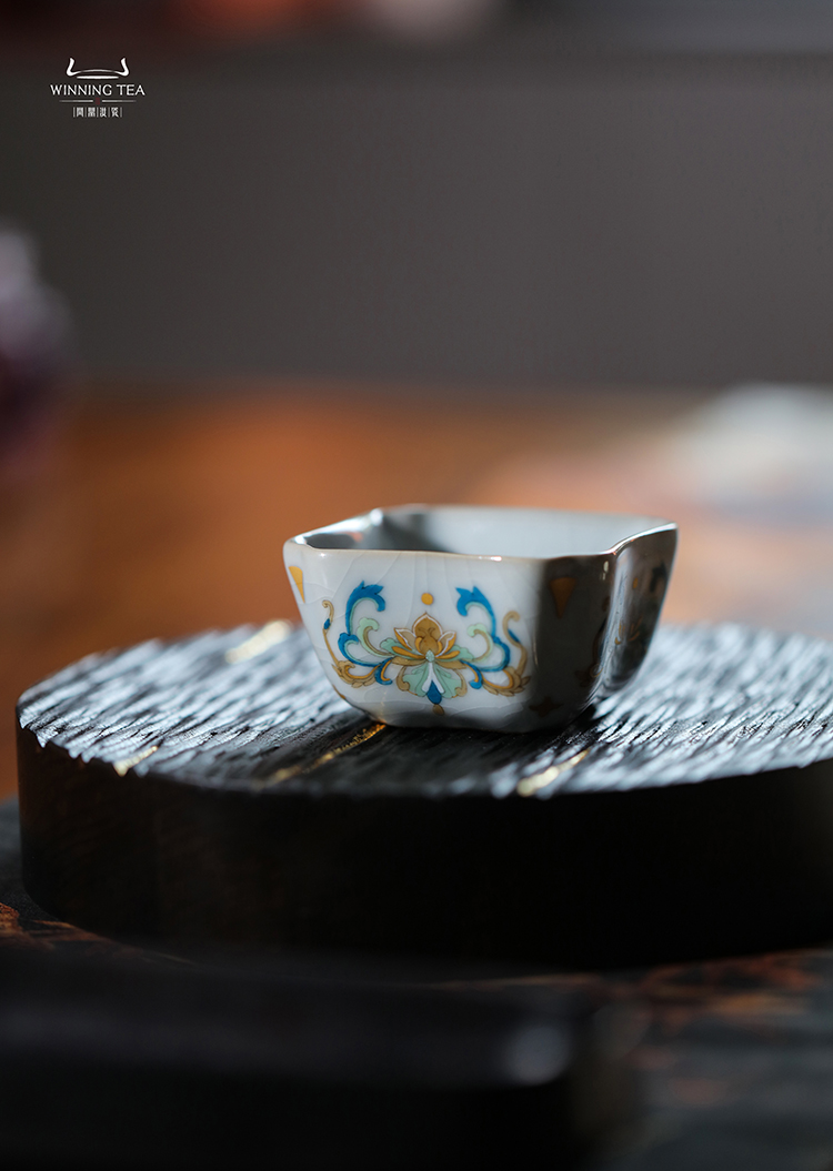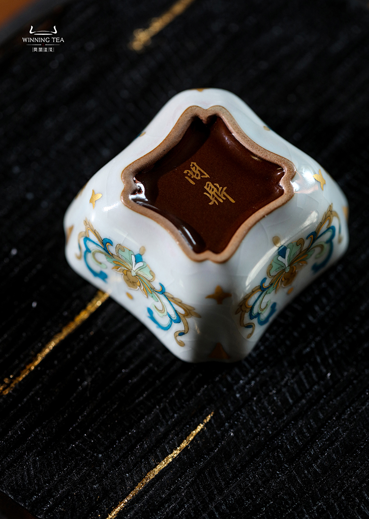 问鼎汝瓷鼎峰系列紫金釉老款四方杯(莲花描金)