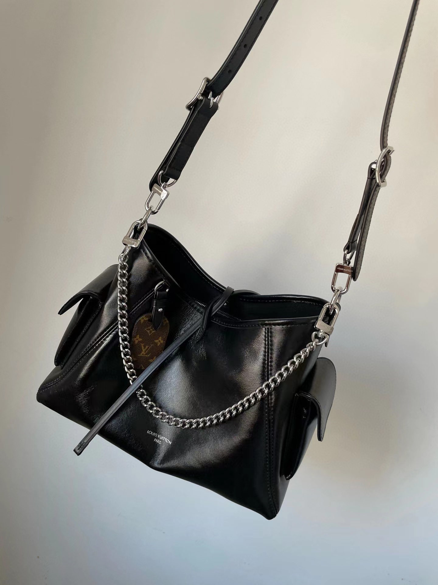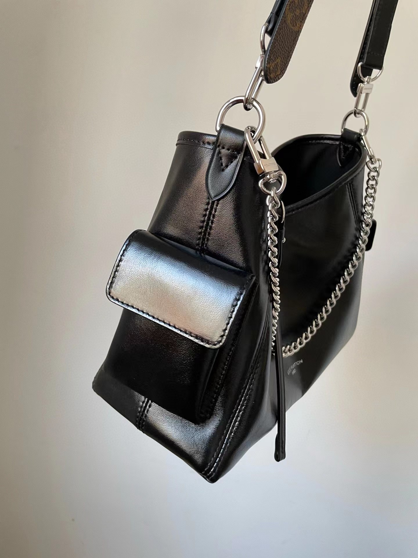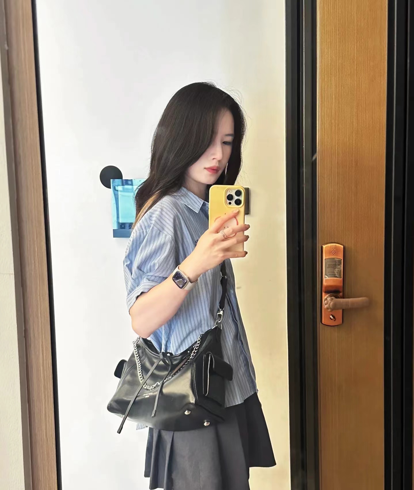 小号双肩带,一个皮肩带,一个金属链条肩带 质感太好了