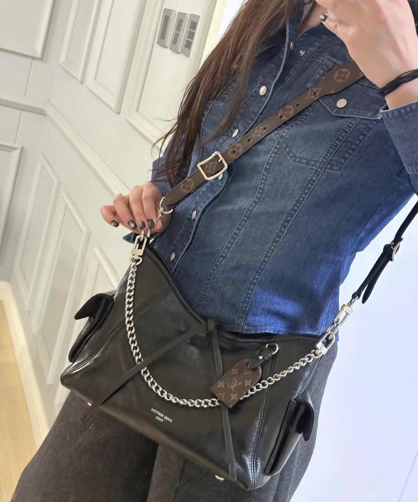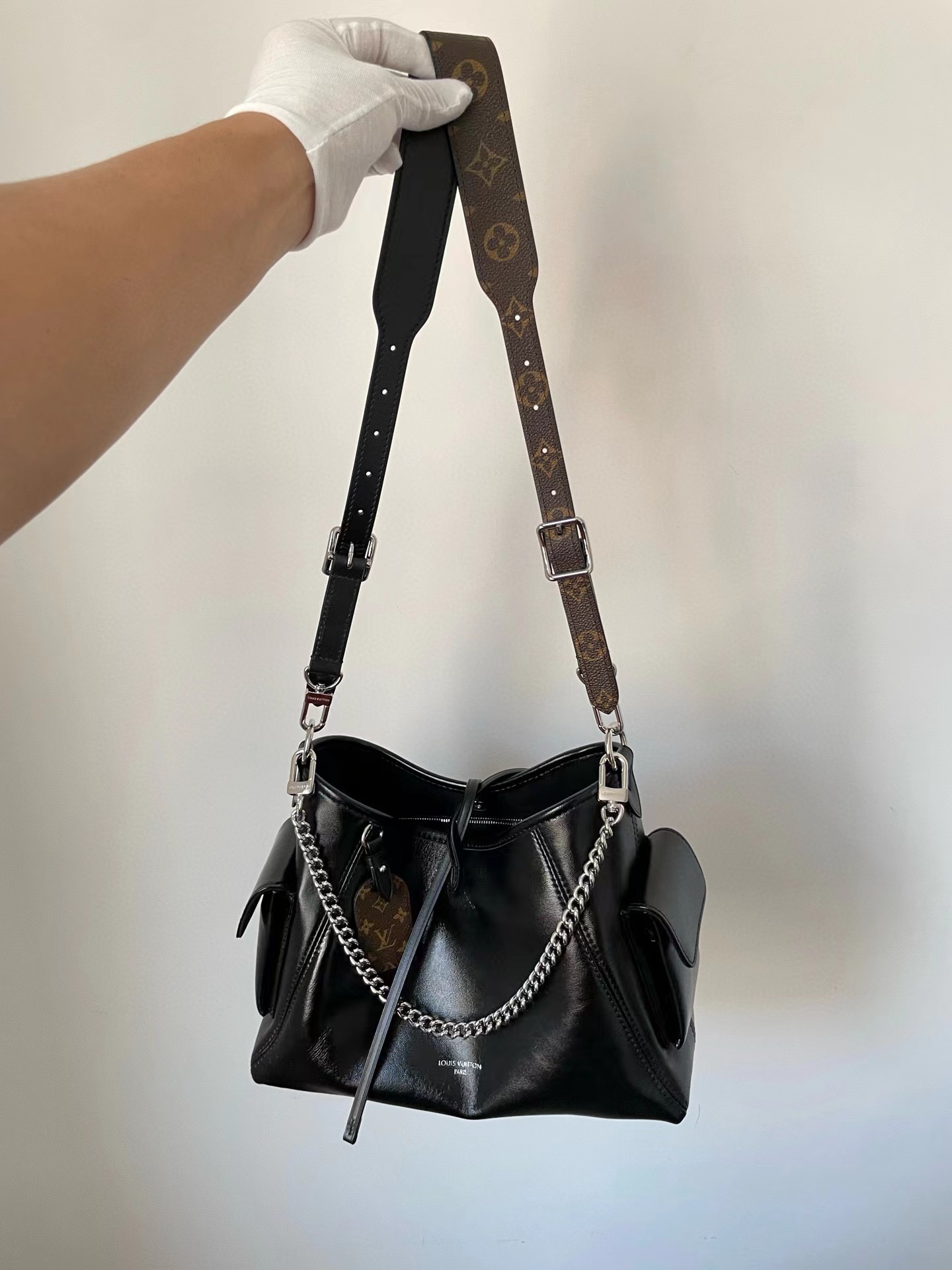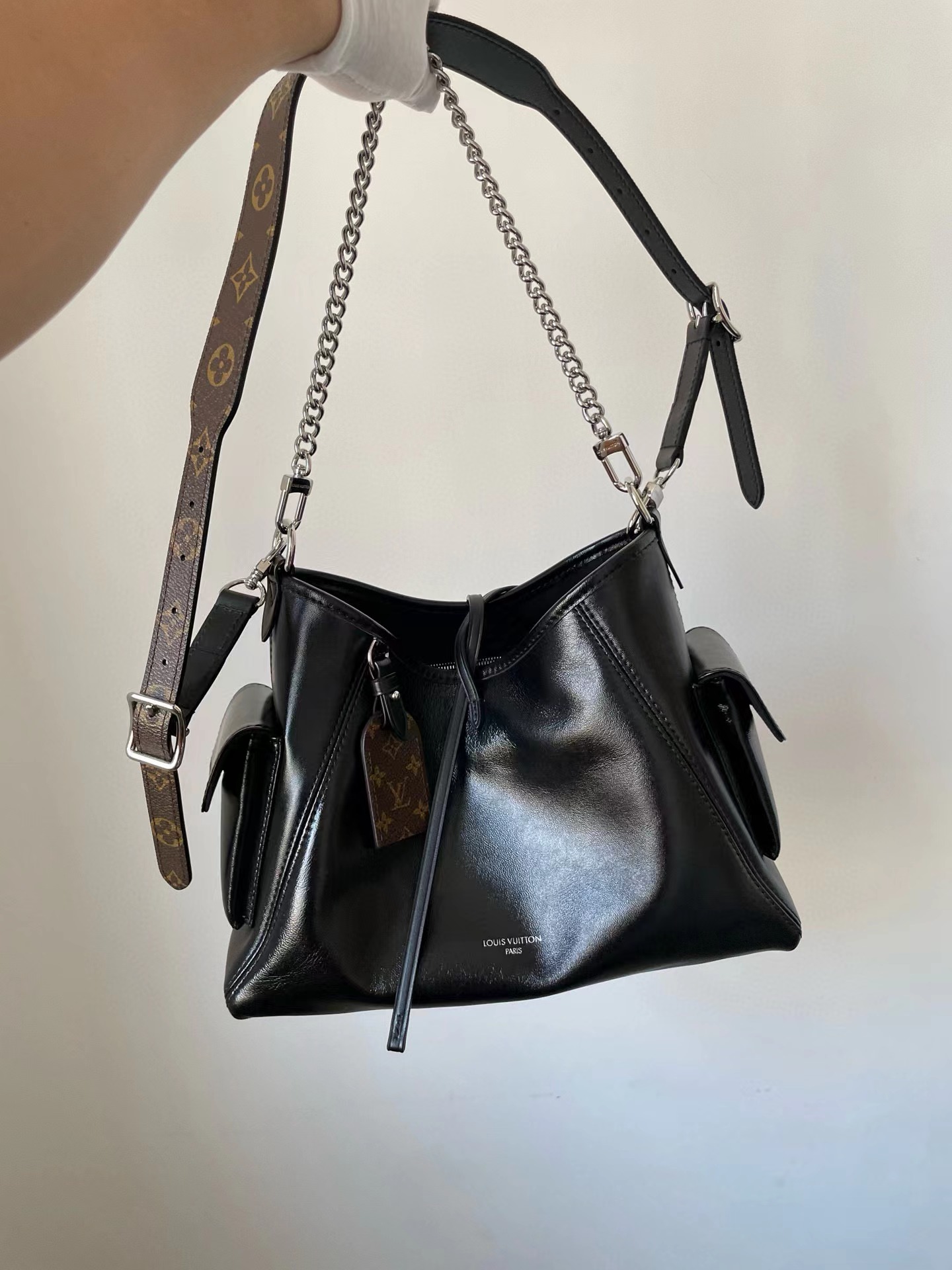 小号双肩带,一个皮肩带,一个金属链条肩带 质感太好了