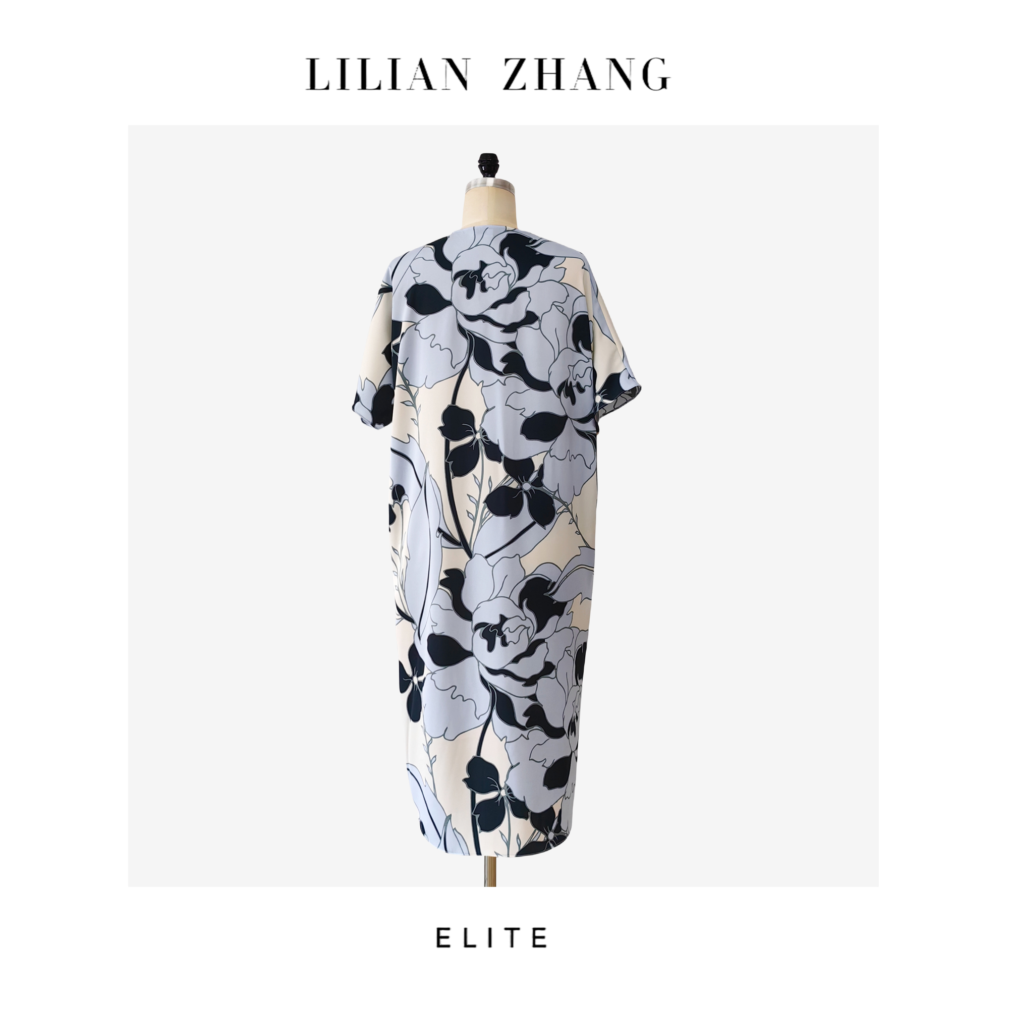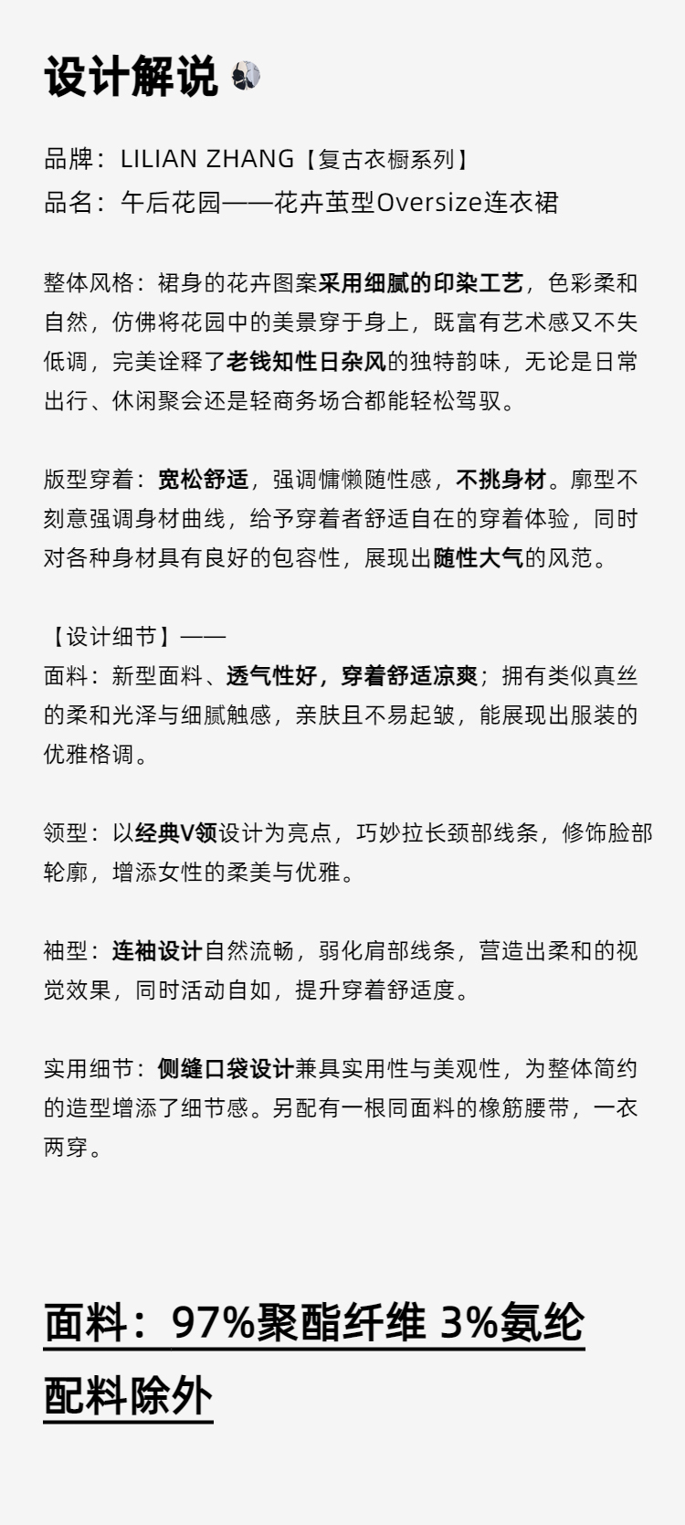 E“定制”——复古风———午后花园——花卉茧型Oversize连衣裙 2501028