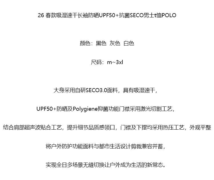 【ss1】26春新款男子吸湿速干长袖POLO衫!!