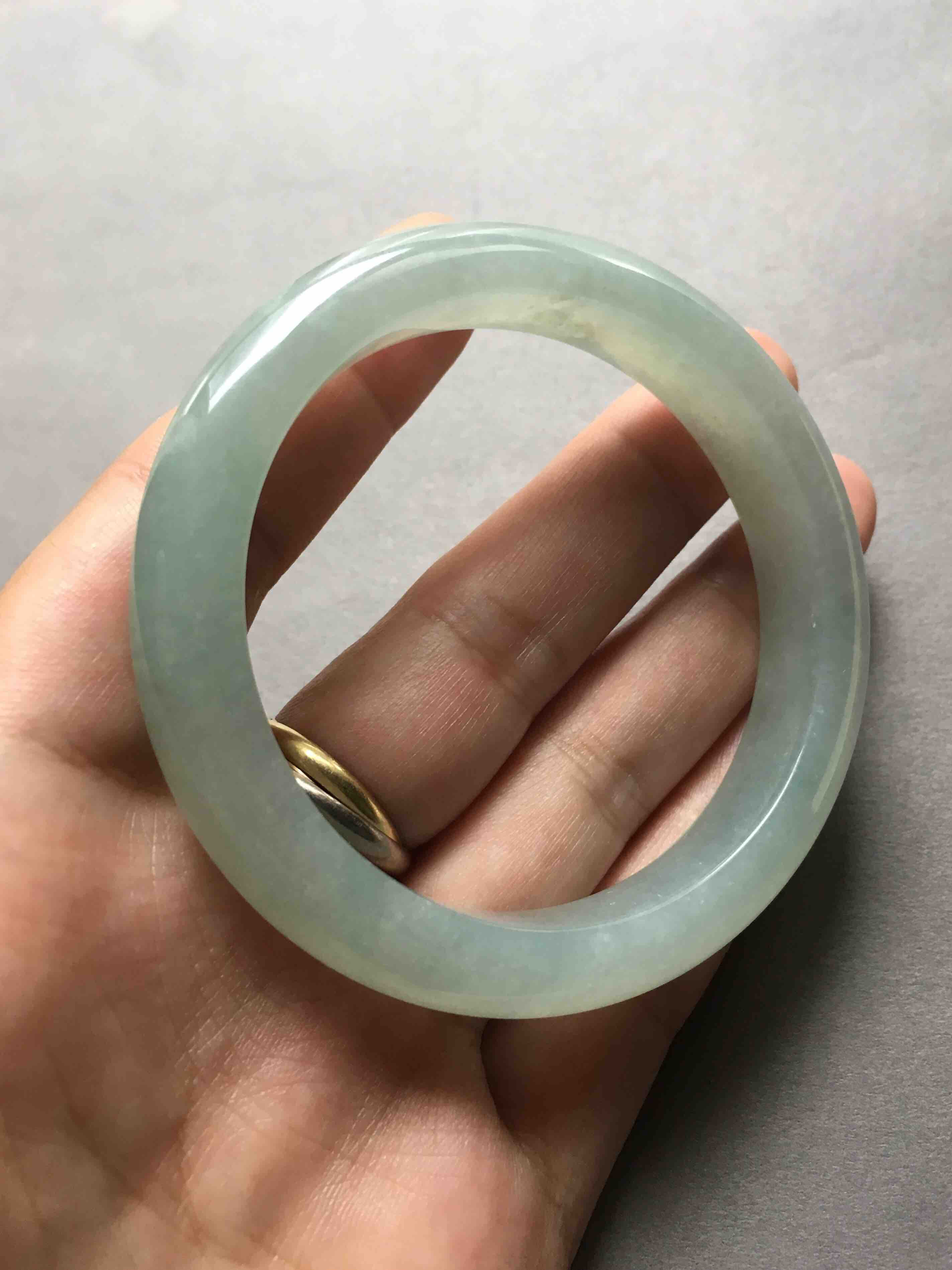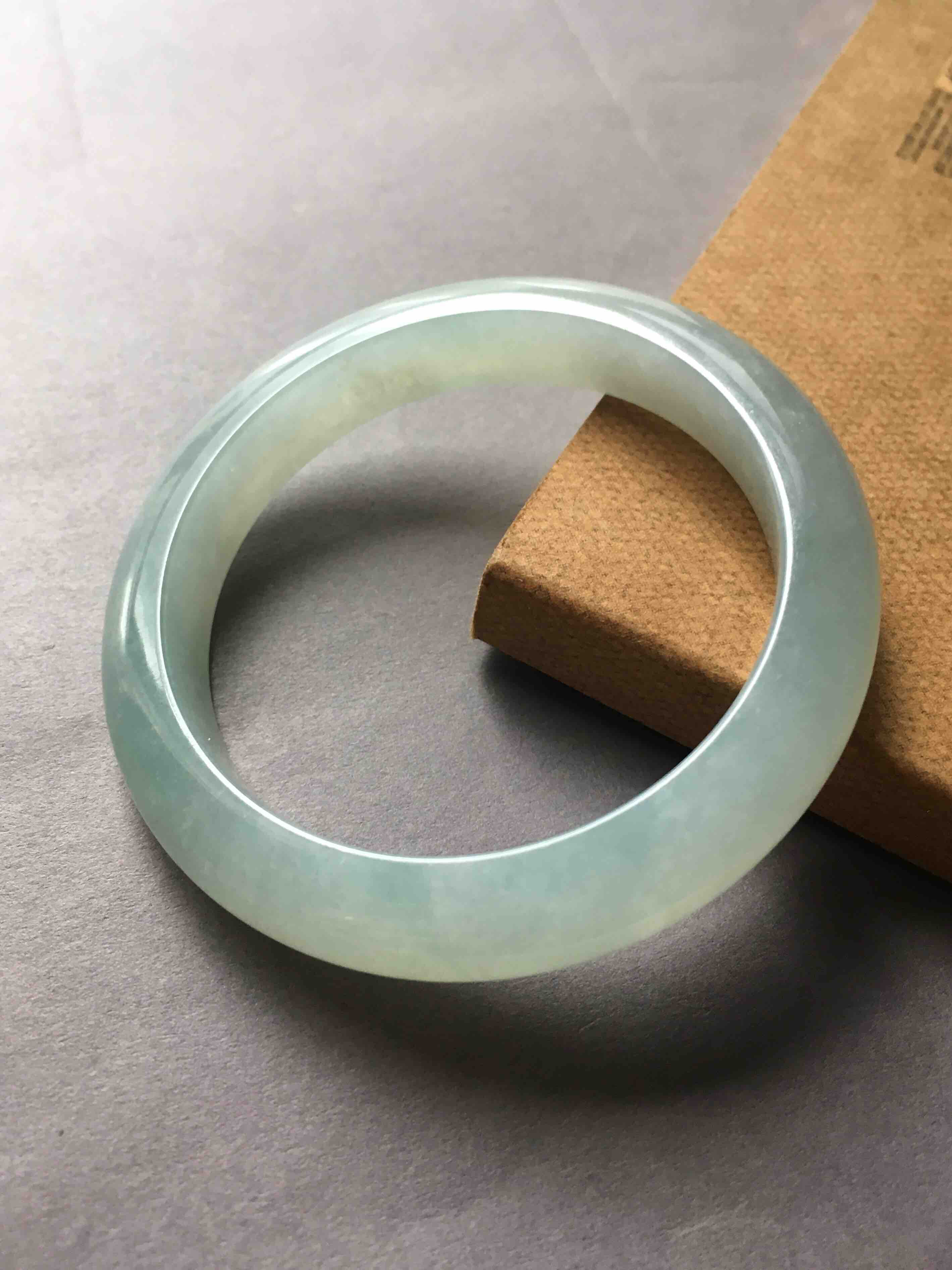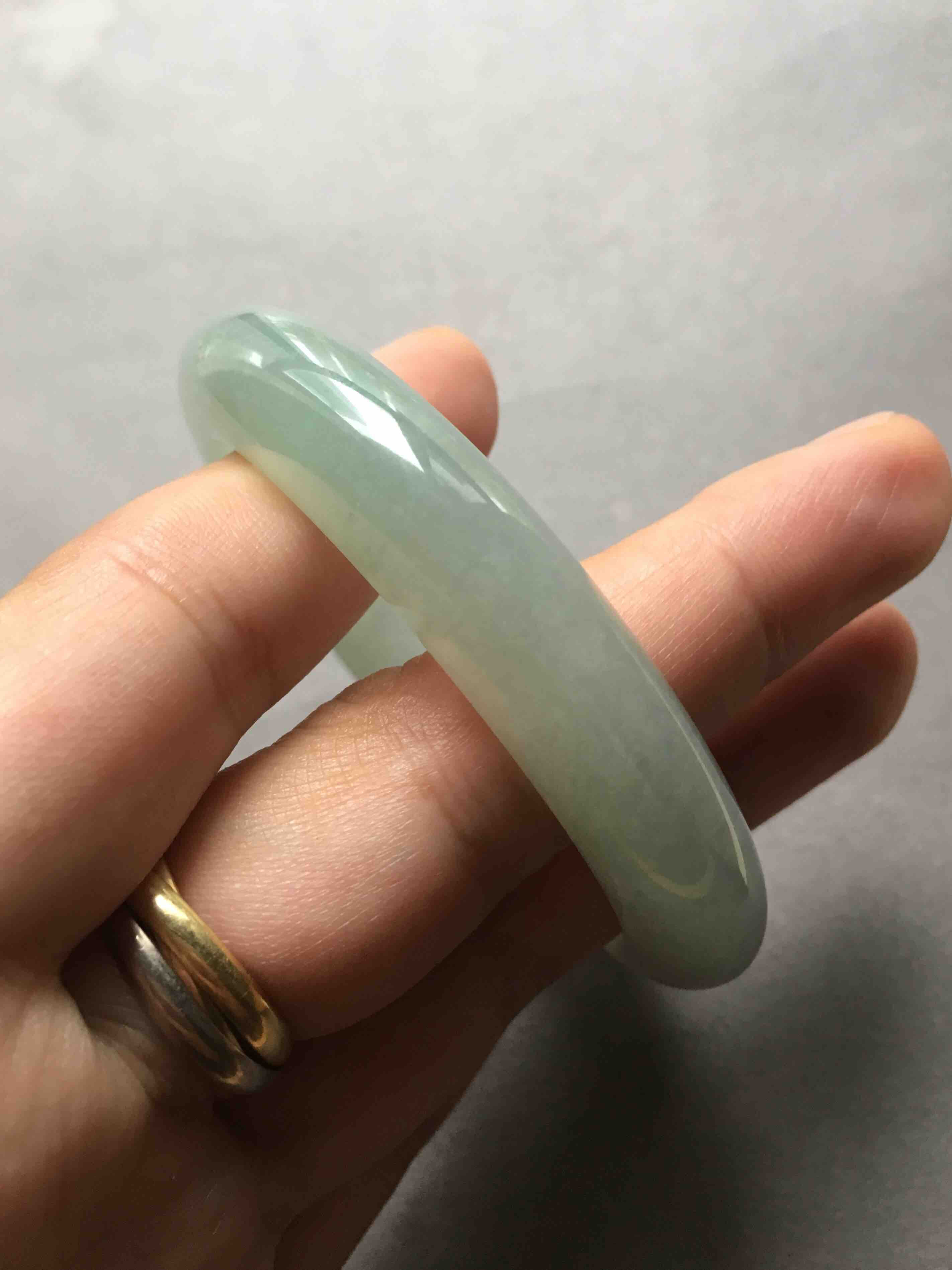 糯冰种淡晴水翡翠手镯,种水晶莹剔透,淡晴水底色漂亮,镯子种水细腻,条子饱满,内径55,宽11.4,厚9mm,适合手寸54到56的佩戴,高性价比推荐