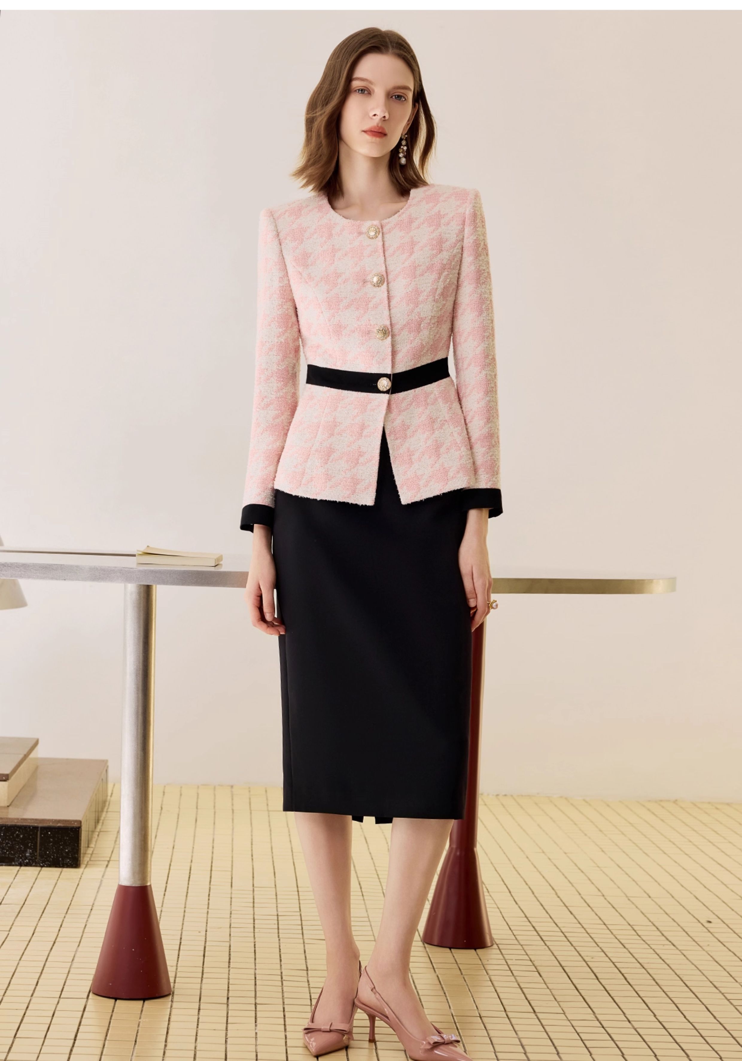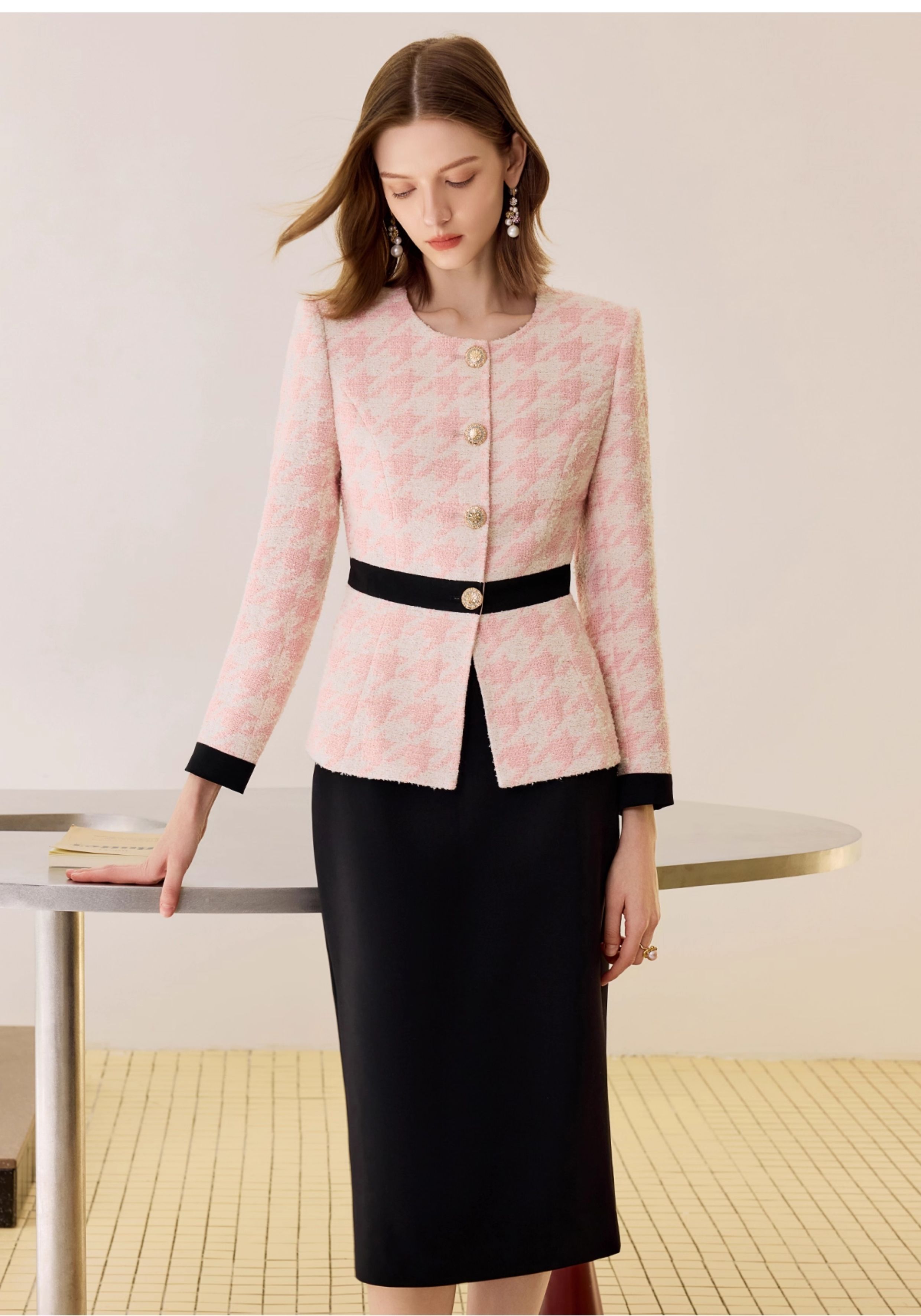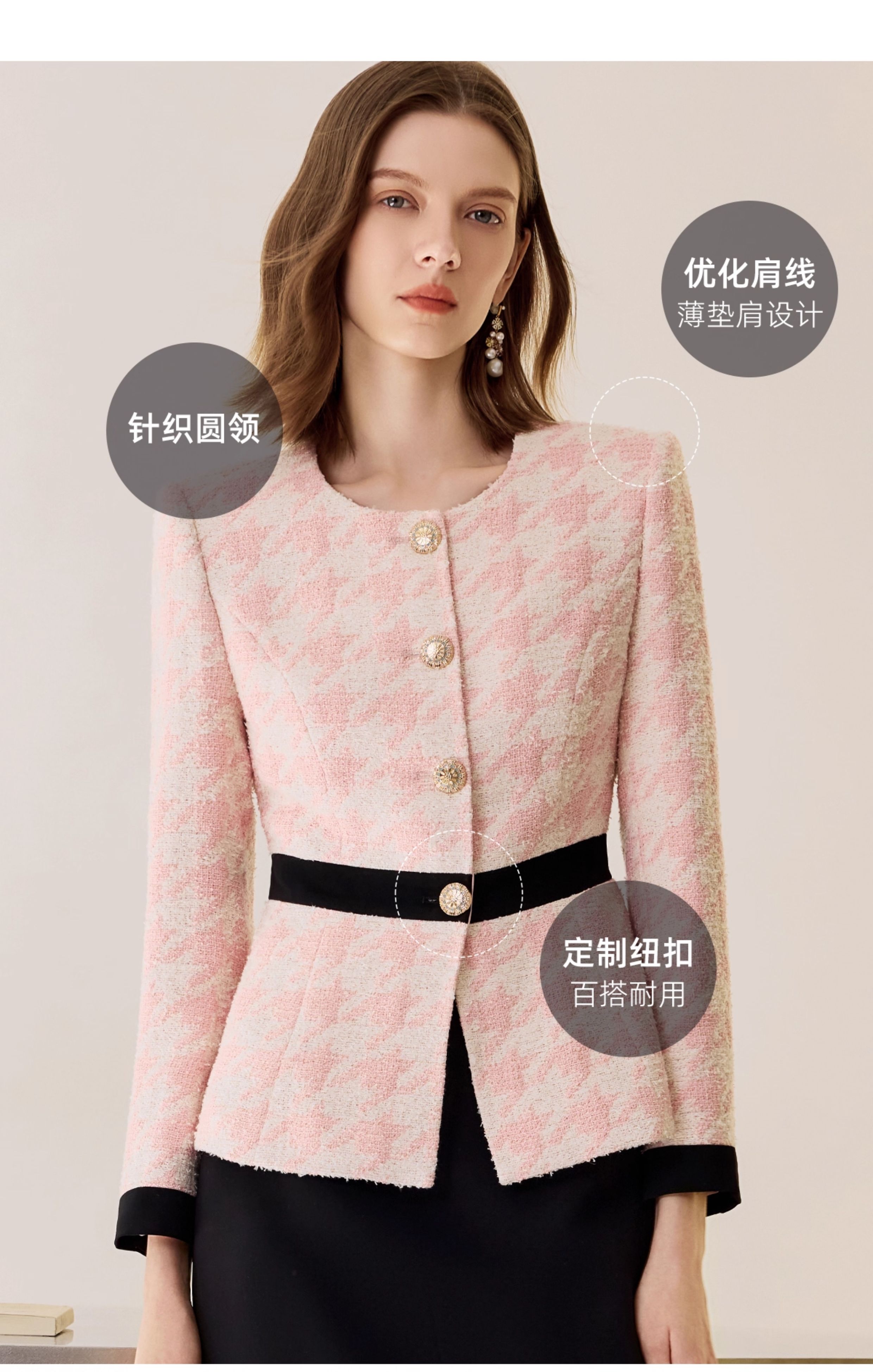 千鸟格小香风千金套装小个子秋冬2025新款轻奢高级感羊毛职业西装