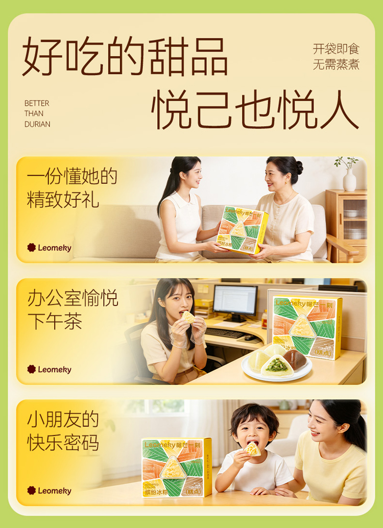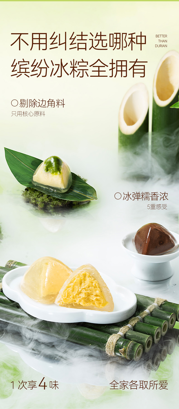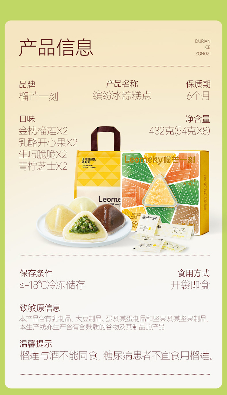 榴芒一刻榴缤纷冰粽糕点432克(54g*8)*1/2/3盒 纯榴莲果肉加量至46%冰弹糯香浓开袋即食