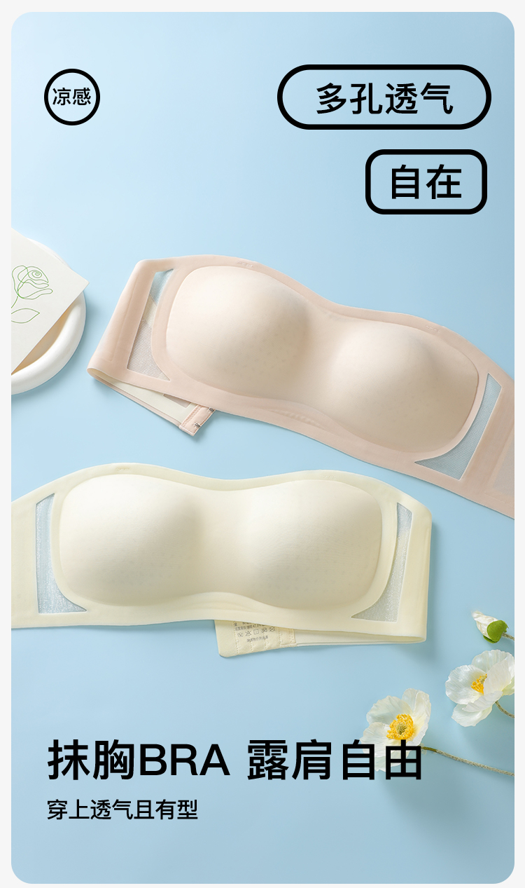 【防滑不掉】夏季薄款小胸专属无肩带内衣女无痕透气美背文胸罩月颜余香