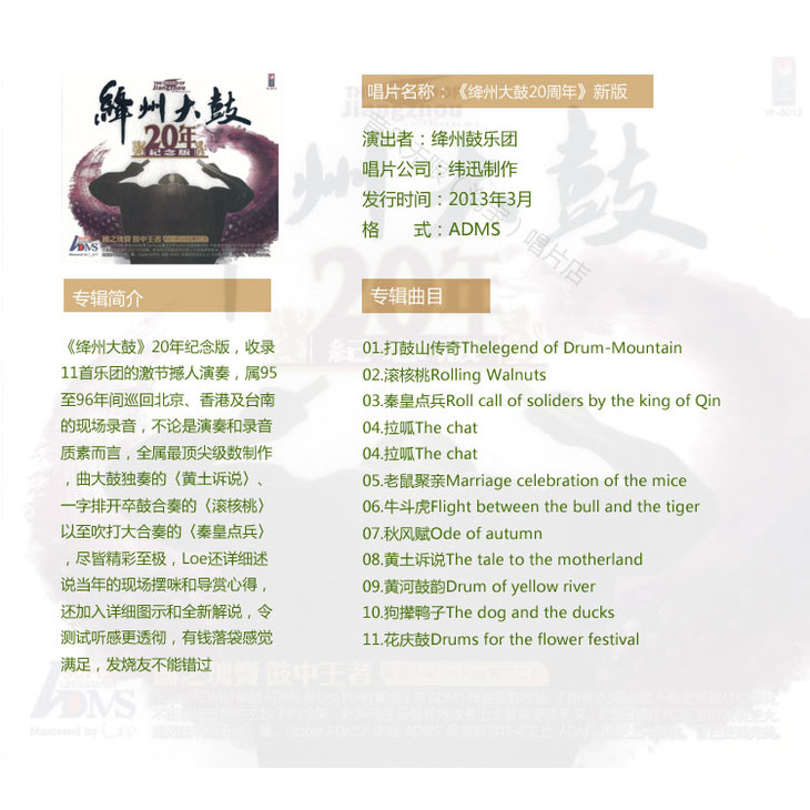 新版 Super ADMS 绛州鼓乐团《绛州大鼓20周年纪念版》 CD