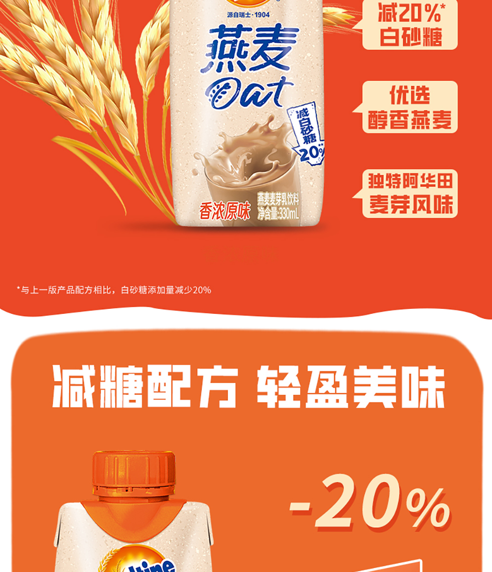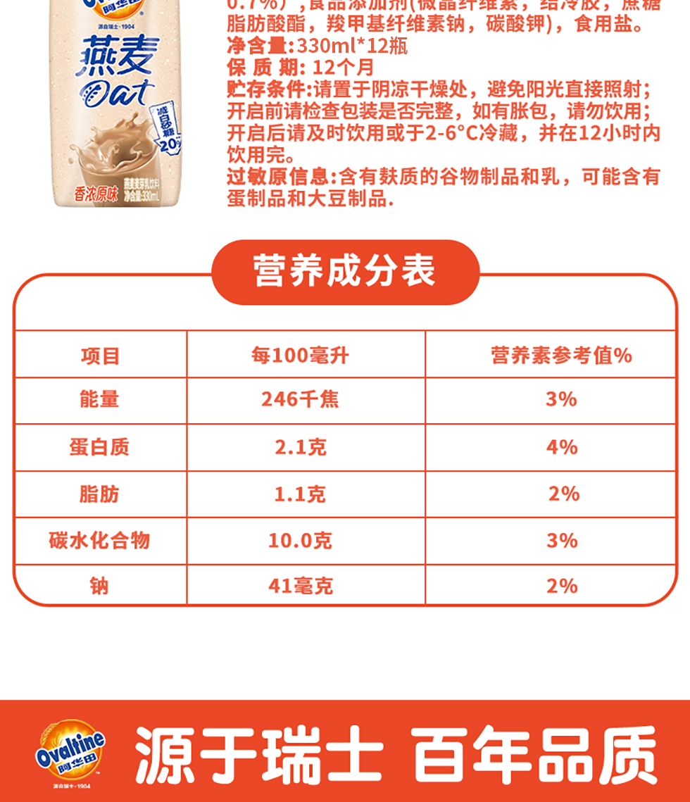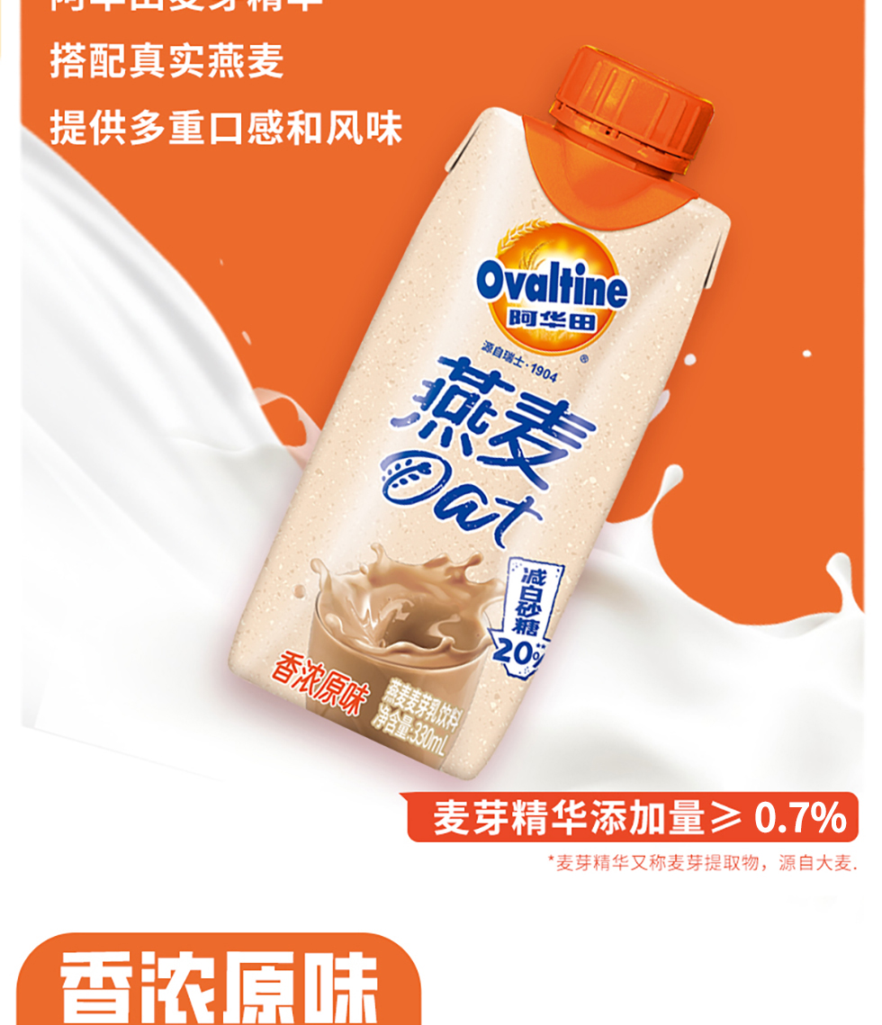 Ovaltine 阿华田 燕麦麦芽乳饮料 原味 330ml*12