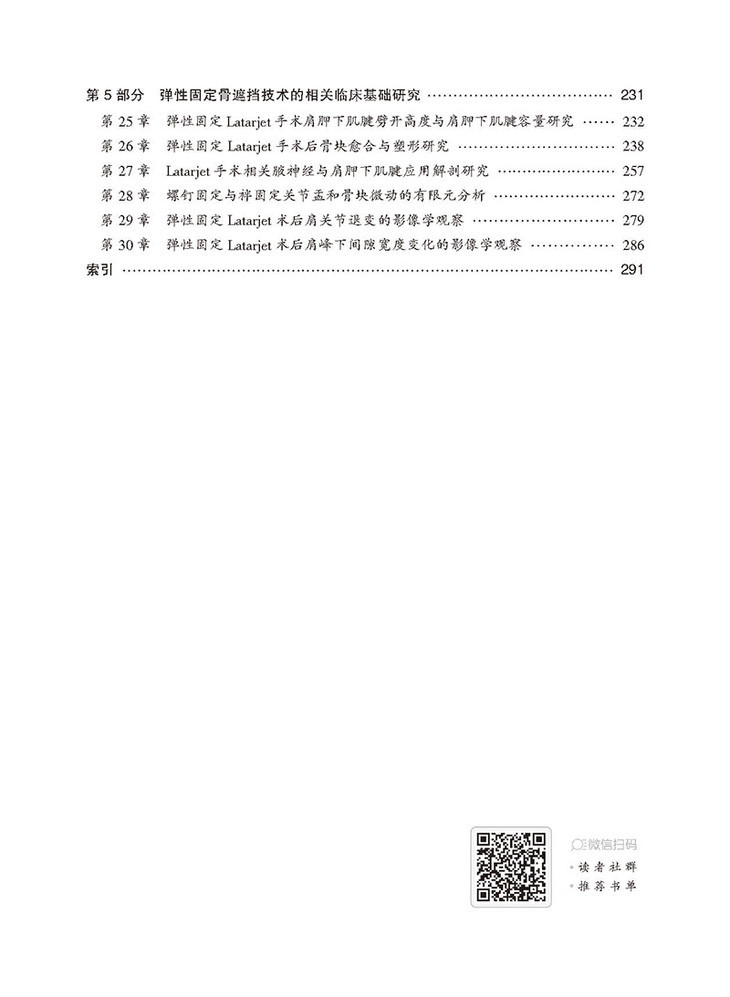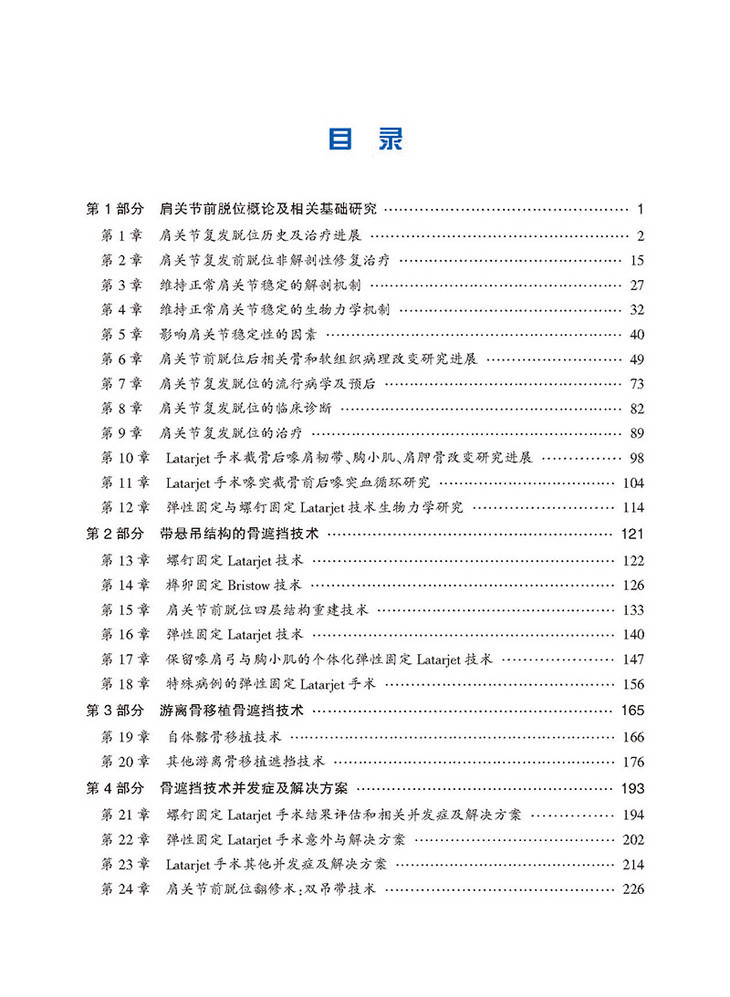本书是专门介绍肩关节前脱位骨遮挡治疗的书籍,由国内主要开展肩关节镜技术的医生参与编写。全书共30章,详细介绍了肩关节复发脱位的基础知识,以及各种改良关节镜下弹性固定骨遮挡技术的手术方法、技术要点和并发症的预防等;本书内容丰富,重点突出,强调了操作的实用性,可为广大骨科、运动医学、康复科学医生提供了系统、专业、实用的知识和指导。