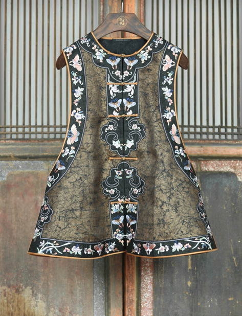 盛唐牡丹盛奢系列 | 蝴蝶边子如意手推绣马甲-苔绿