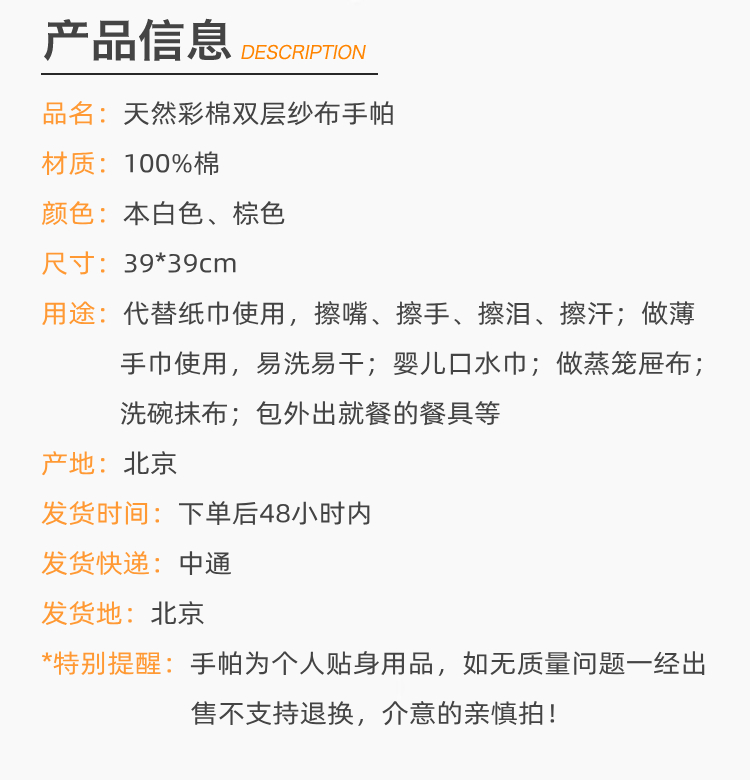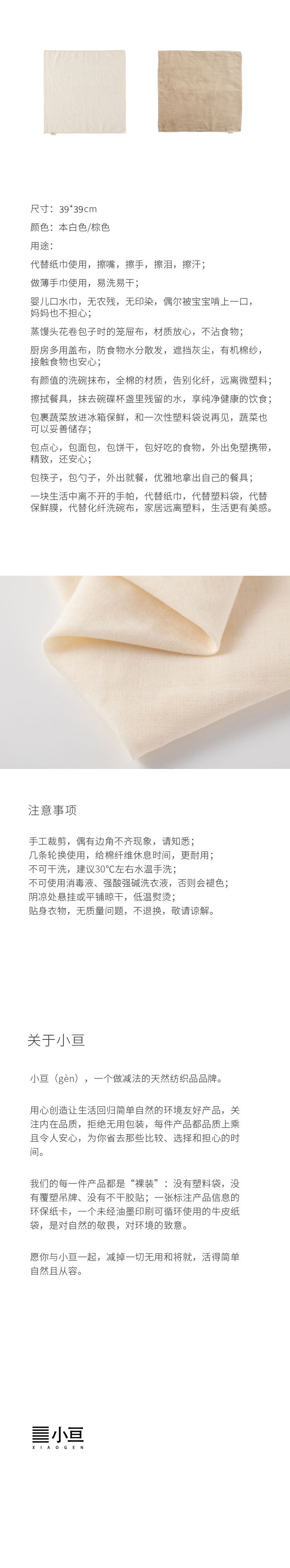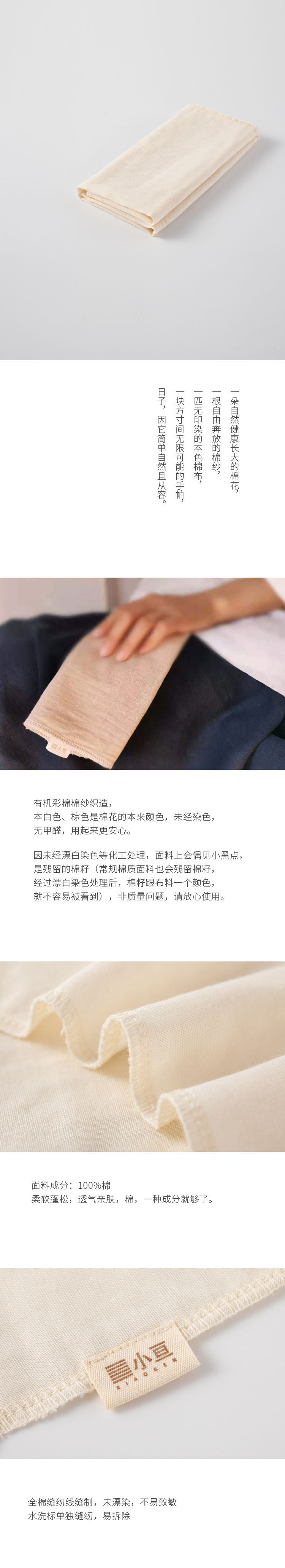 小亘天然彩棉手帕 双层纱布屉布手绢餐巾 (2条)(常规地区满120包邮)