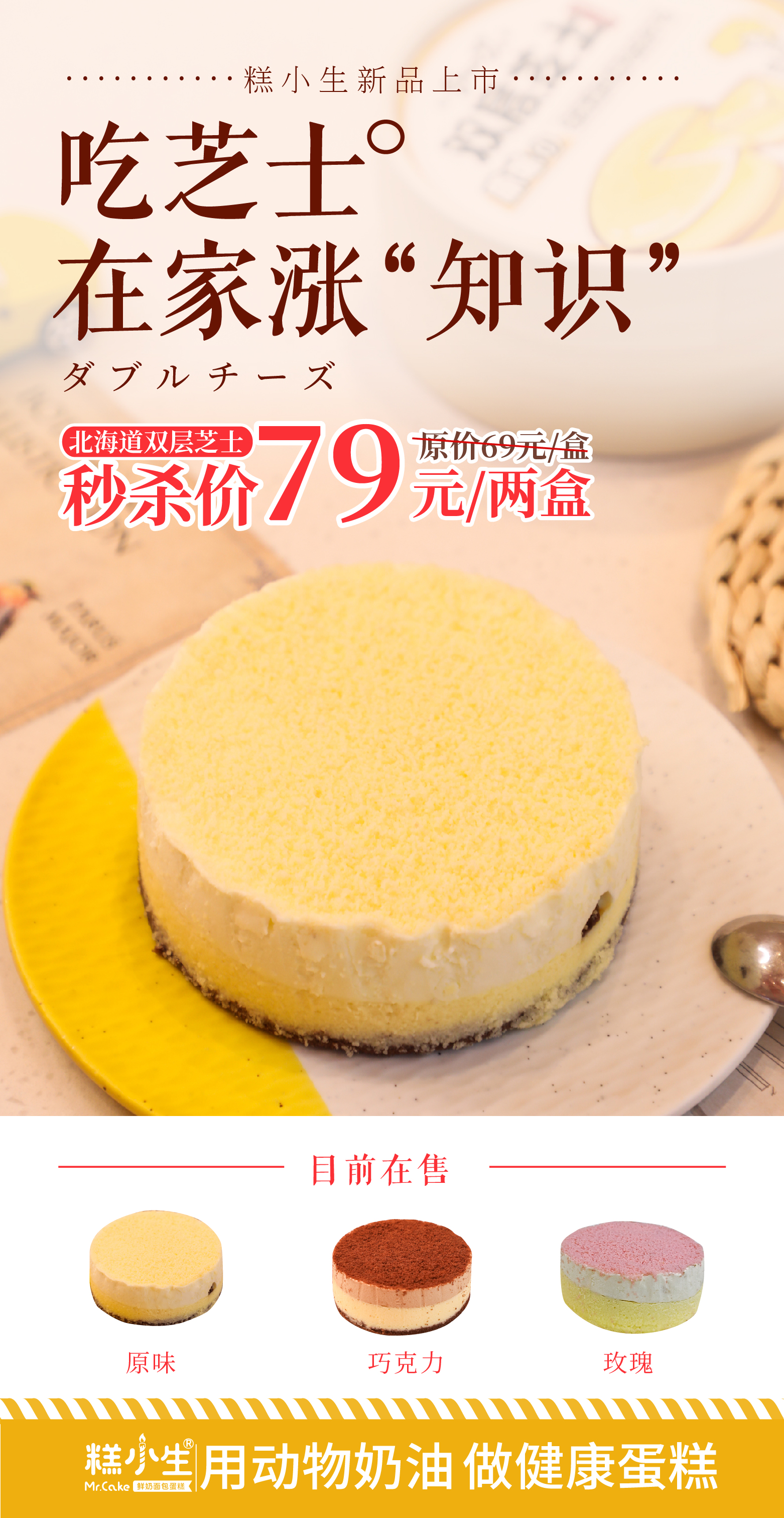 双层芝士3种口味:原味、巧克力味、玫瑰味,一口下去,浓郁的芝士层次香,口口馥郁绵密超好吃!