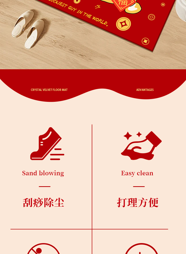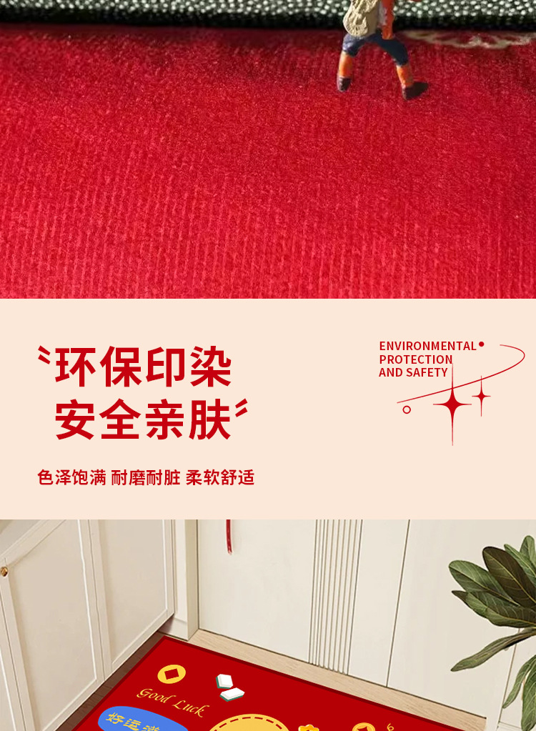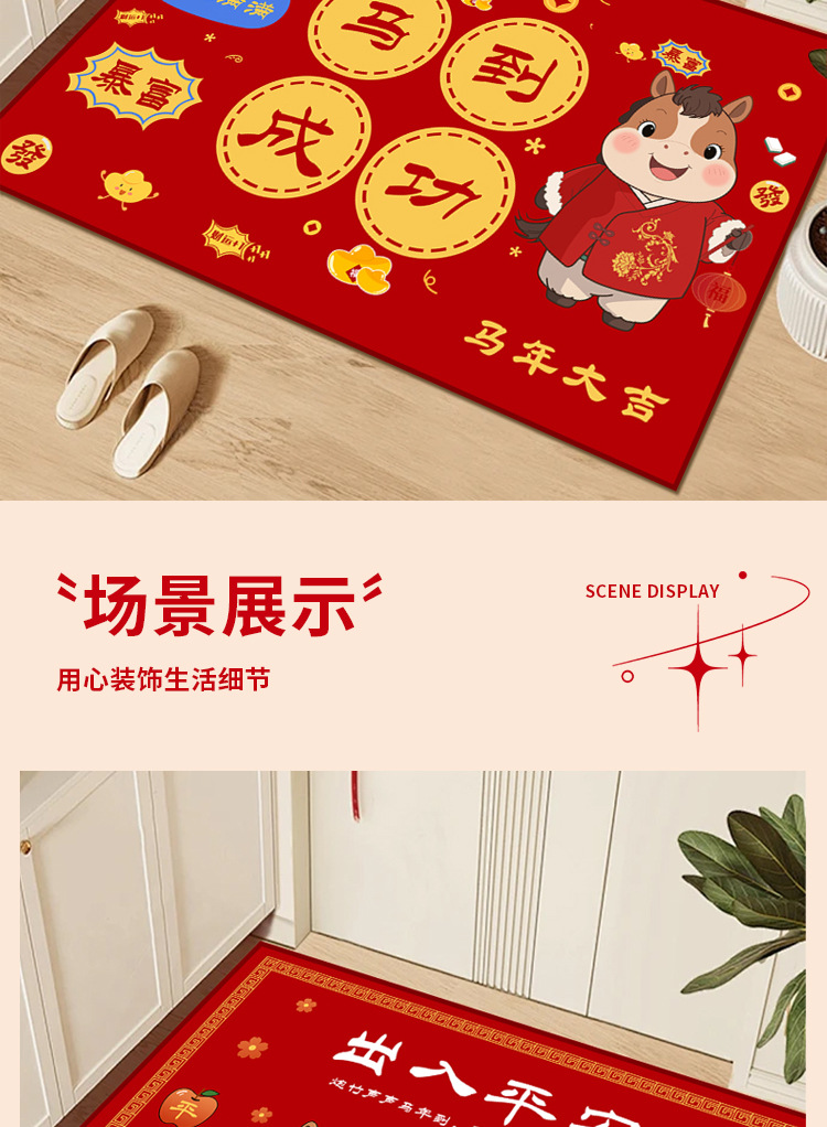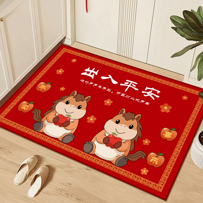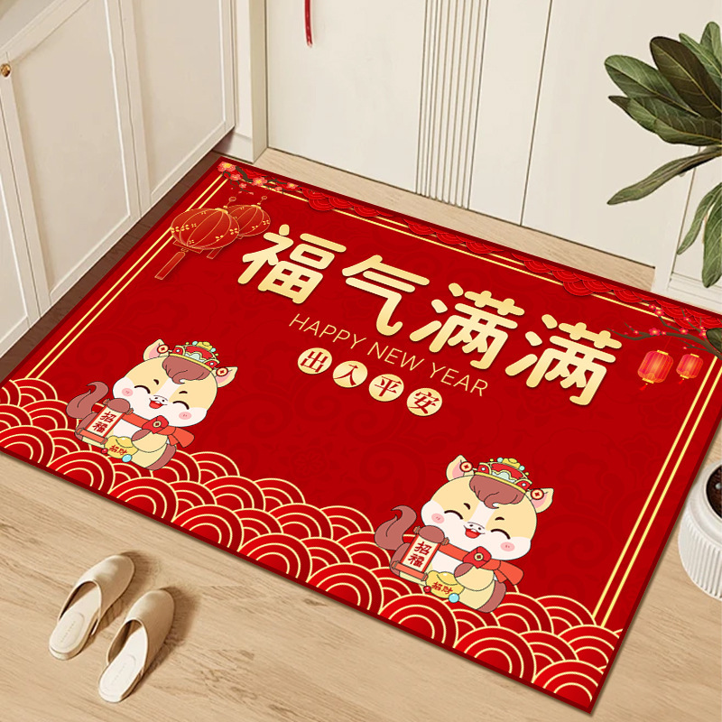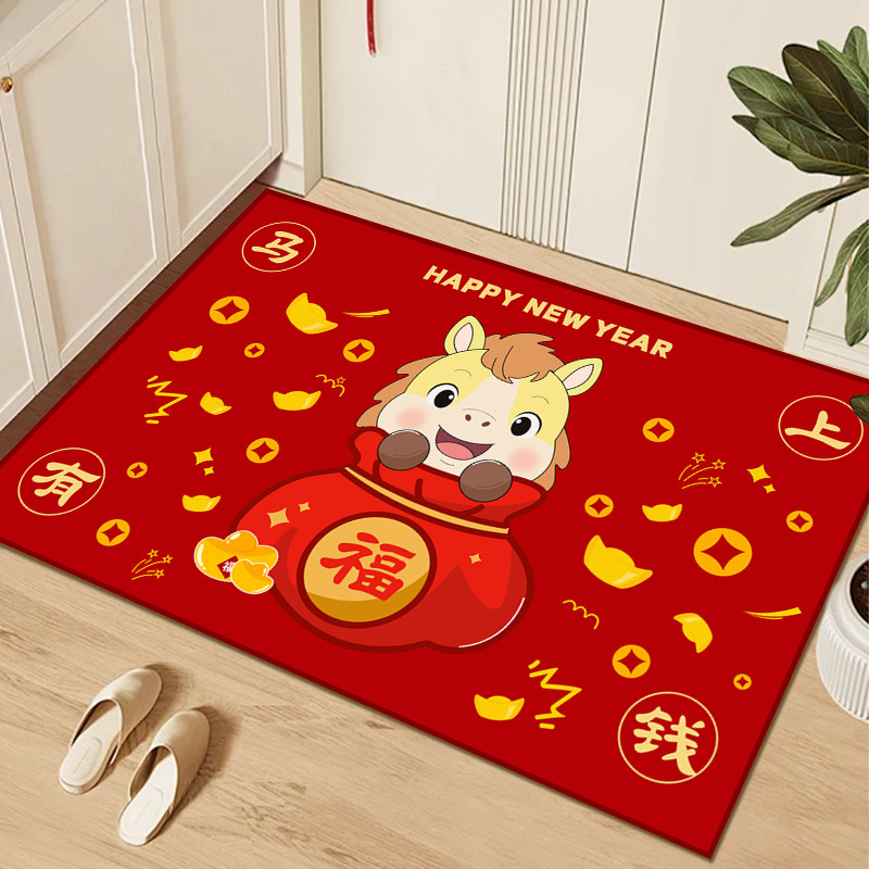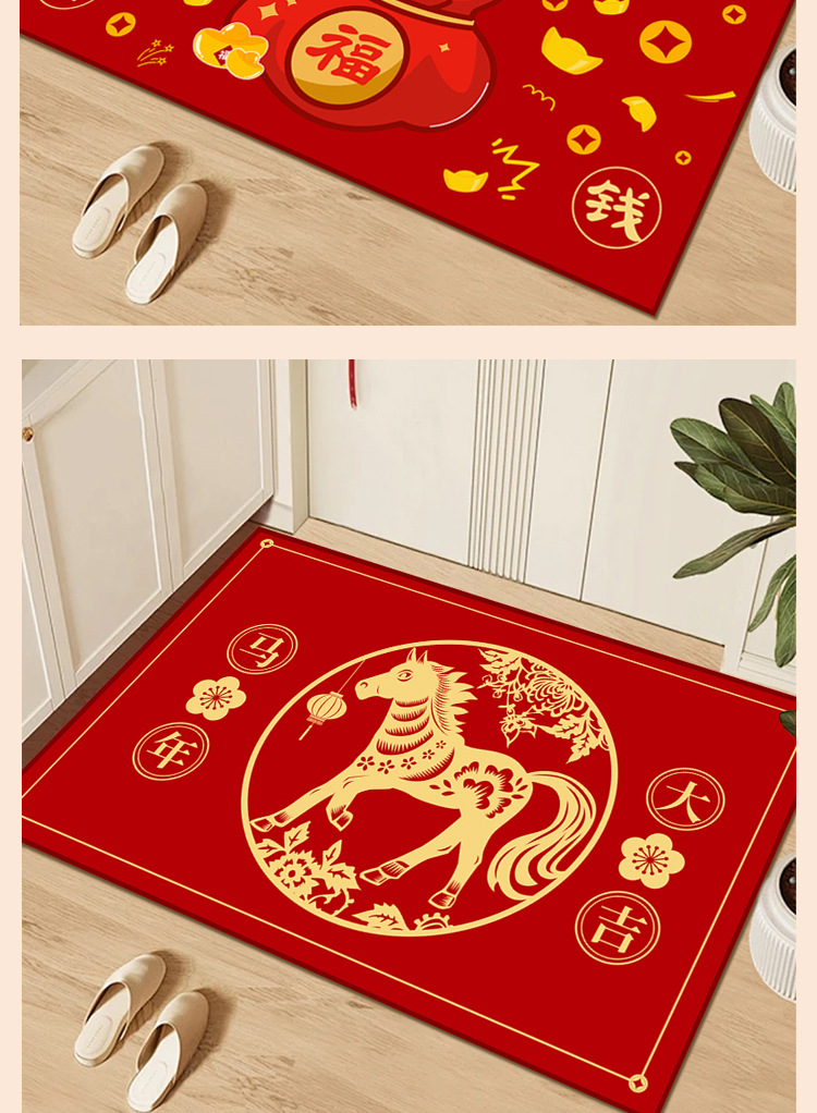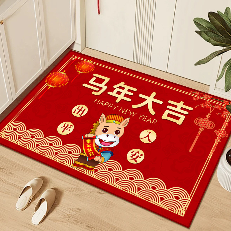 【马年限定❗️纳福开运新年地毯】踏福,迎接新年好运,马年大吉!红地垫入户门垫进门蹭土耐磨耐脏易打理脚垫喜庆新年防滑垫
