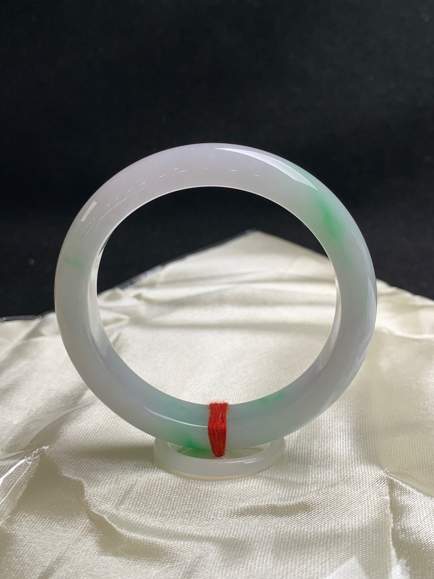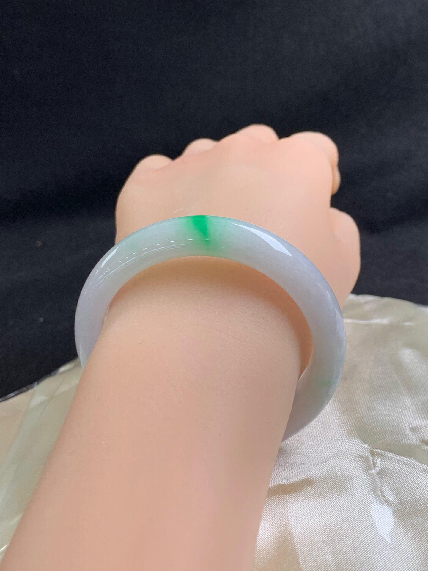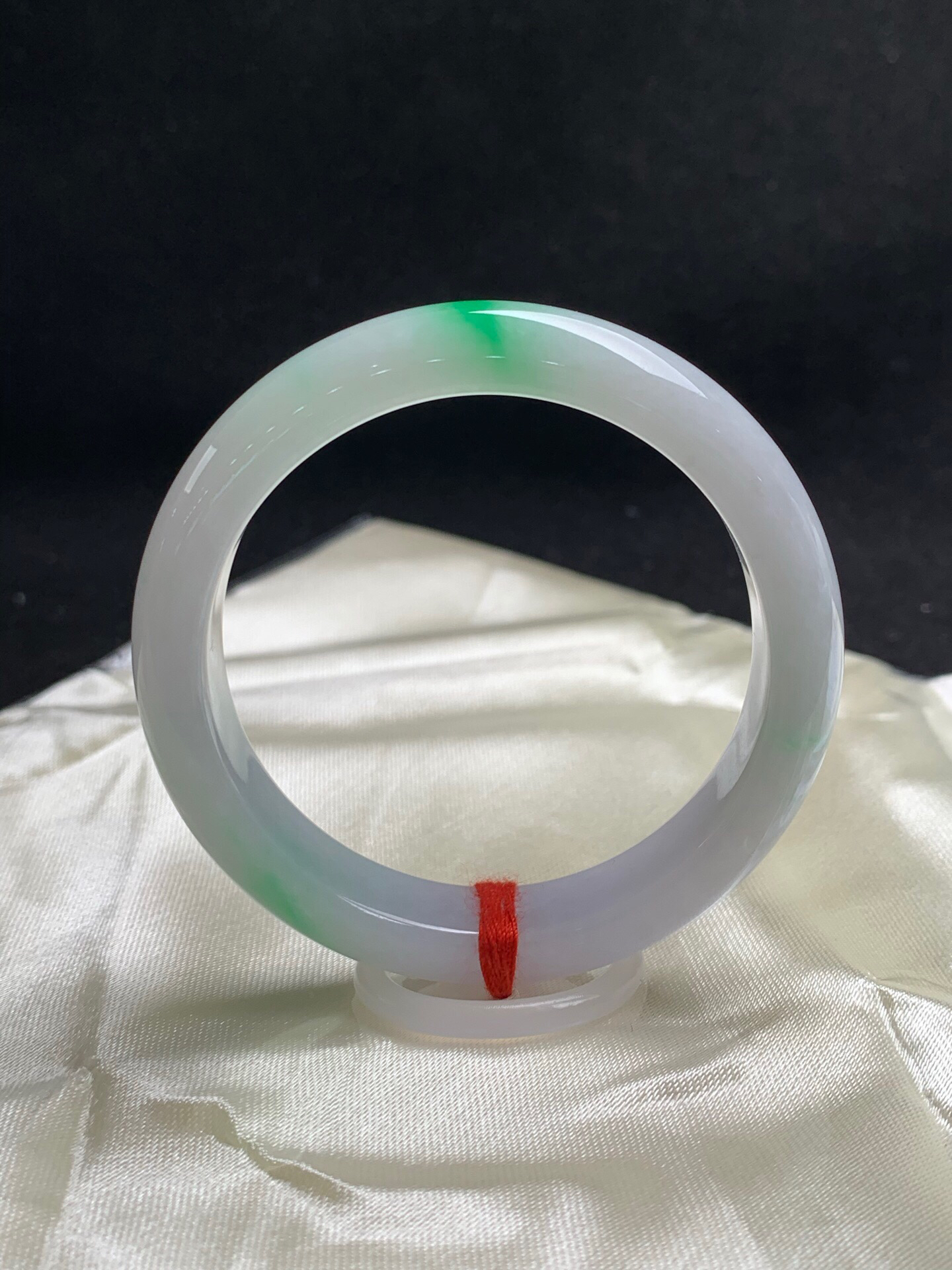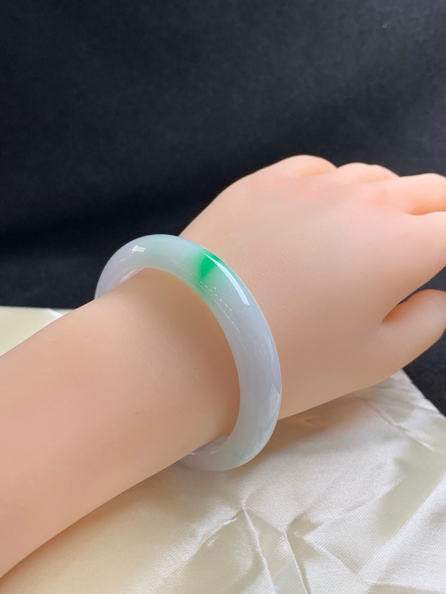 620672,52.7圈口,细糯飘绿正圈平安镯,淡紫底飘阳绿,实物紫色不太显色,飘色辣,完美,尺寸:52.7-11.7-7.8,超值价💰40300 #优石客珠宝#香玉荟萃