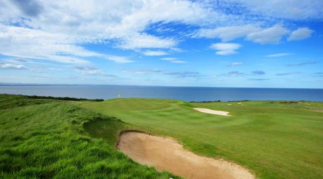 过去八年苏格兰地区唯一新建的球场,风格与定位都与新世纪初打破传统而登场的金士班有几分相似。同样是在平坦的农田上巧用土方,同样是将球道布局阶梯式排开,以满足绝大多数球洞观赏天海连接的唯美景观。时隔20年,当金士班已经长成大自然自然抚育的样子时,年轻的邓巴尼再次把那种视觉冲击带给保守的高尔夫故乡。人工堆出的很多土包,让球场幻化为月球表面。会所建在高坡上,和海滨拥夹着错落的18条球道。在这里,沙坑更多的只是对景观的贡献,障碍性远不如周围那些古典林克斯球场。球道比较宽阔,甚至几个球洞设置了双球道,以提供更多的策略与选择,增加趣味性。果岭面积适中,起伏并不夸张,果岭周围用短草区替代长草,错失果岭的惩罚性也随之降低,草原推也成为一种选择。3个短四杆洞,长打者有机会一杆轰上果岭,短打者也有两上抓鸟的可能,算是对球手的一种犒赏。