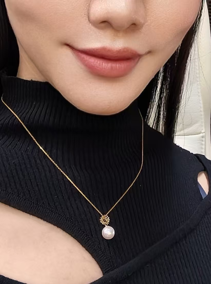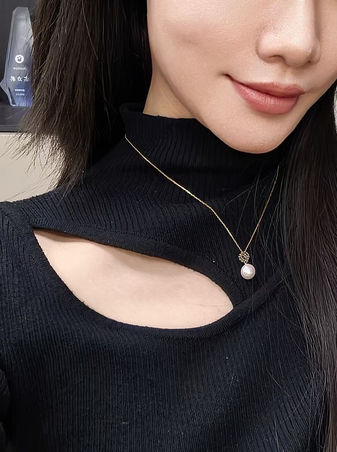 阮仕莫奈花园系列 G18K金日本akoya珍珠链牌 9-9.5mm NY210468MNHYA