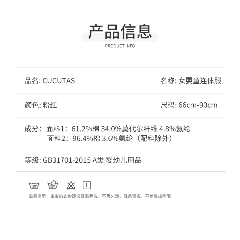 Cucutas女婴童连体服CY26SPW010粉红66#-90#