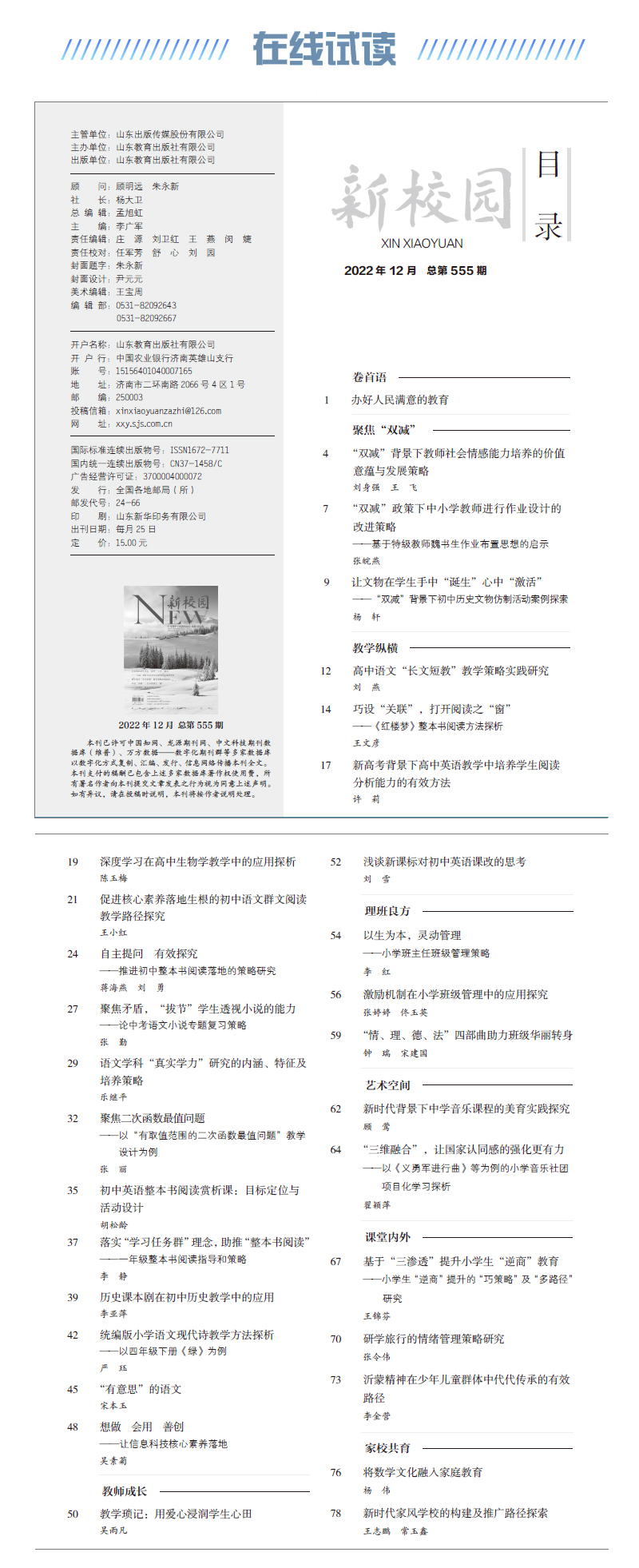 《新校园》杂志 2022年12月期 总第555期