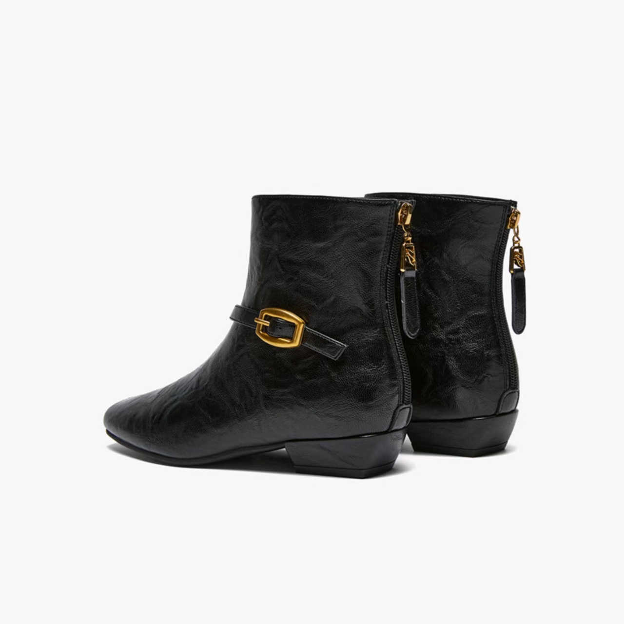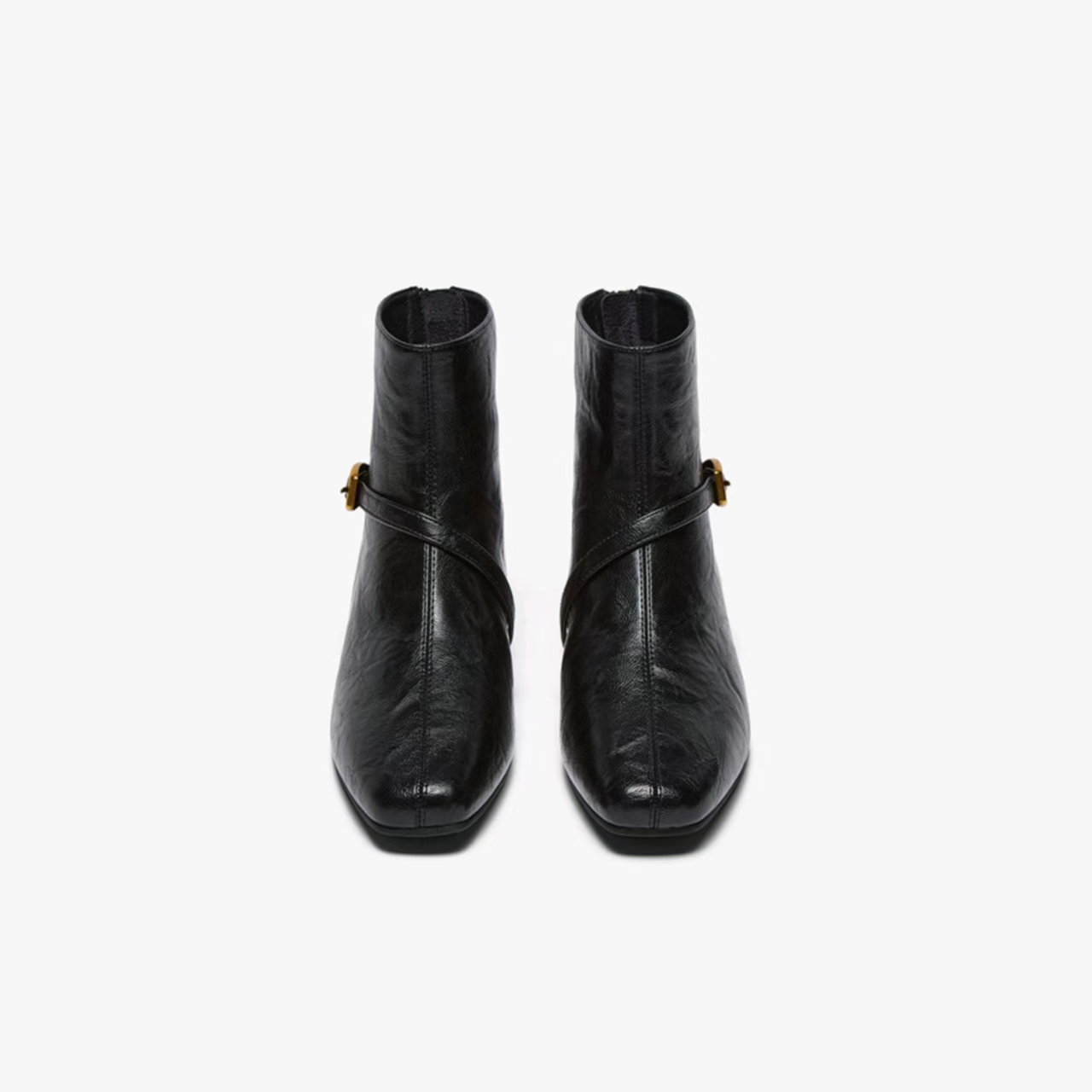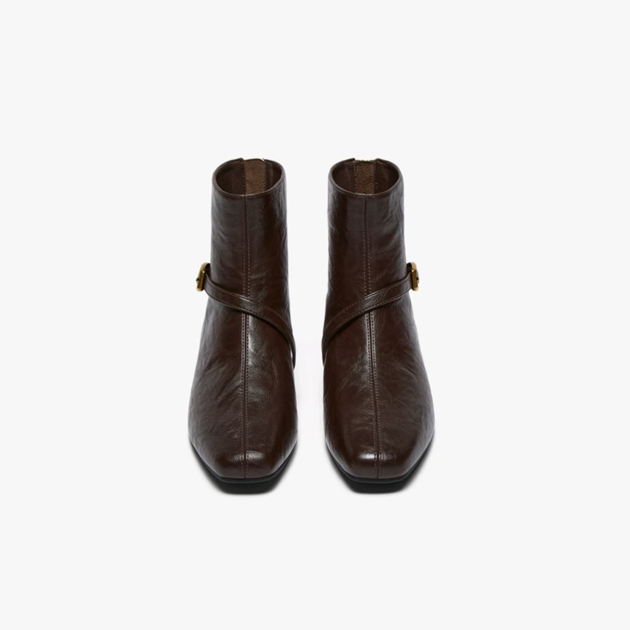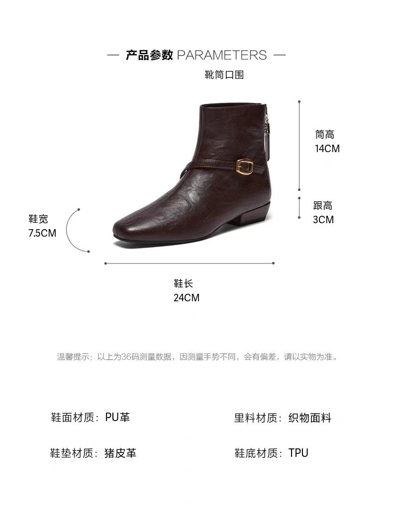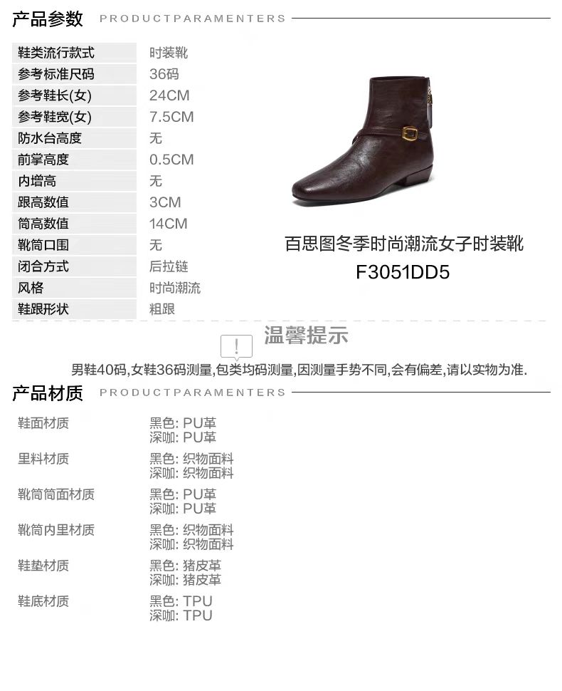 【云粉节】BF楼百思图2025冬季新款通勤方头复古短靴粗跟女时装靴F3051DD5吊牌价799.现价339