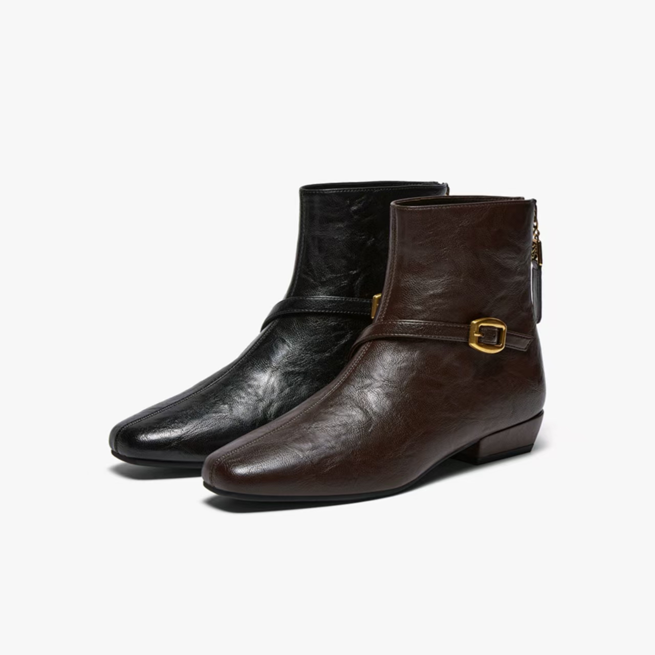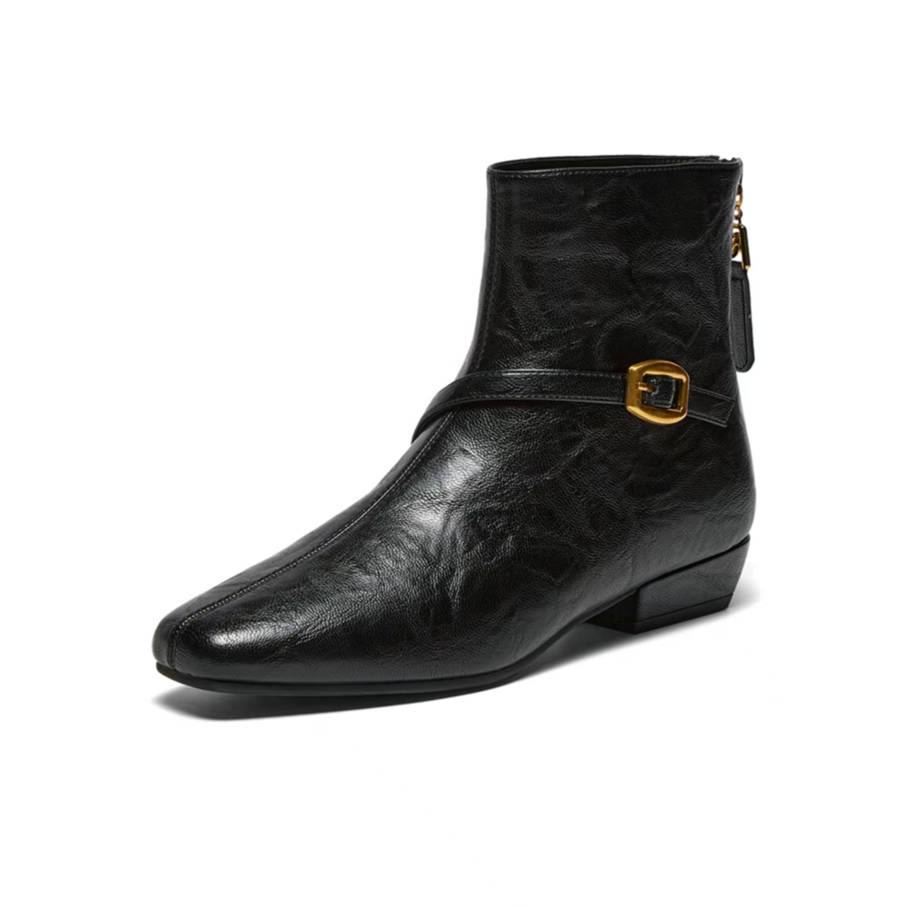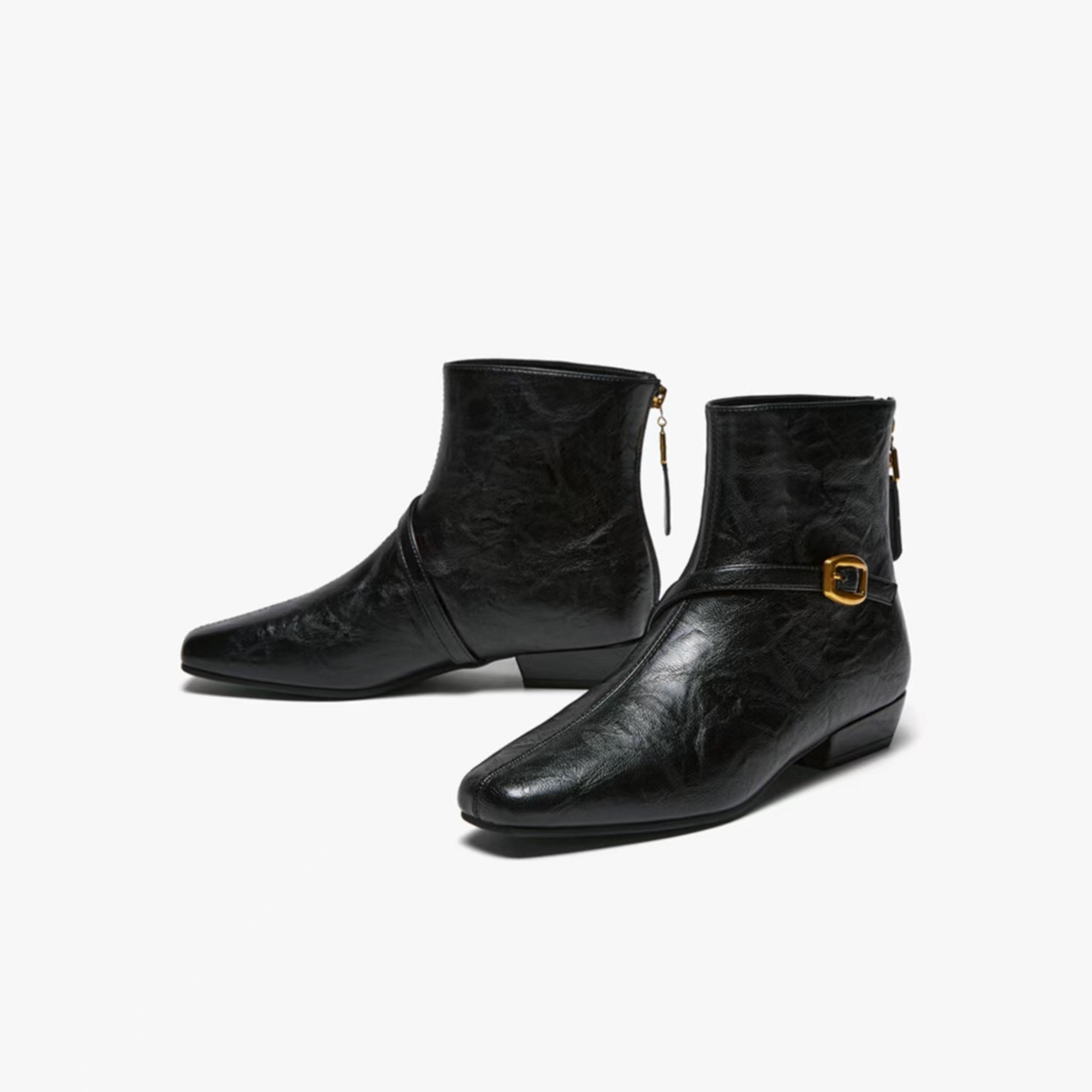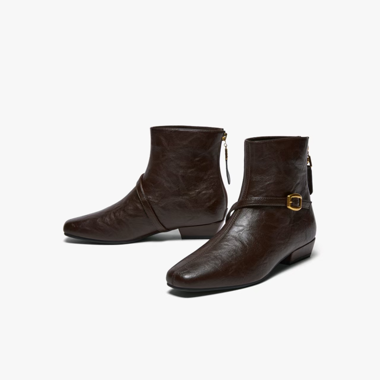 【云粉节】BF楼百思图2025冬季新款通勤方头复古短靴粗跟女时装靴F3051DD5吊牌价799.现价339