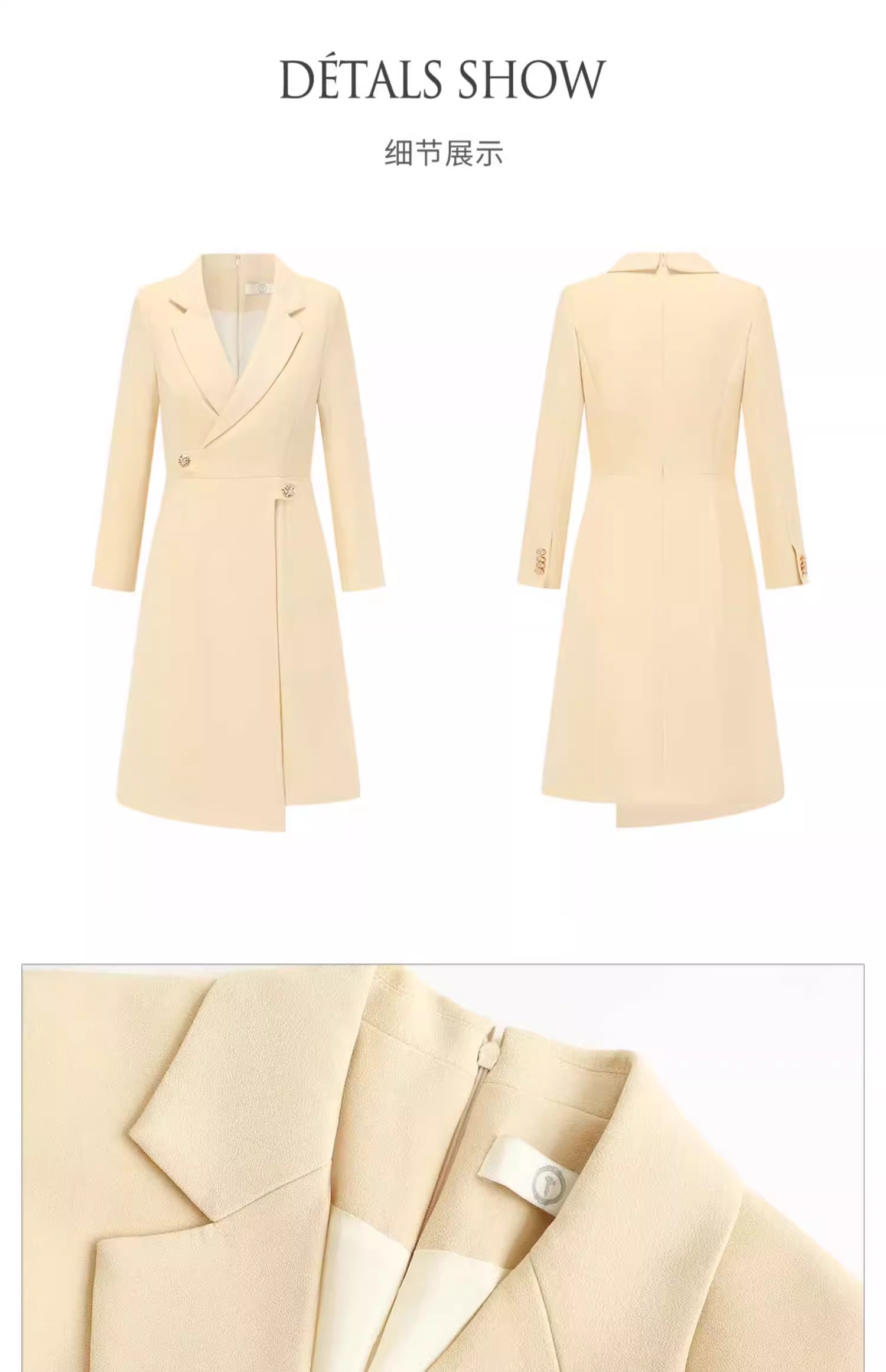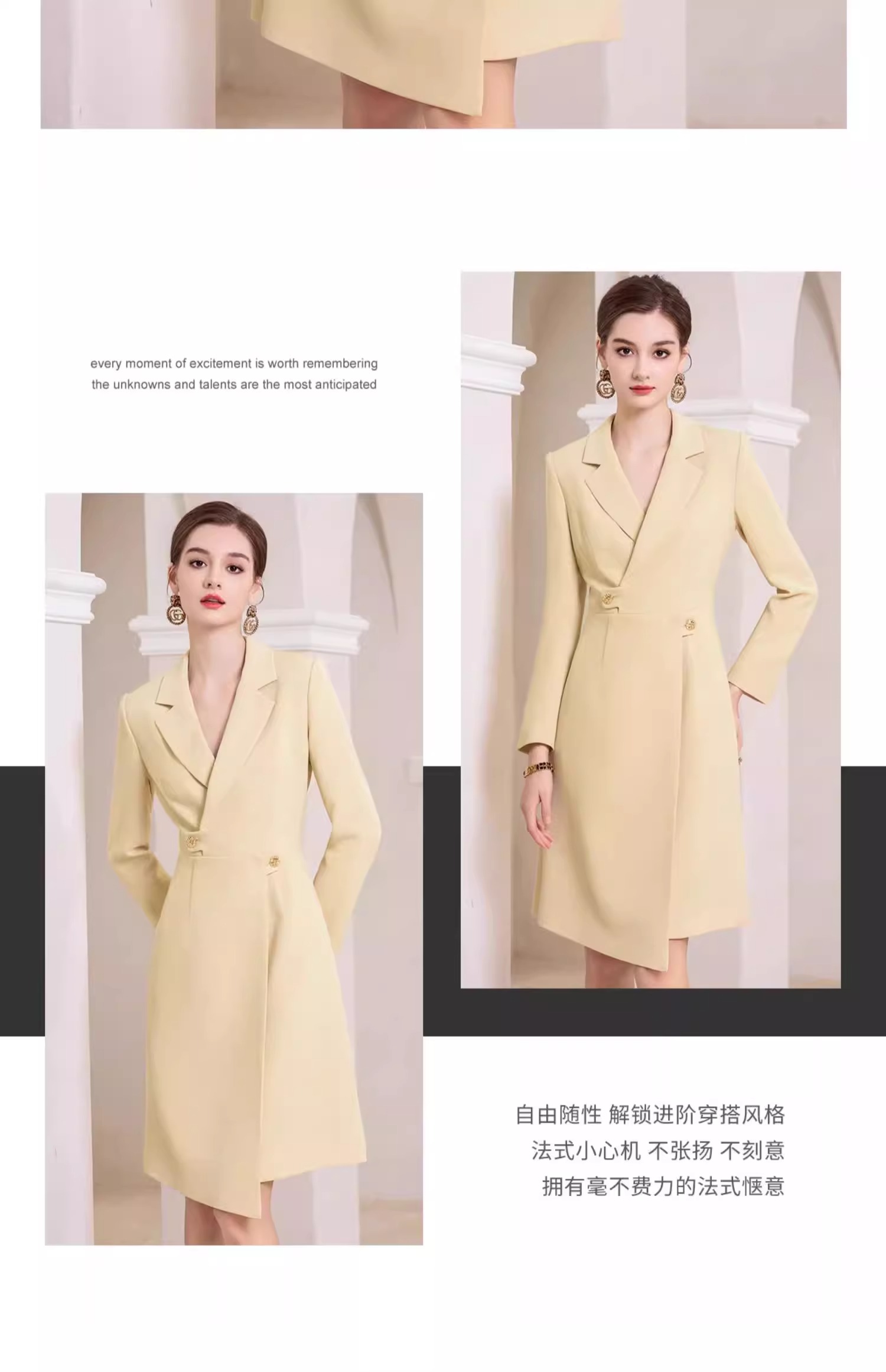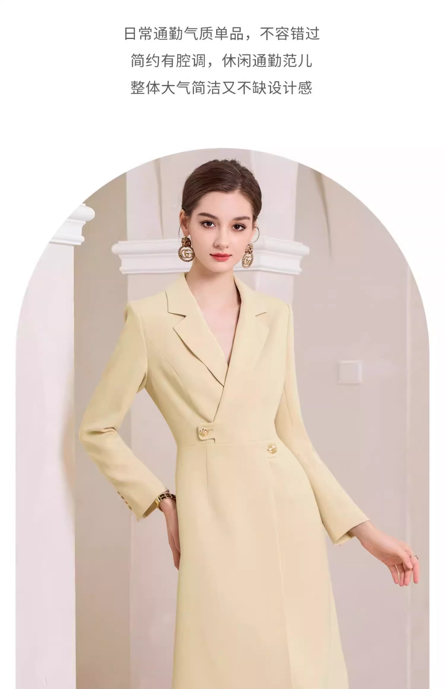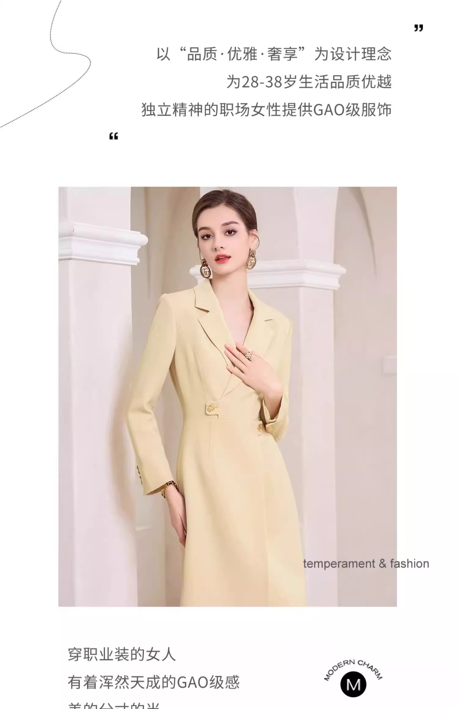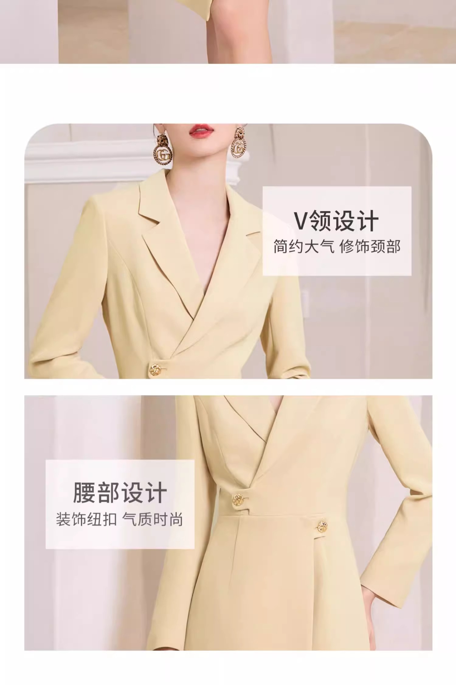 AD米黄色西装连衣裙女主持人上镜连身裙2023新款收腰显瘦西服裙子