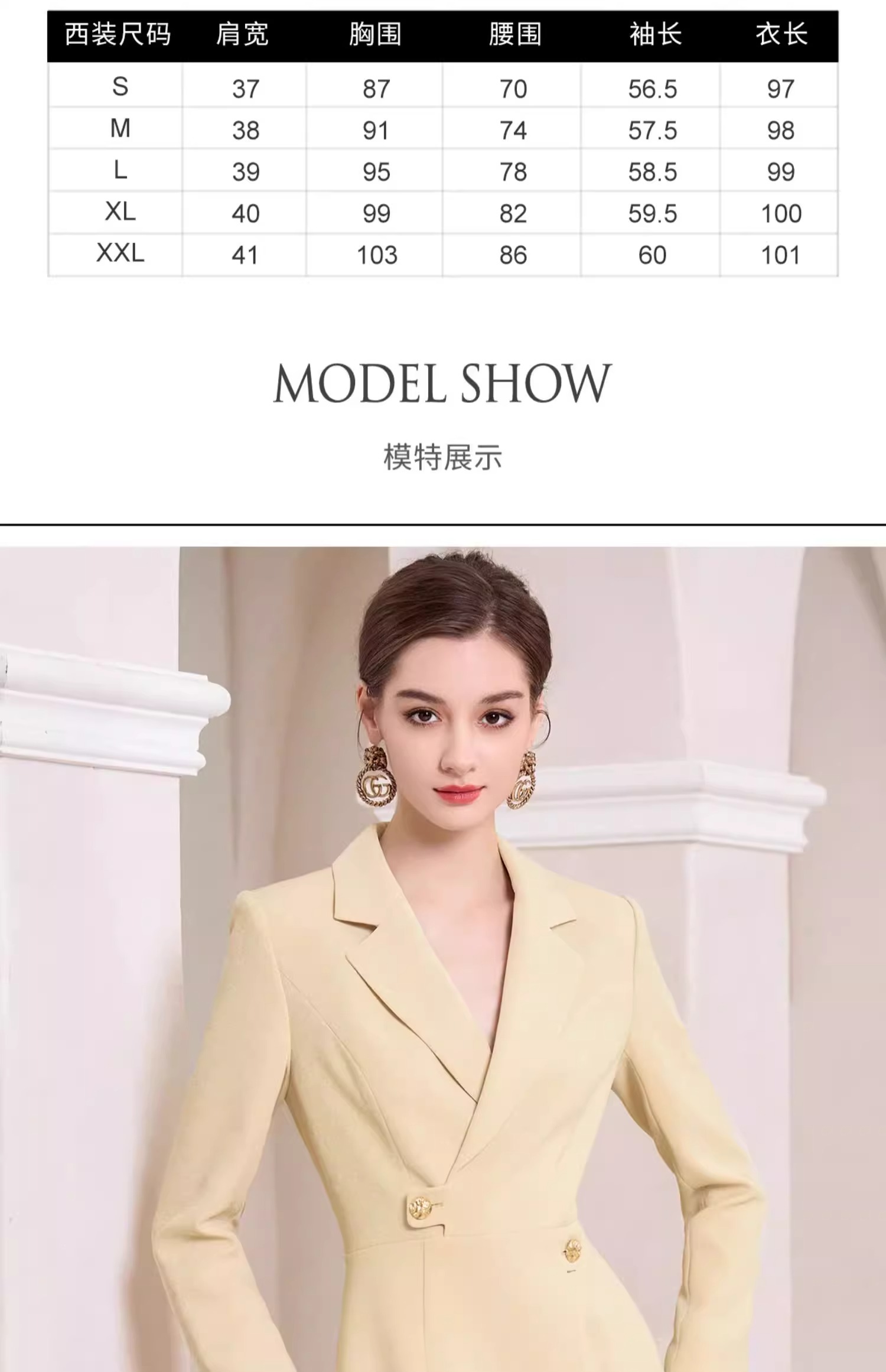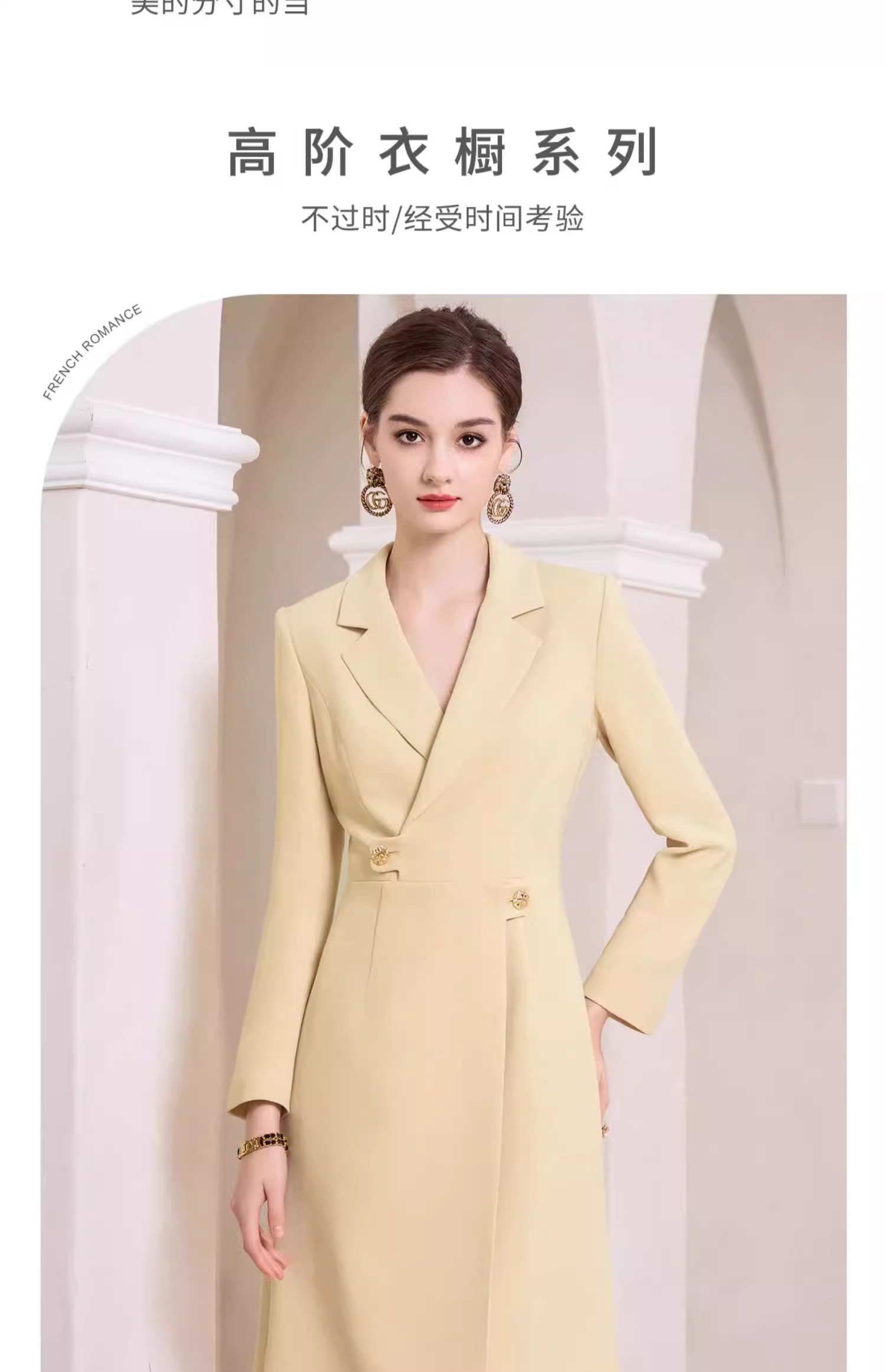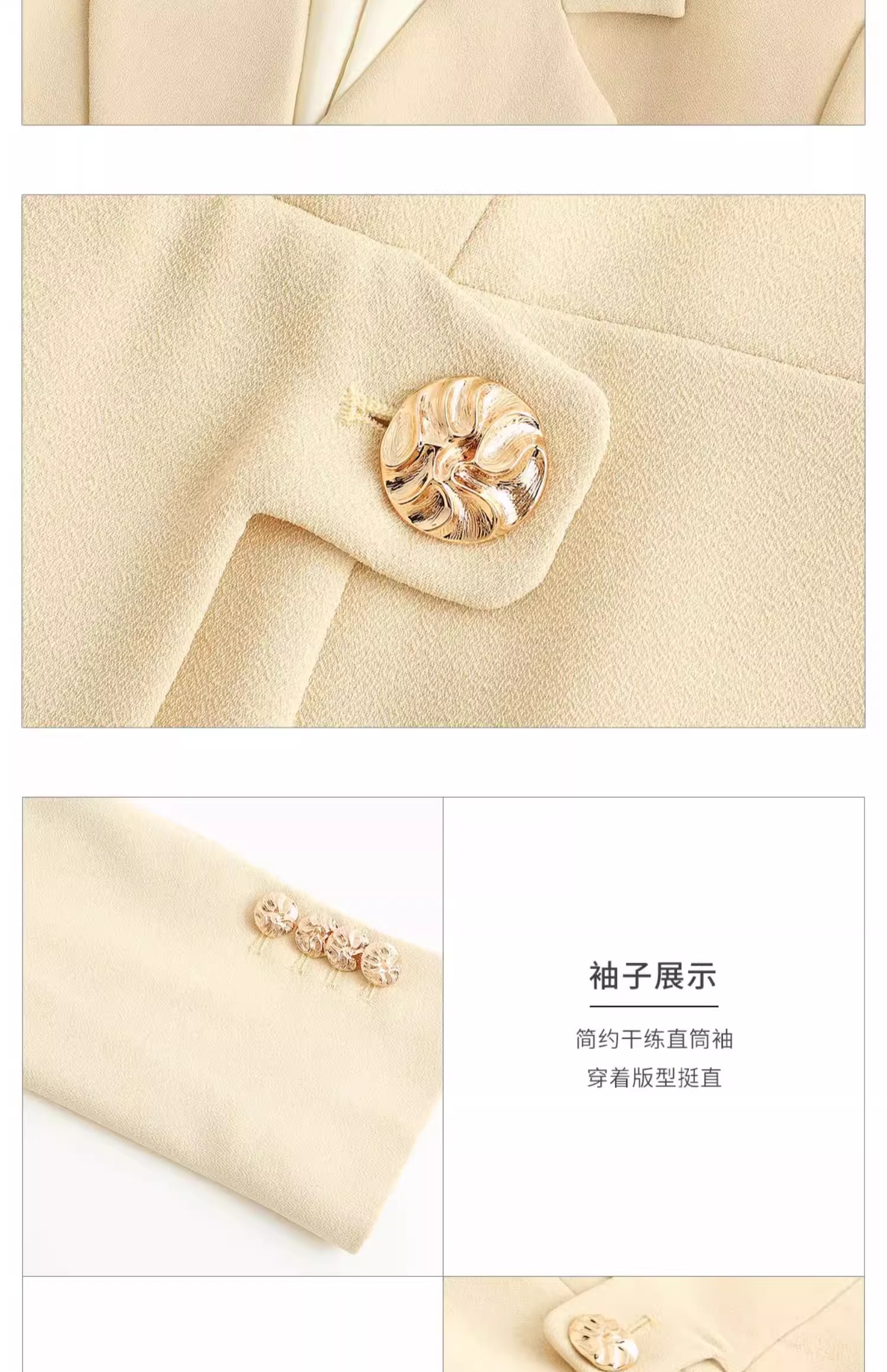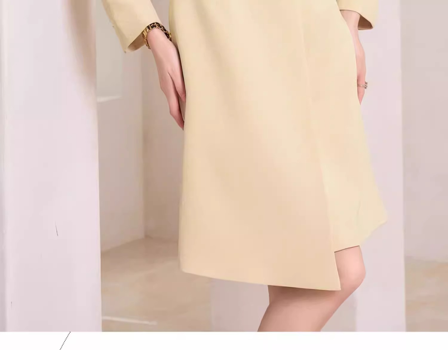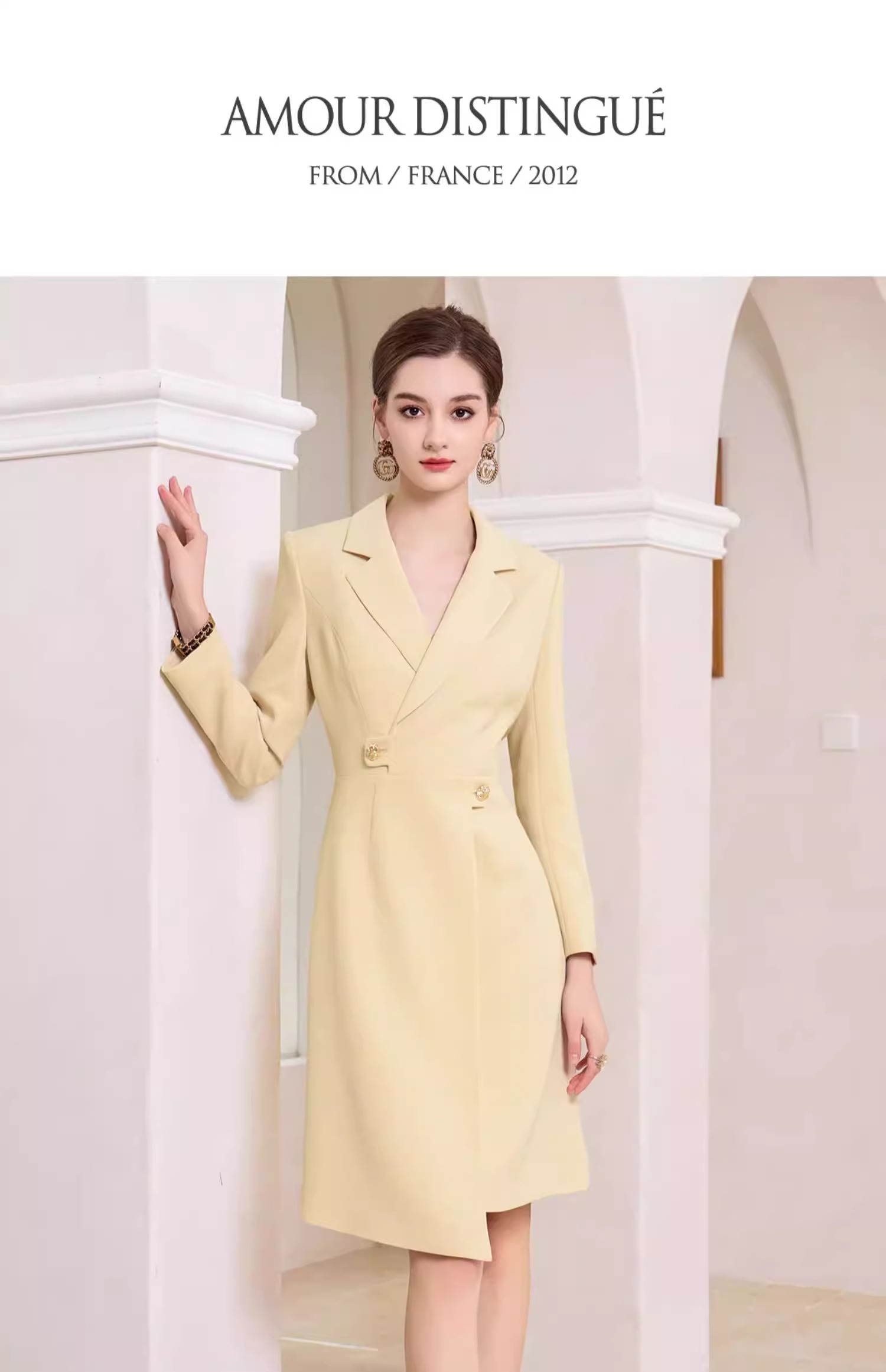 AD米黄色西装连衣裙女主持人上镜连身裙2023新款收腰显瘦西服裙子