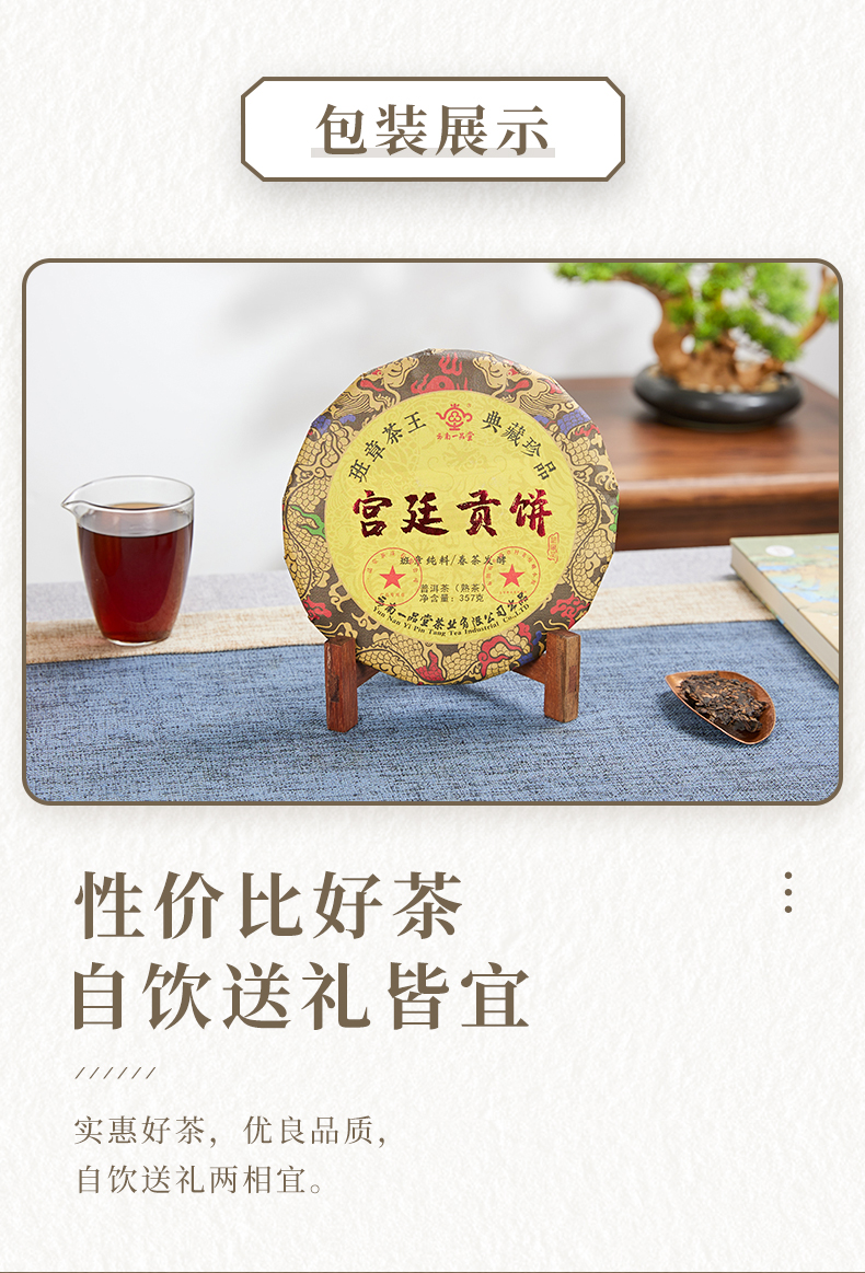 一品堂丨宫廷贡饼 熟普 普洱熟茶 2014年原料 357g