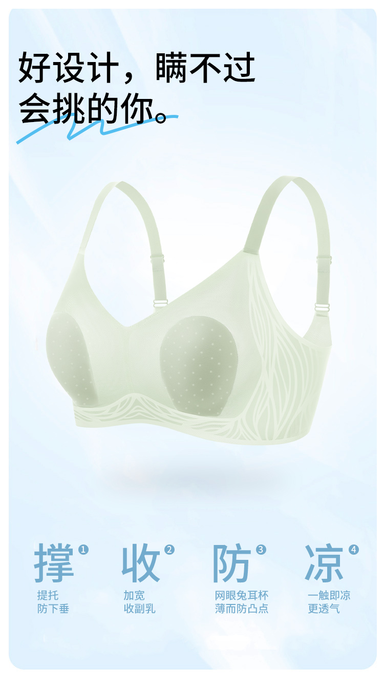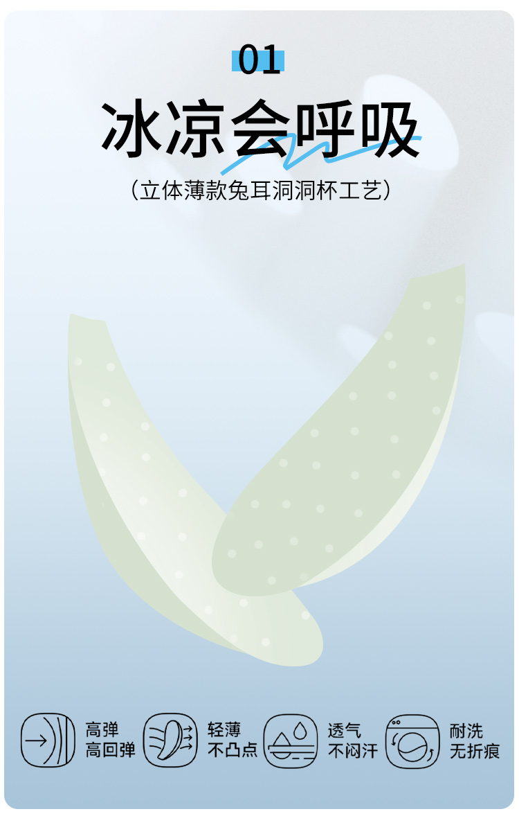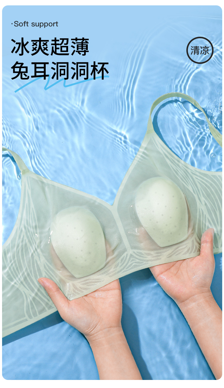 【298选3】D1-【B-D杯】【超薄透气兔耳洞洞杯】清凉无痕大胸显小内衣女春夏薄款女士文胸 清逸如烟