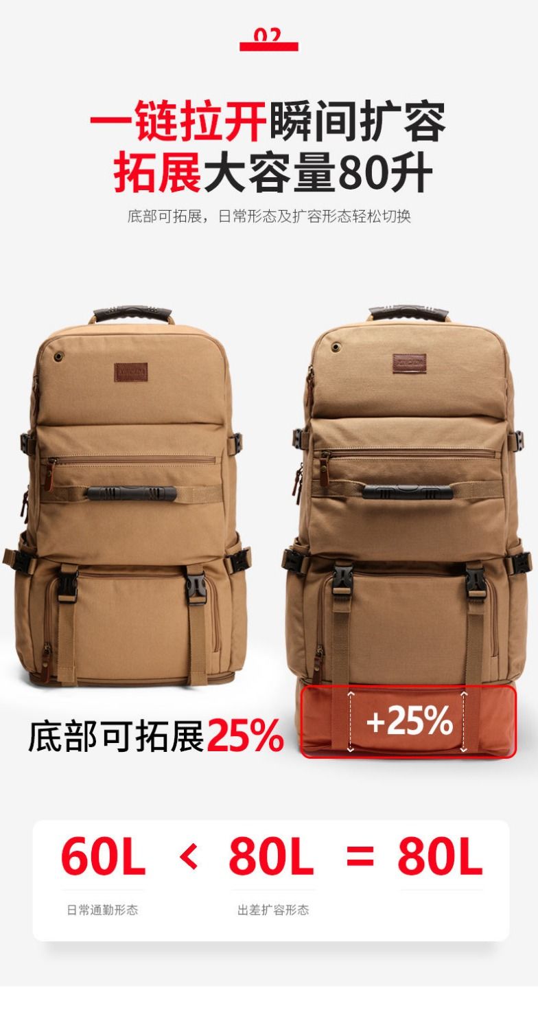 可扩容带鞋仓 旅行背包80L大容量 出差大号行李双肩包