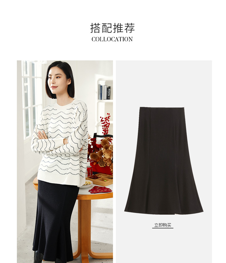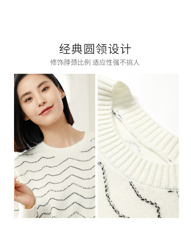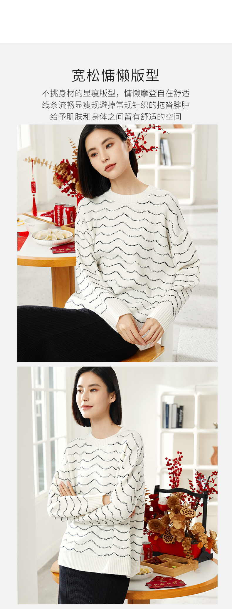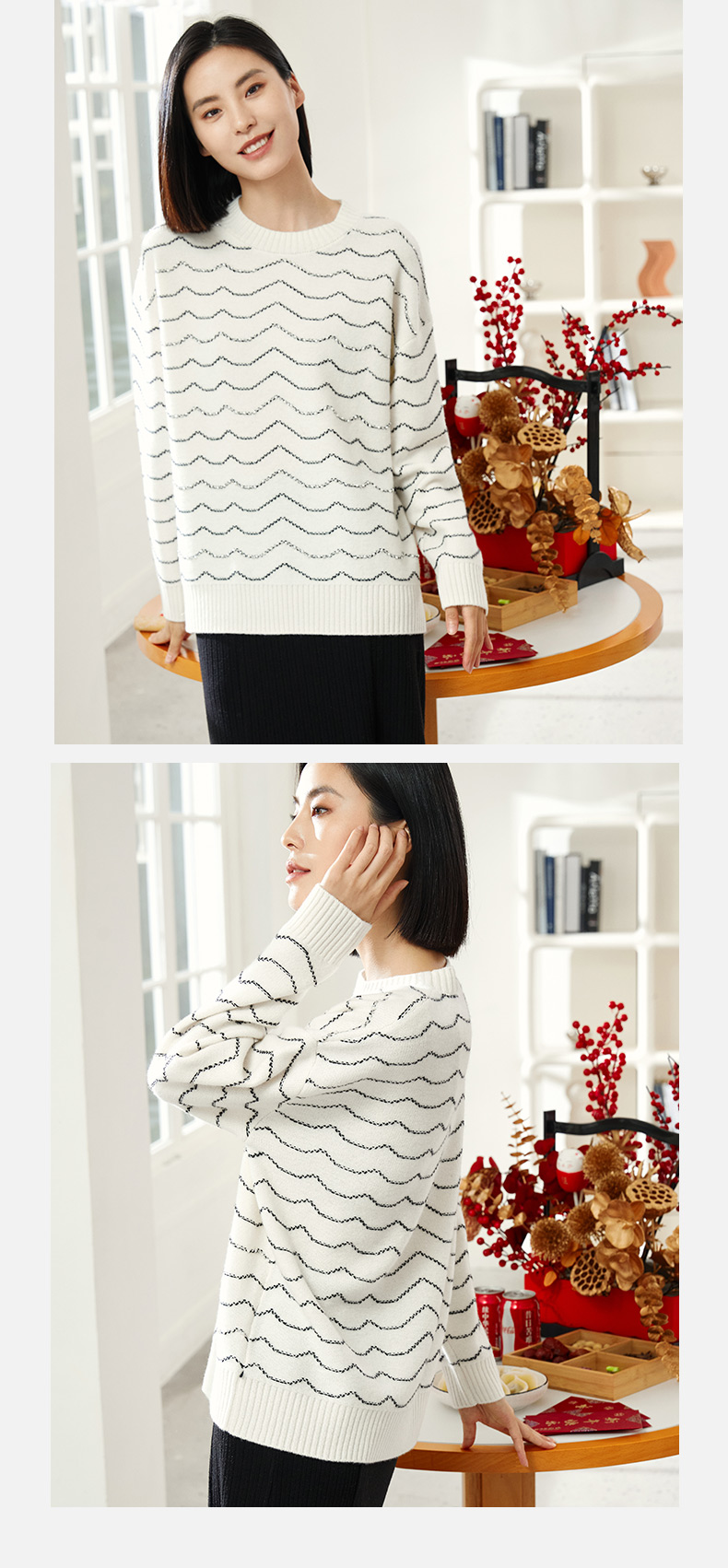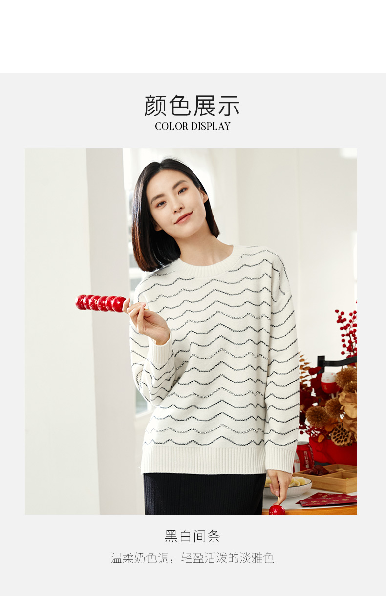 玳莎珍珠装饰套头针织衫女2023冬季新款设计感波浪条纹优雅上衣 DD33303