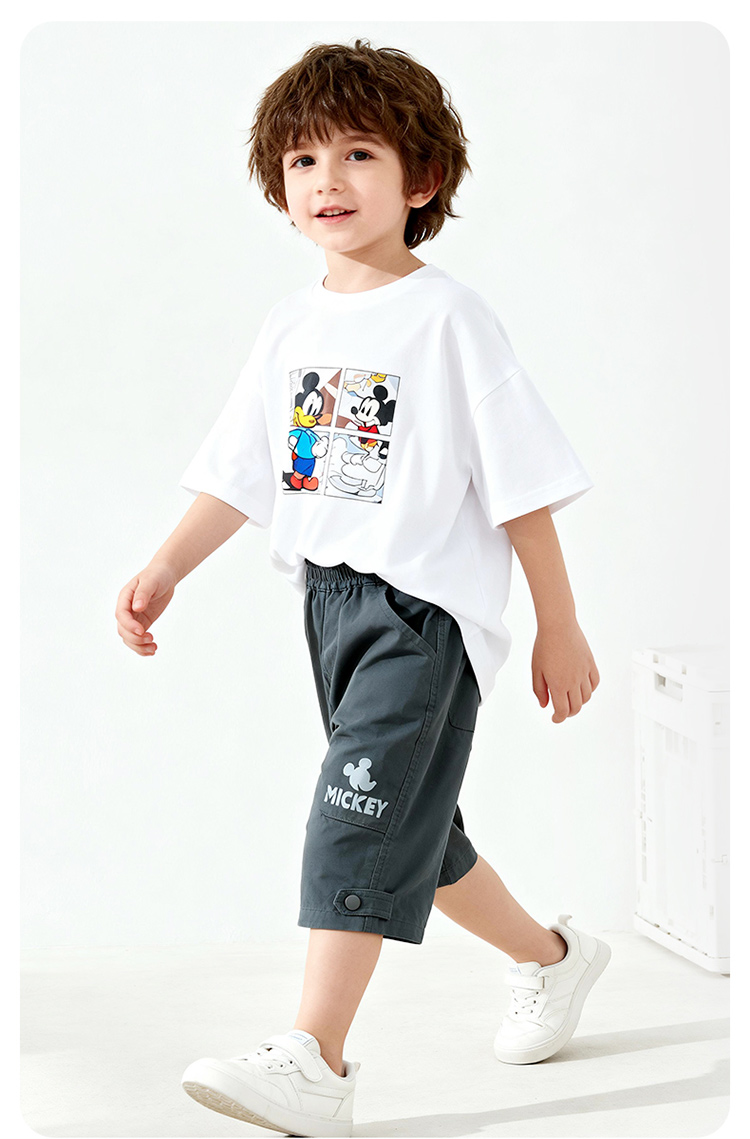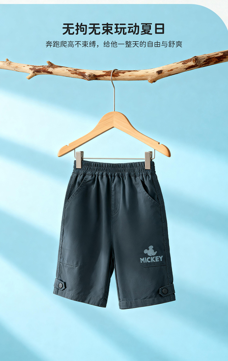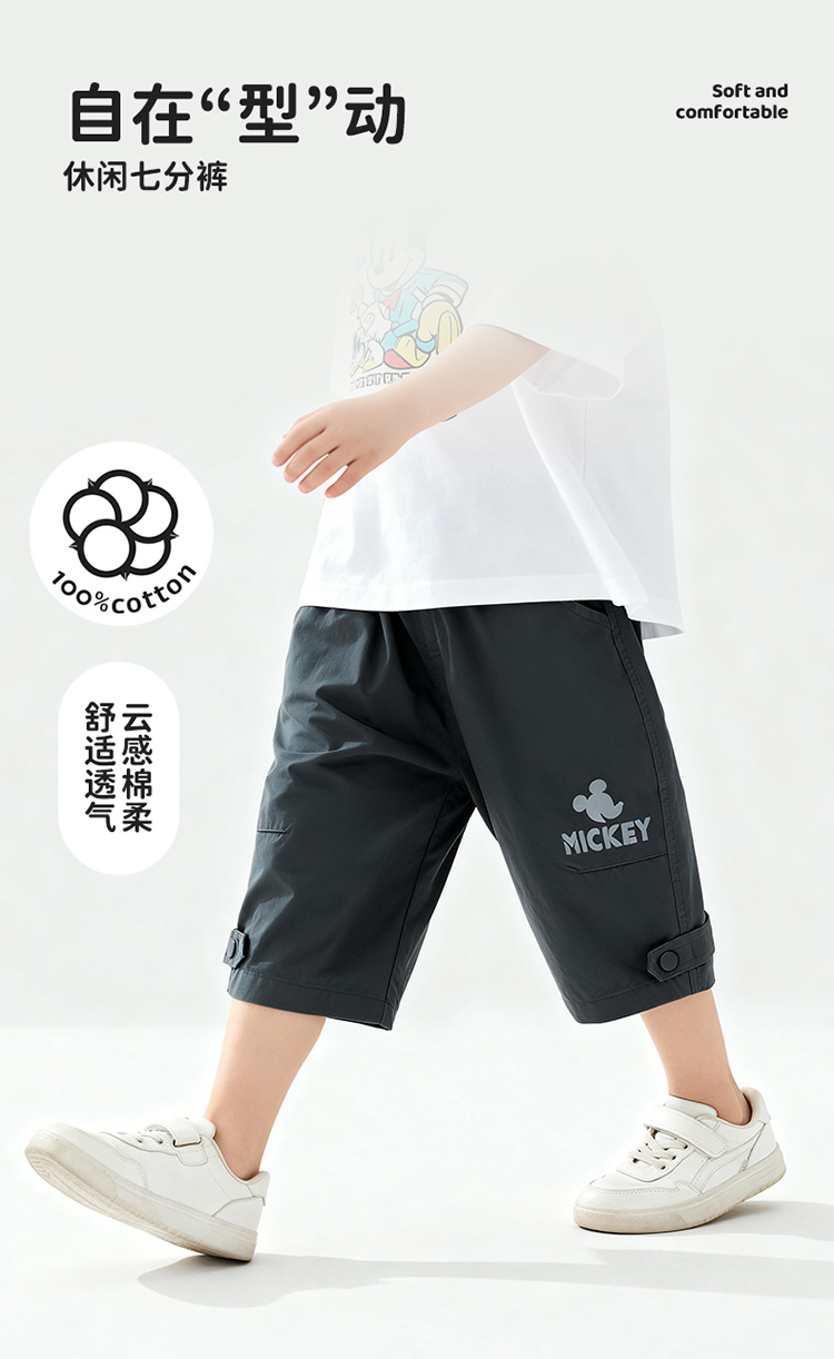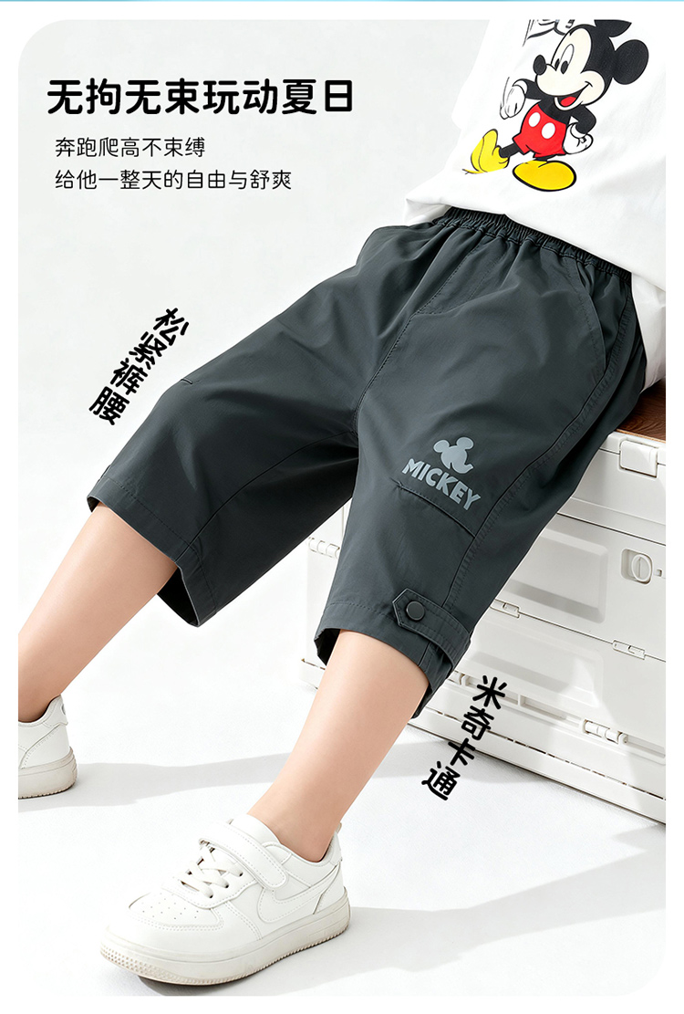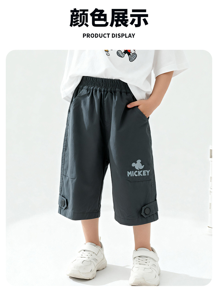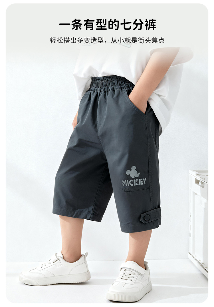 迪士尼男童夏日碳灰七分裤短裤梭织七分裤XD2EK001