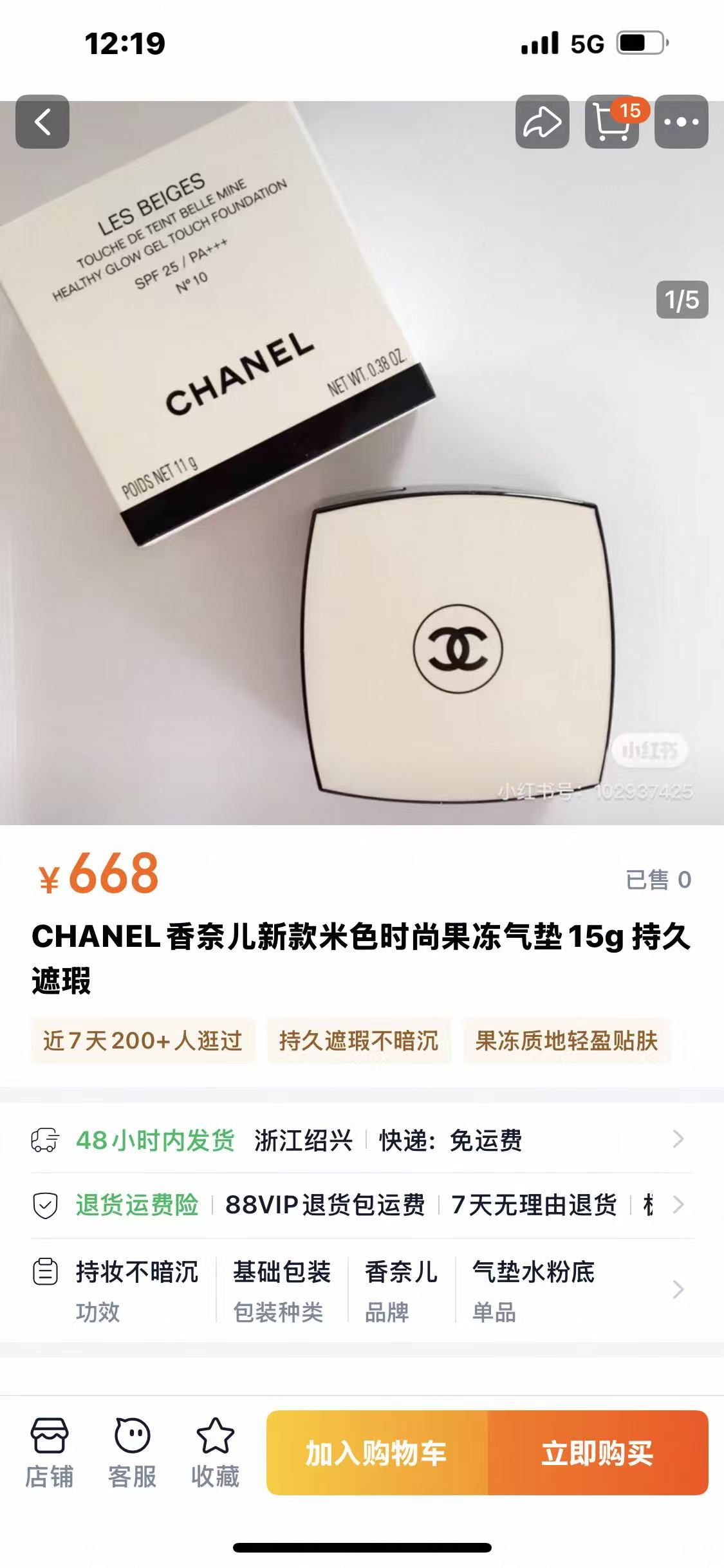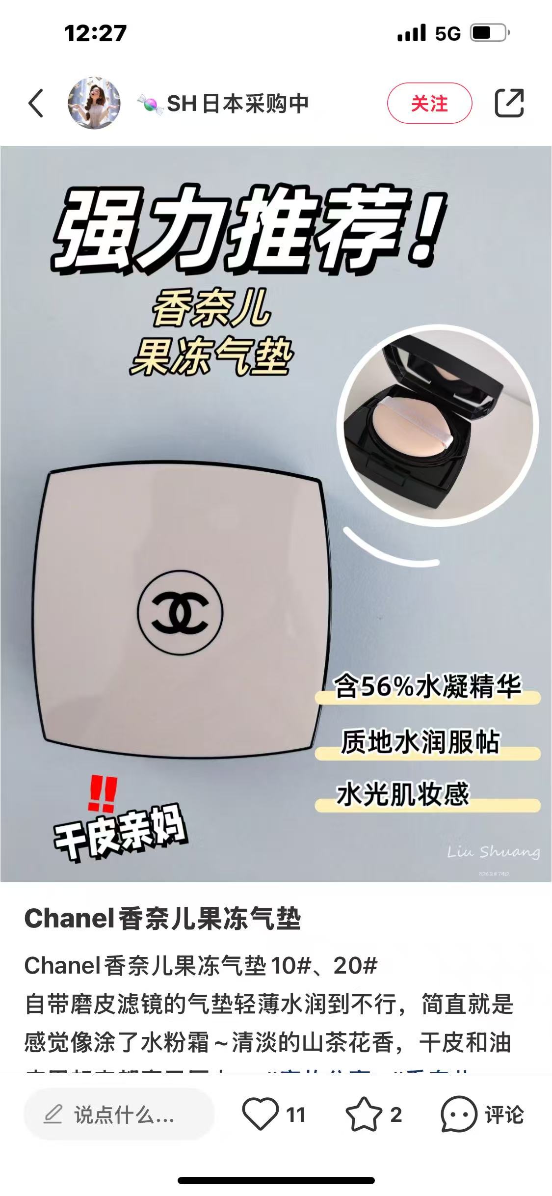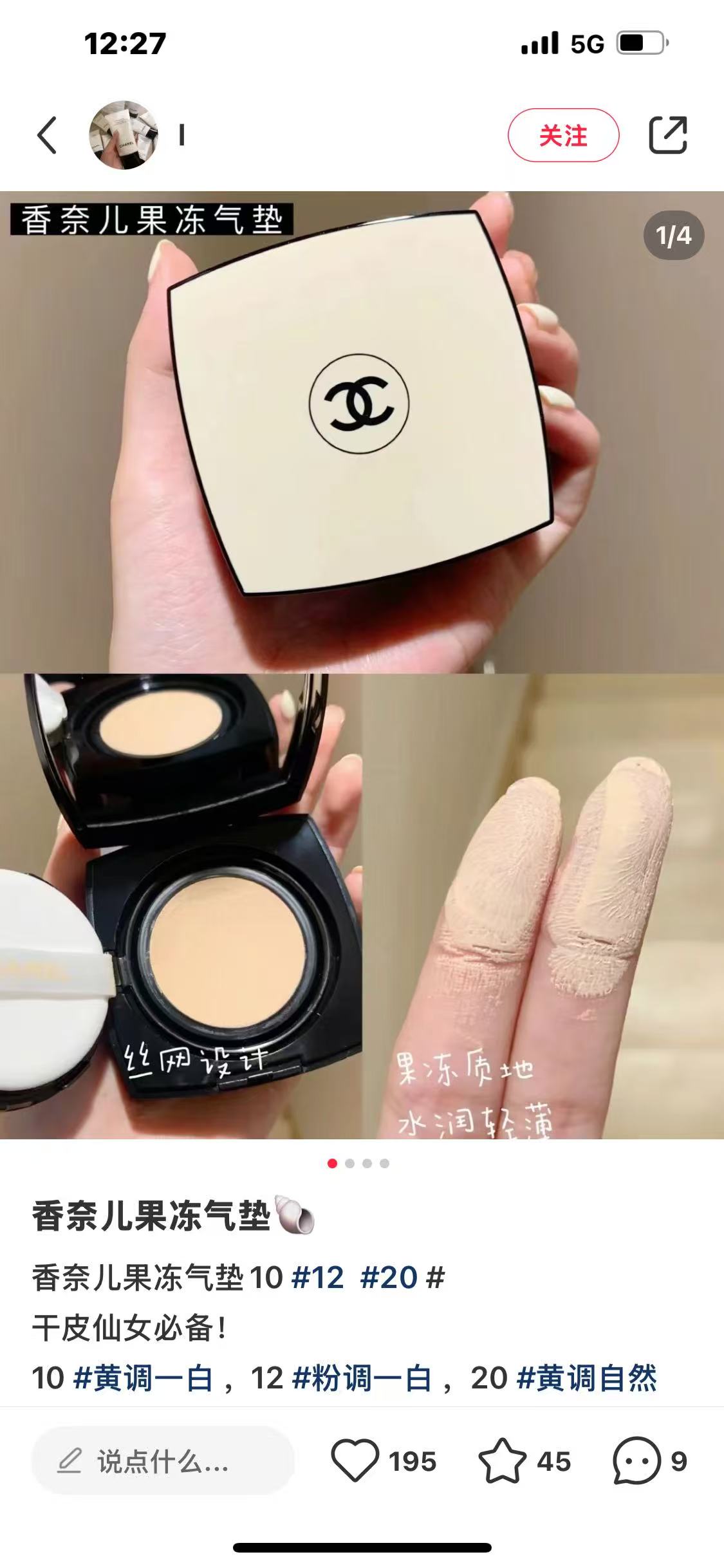 ✍️小香果冻气垫15g/新版🔜9705编码! 27年日期,香奈儿米色时尚气垫水粉底。 水润细腻!!! 色号 3️⃣色:BD01#,B10#,B20#。