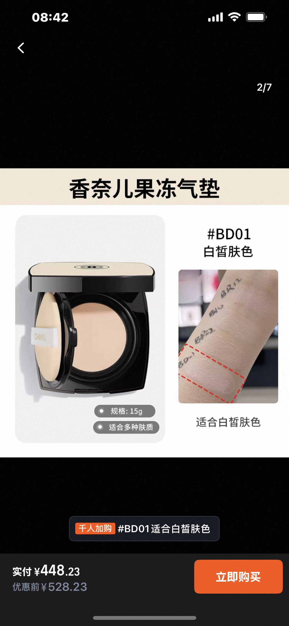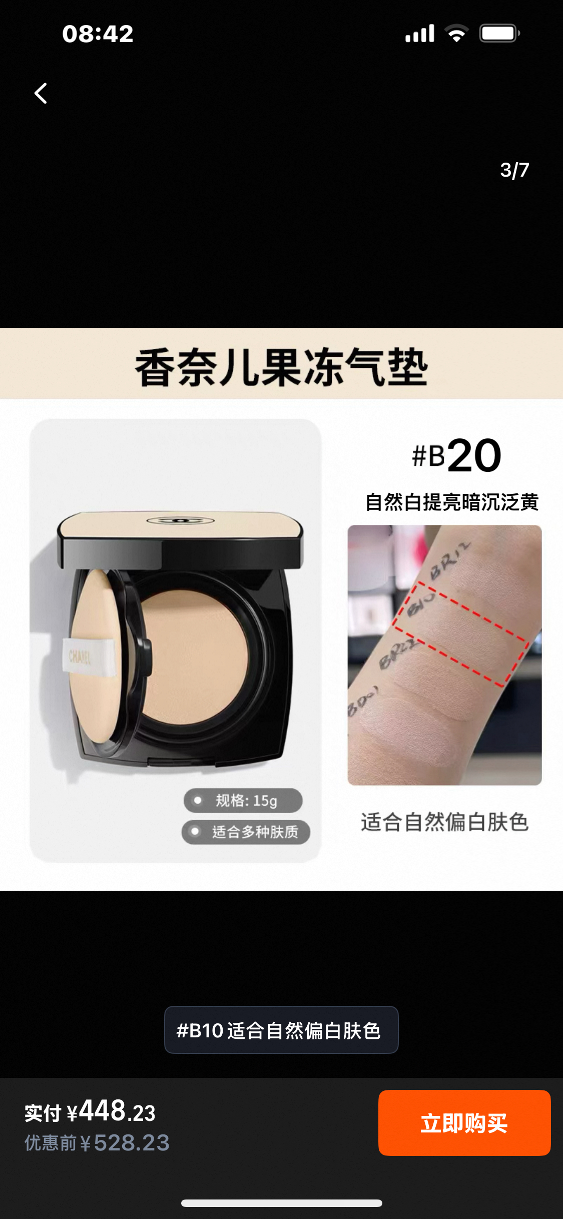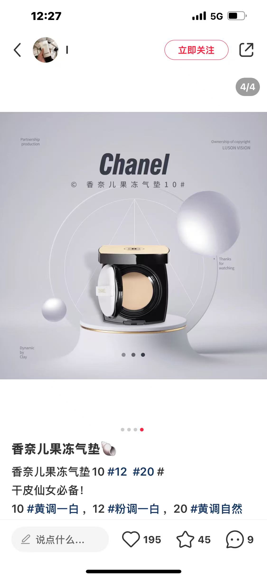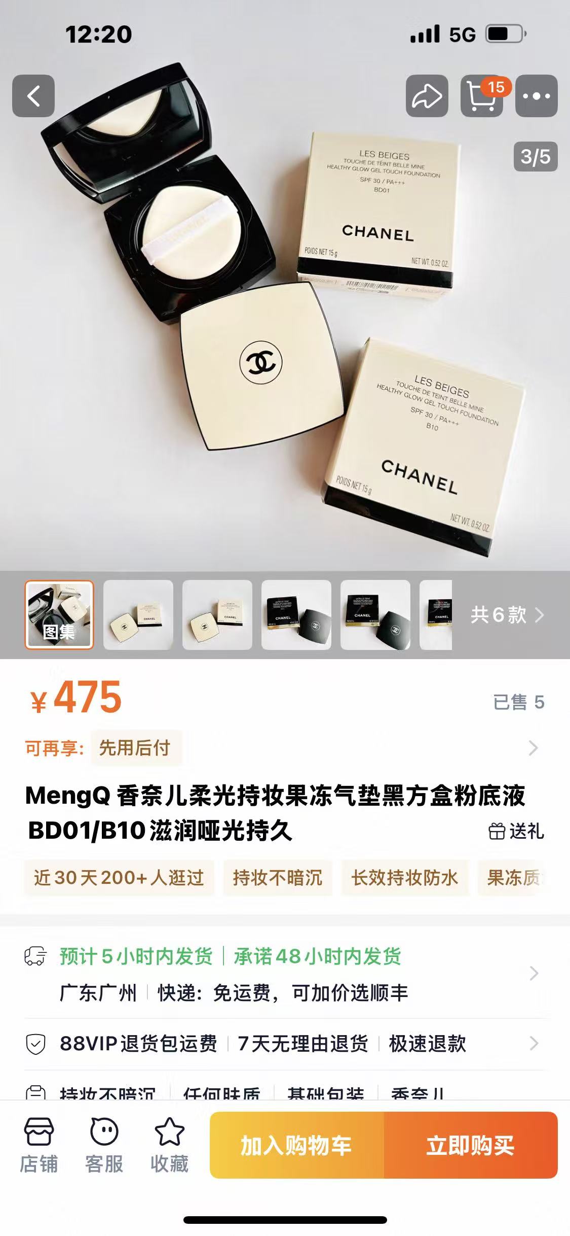 ✍️小香果冻气垫15g/新版🔜9705编码! 27年日期,香奈儿米色时尚气垫水粉底。 水润细腻!!! 色号 3️⃣色:BD01#,B10#,B20#。