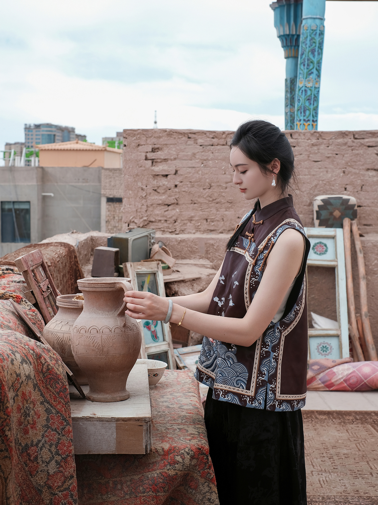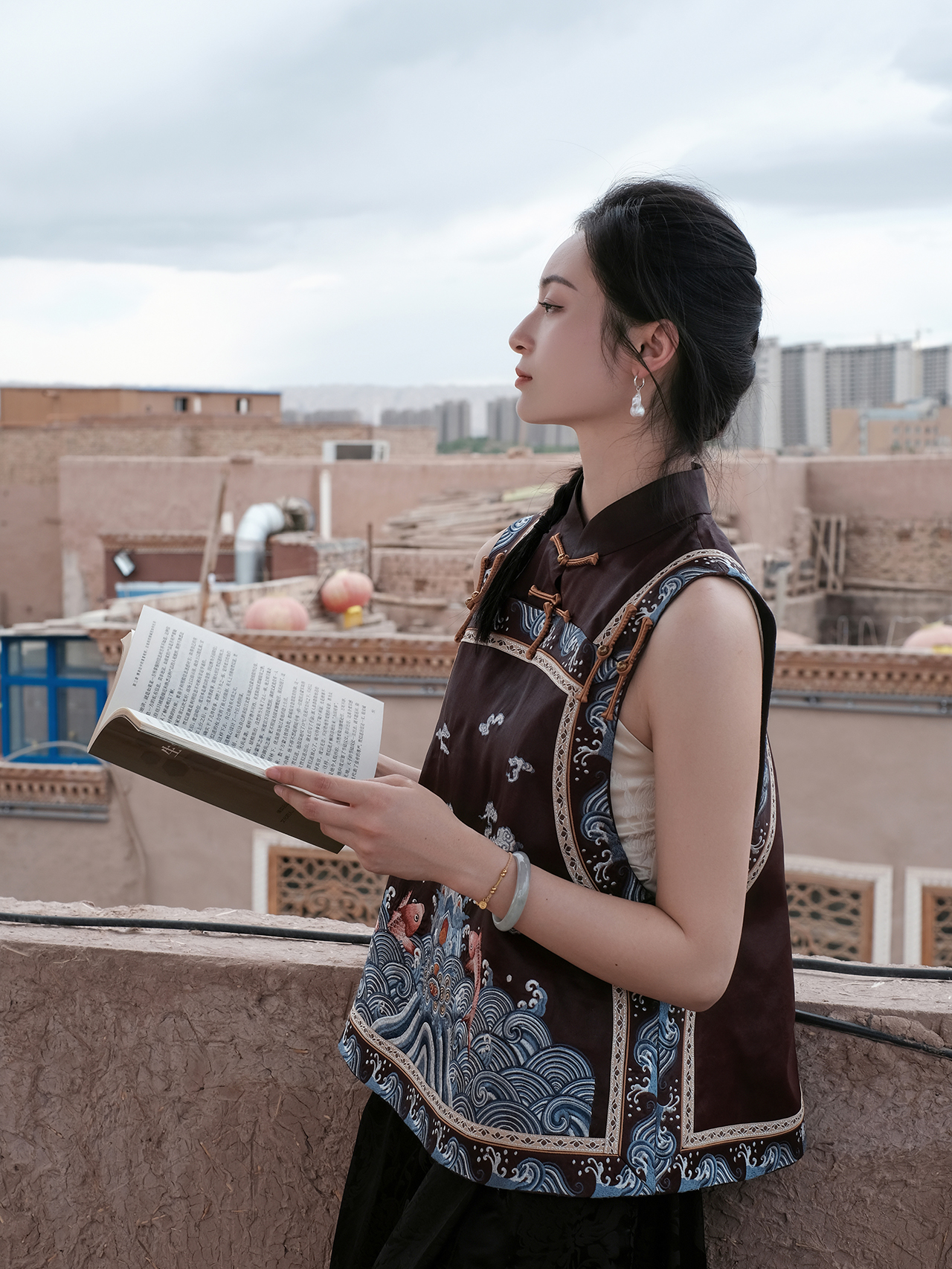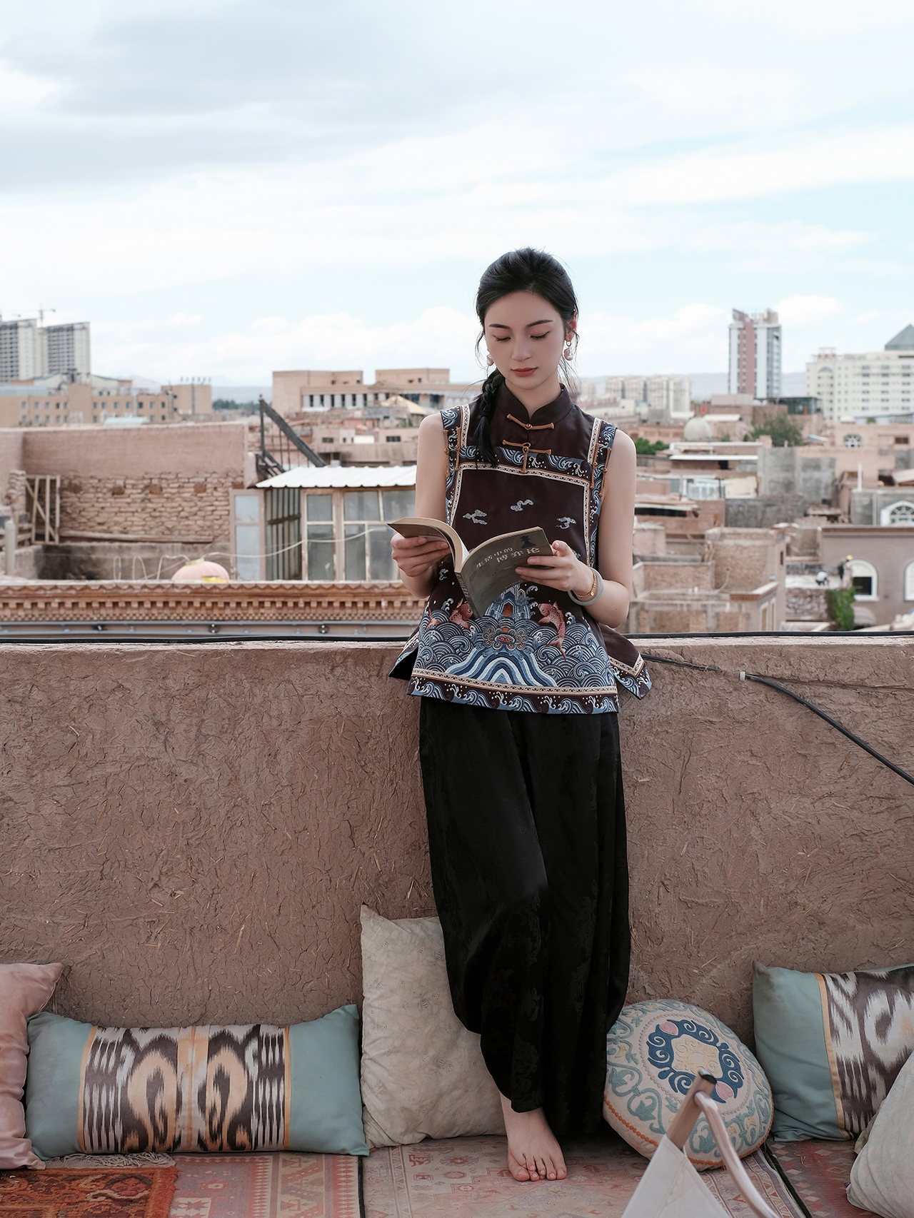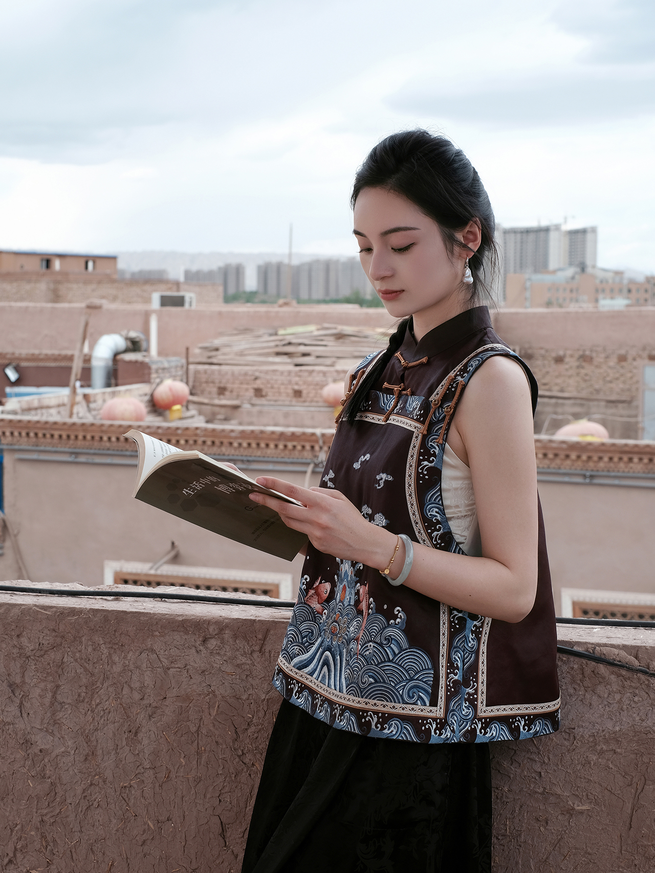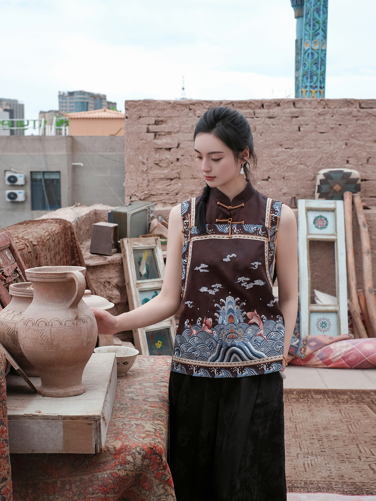盛唐牡丹盛奢系列| 限量款| 高货-红云纱重缎鲤鱼跃龙门马甲(特殊商品不退不换)