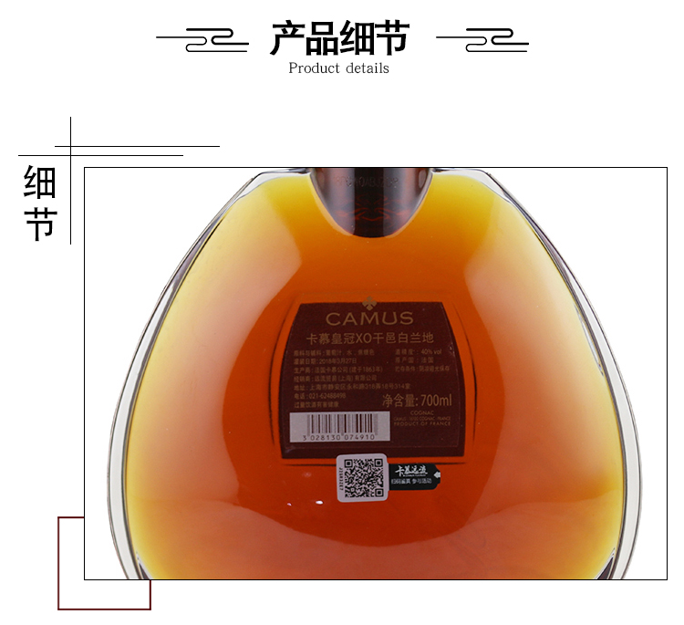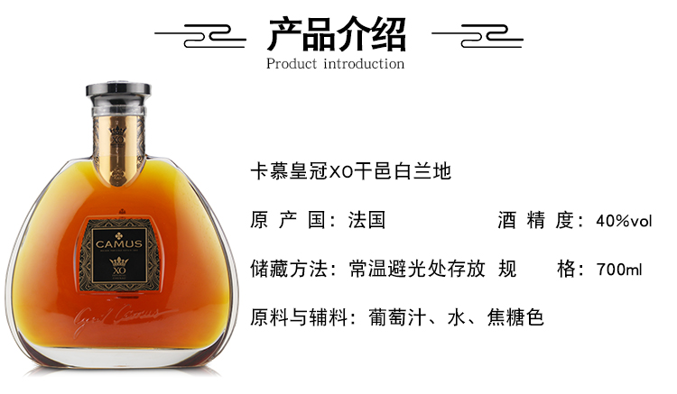 【行货】法国金花卡慕皇冠XO干邑白兰地 700ml*1瓶