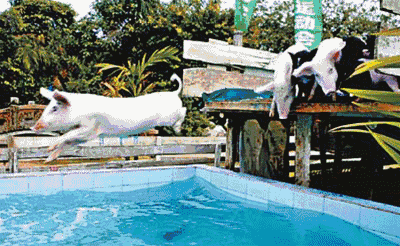 萌宠乐园区观看海狮表演,萌猪跳水表演