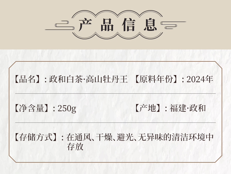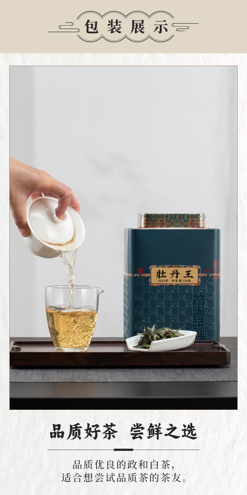 添寿茶业丨高山牡丹王 政和白茶 2024年 一级 250g 精美礼罐配手提袋(配2袋样泡)