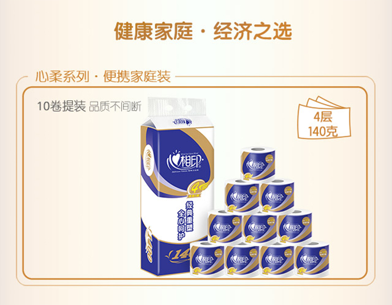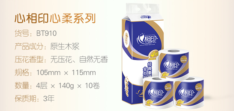 【积分兑换】心相印 140克10粒装四层卷筒卫生纸*1提BT910(提装)(送喜马月卡)