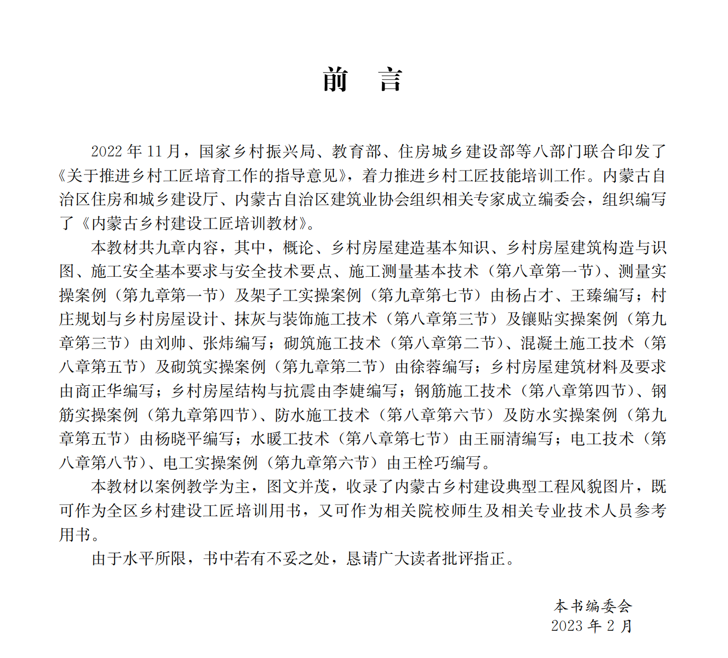 内蒙古乡村建设工匠培训教材 中国建材工业出版社 ISBN 9787516036617