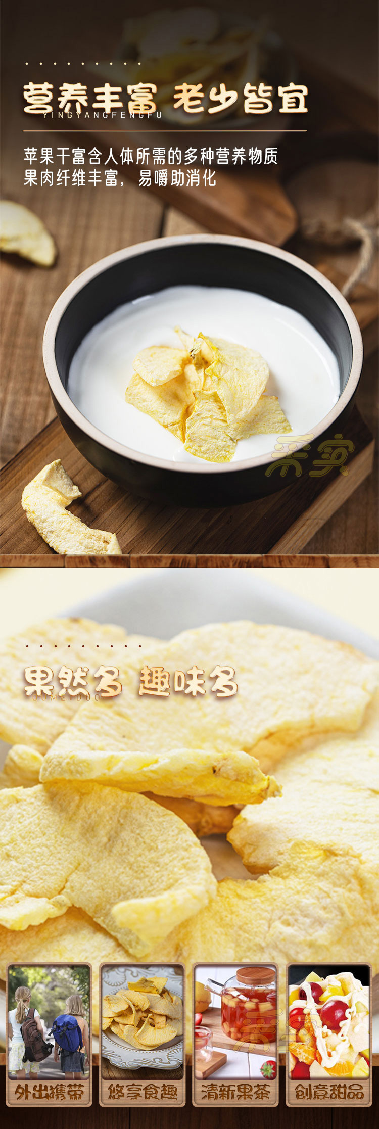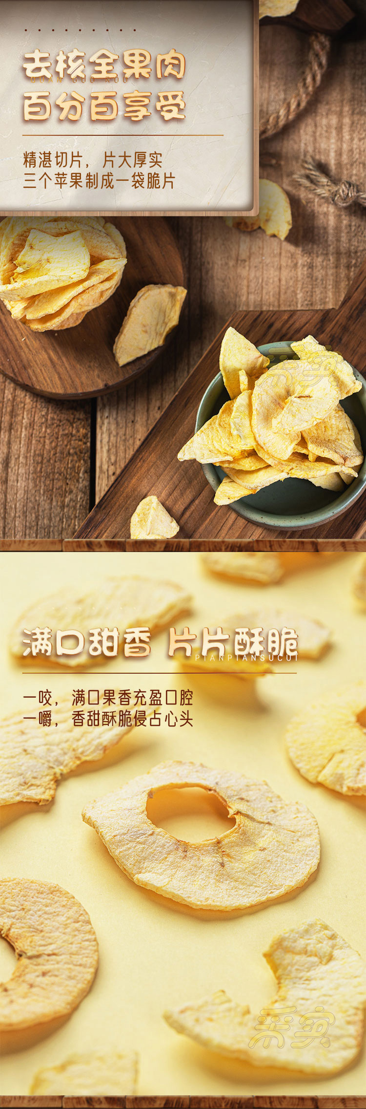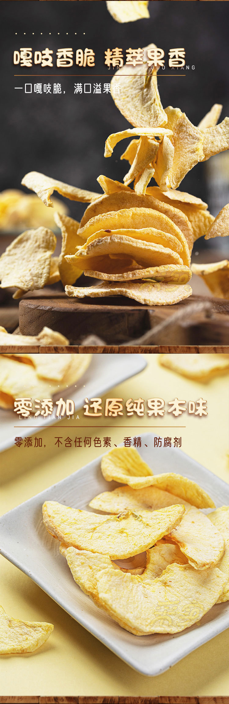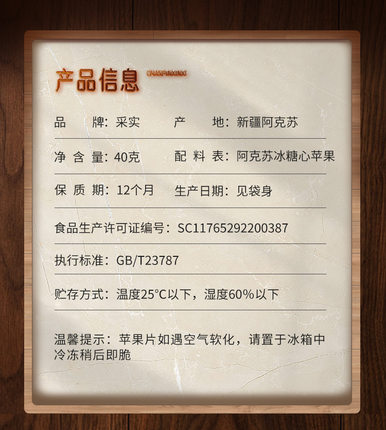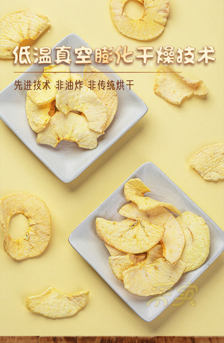 【温馨提示】1.苹果片如遇空气软化,请置于冰箱中冷冻稍后即脆