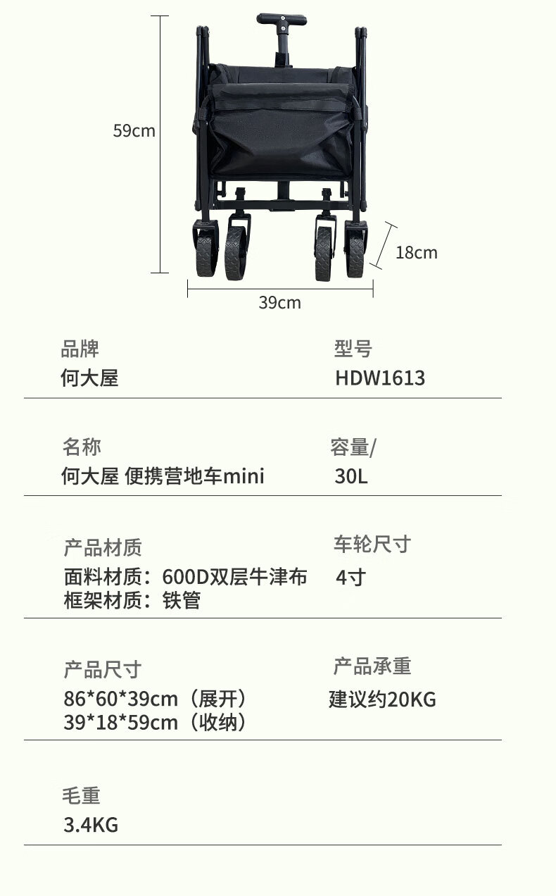 (分两个包裹发货)何大屋 mini便携营地车HDW1613 + 何大屋 精彩人生户外帐篷HDW1503【JKYGH51 3.0】